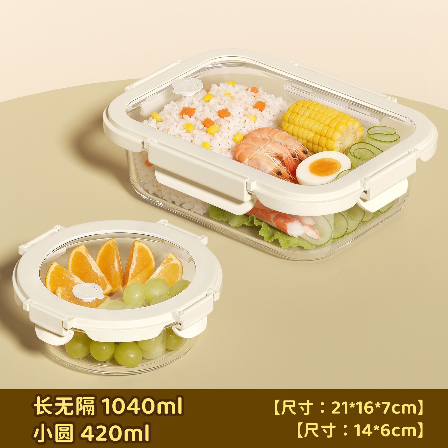[large: 1040ml | soup bowl: 420 ml] no compartments