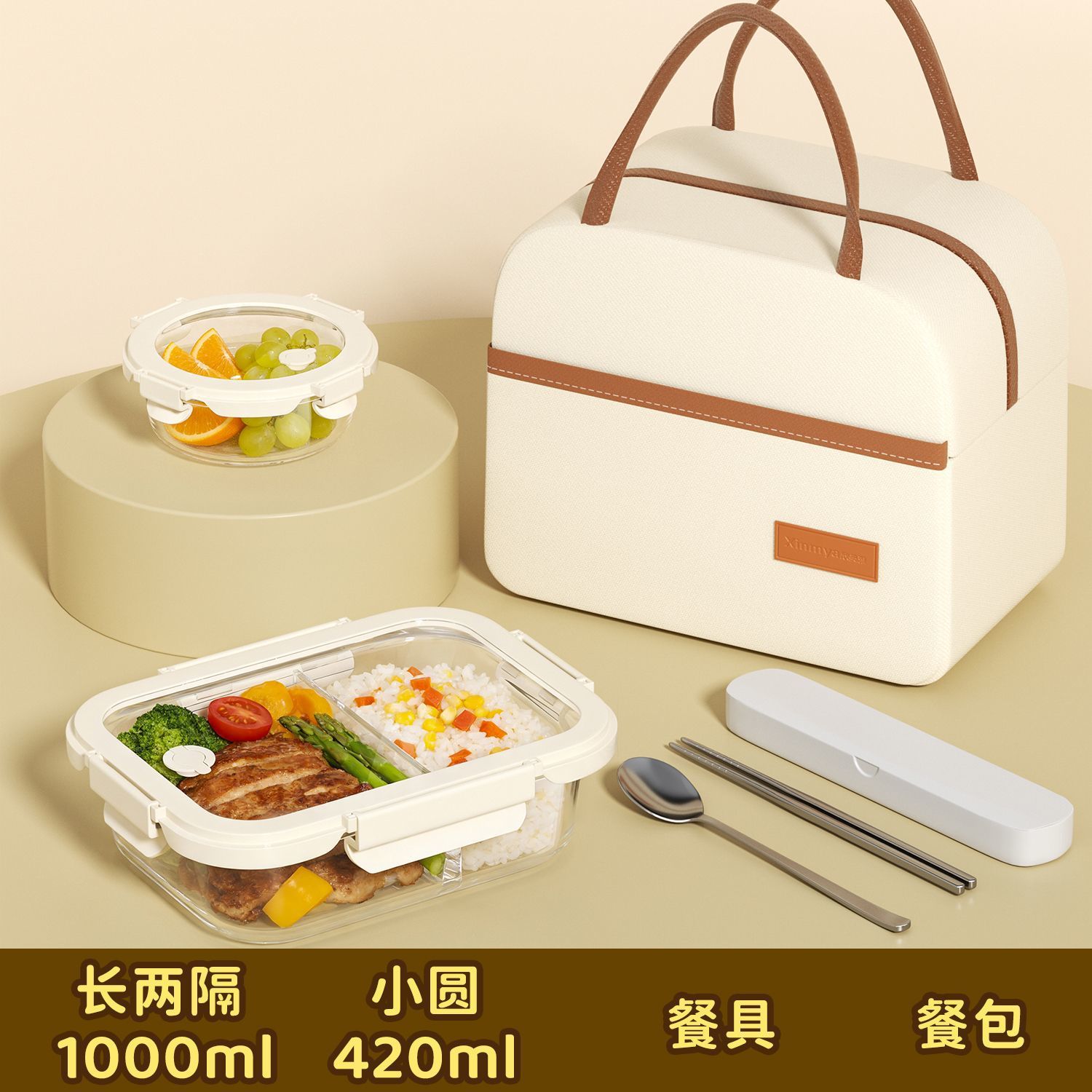 [large, 1000ml] two compartments | insulated bag + tableware