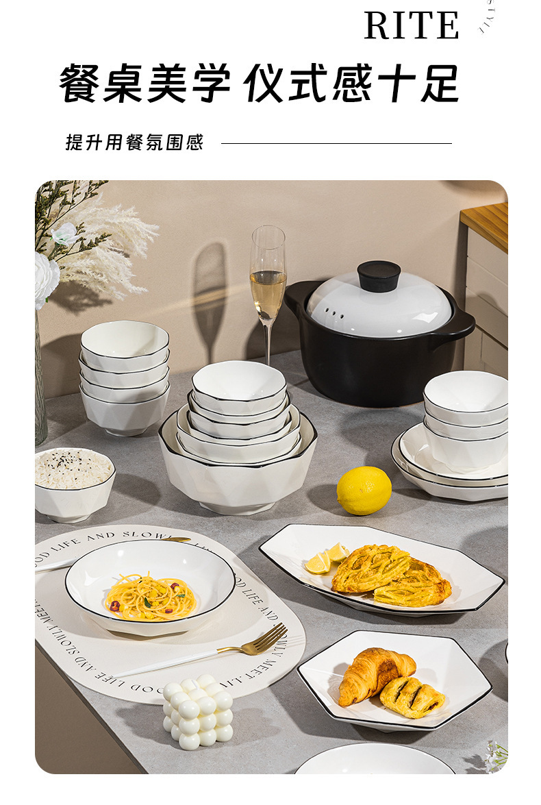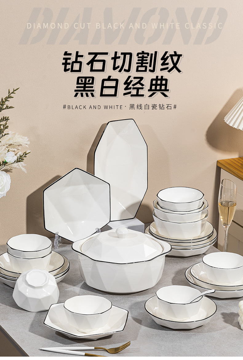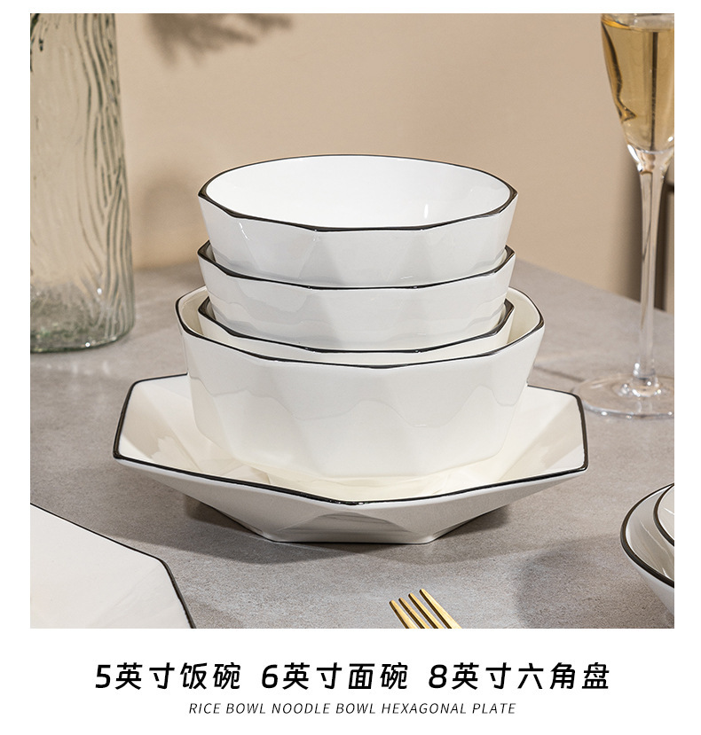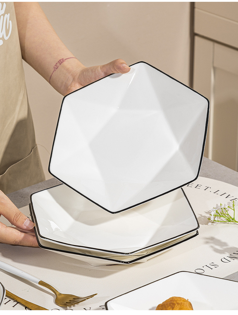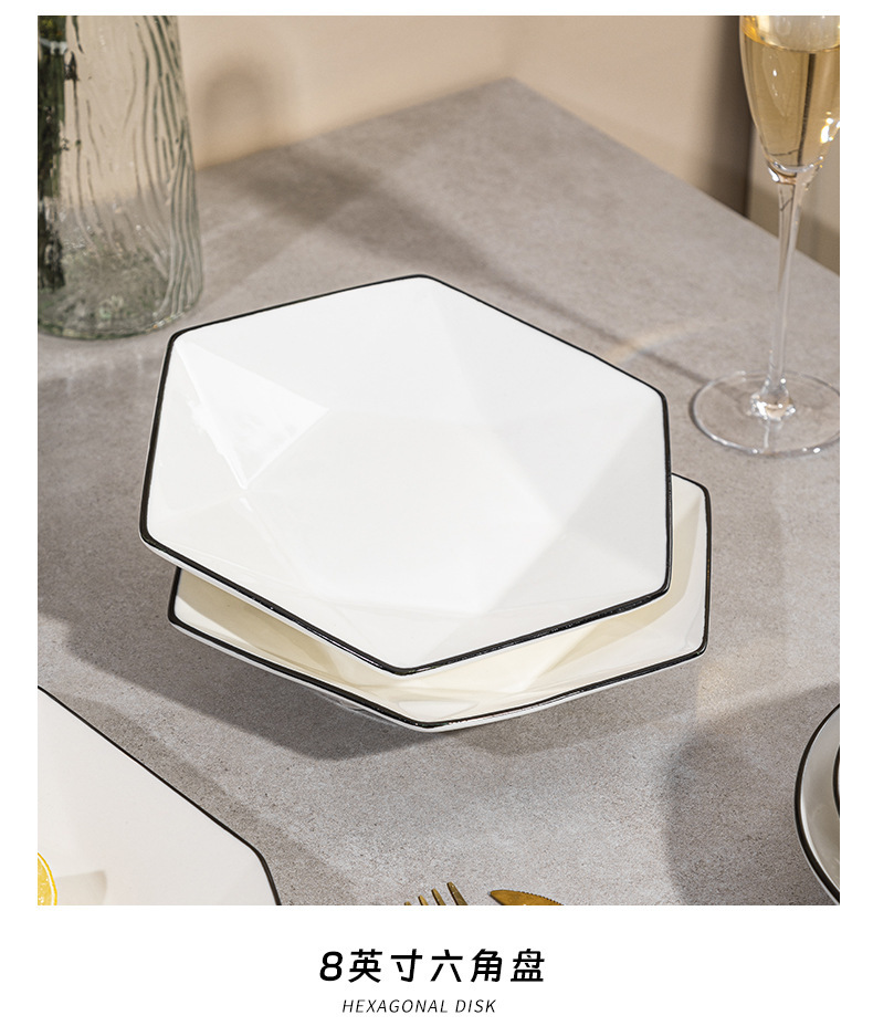 black line diamond 8-inch 6-corner plate [1] (40 pieces and 1 box)