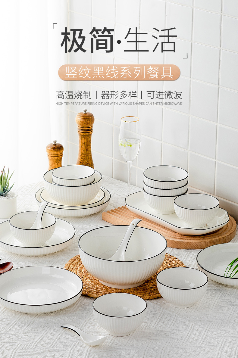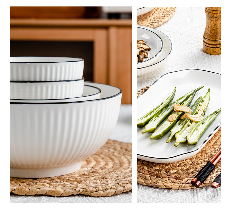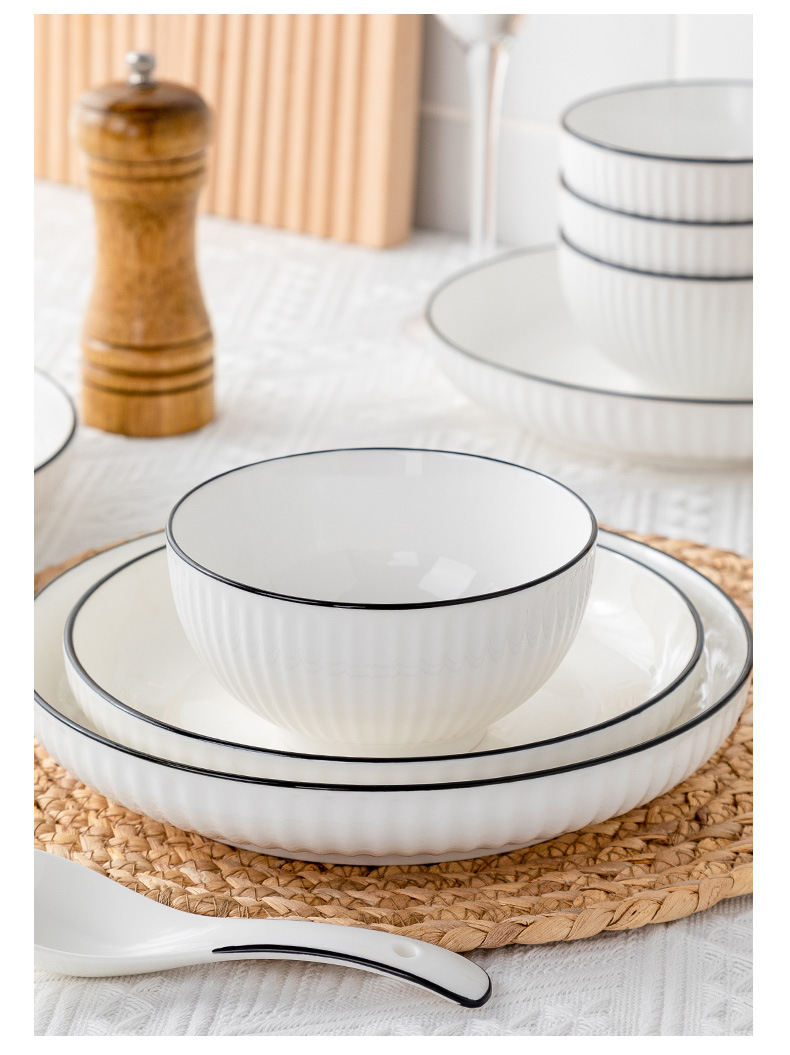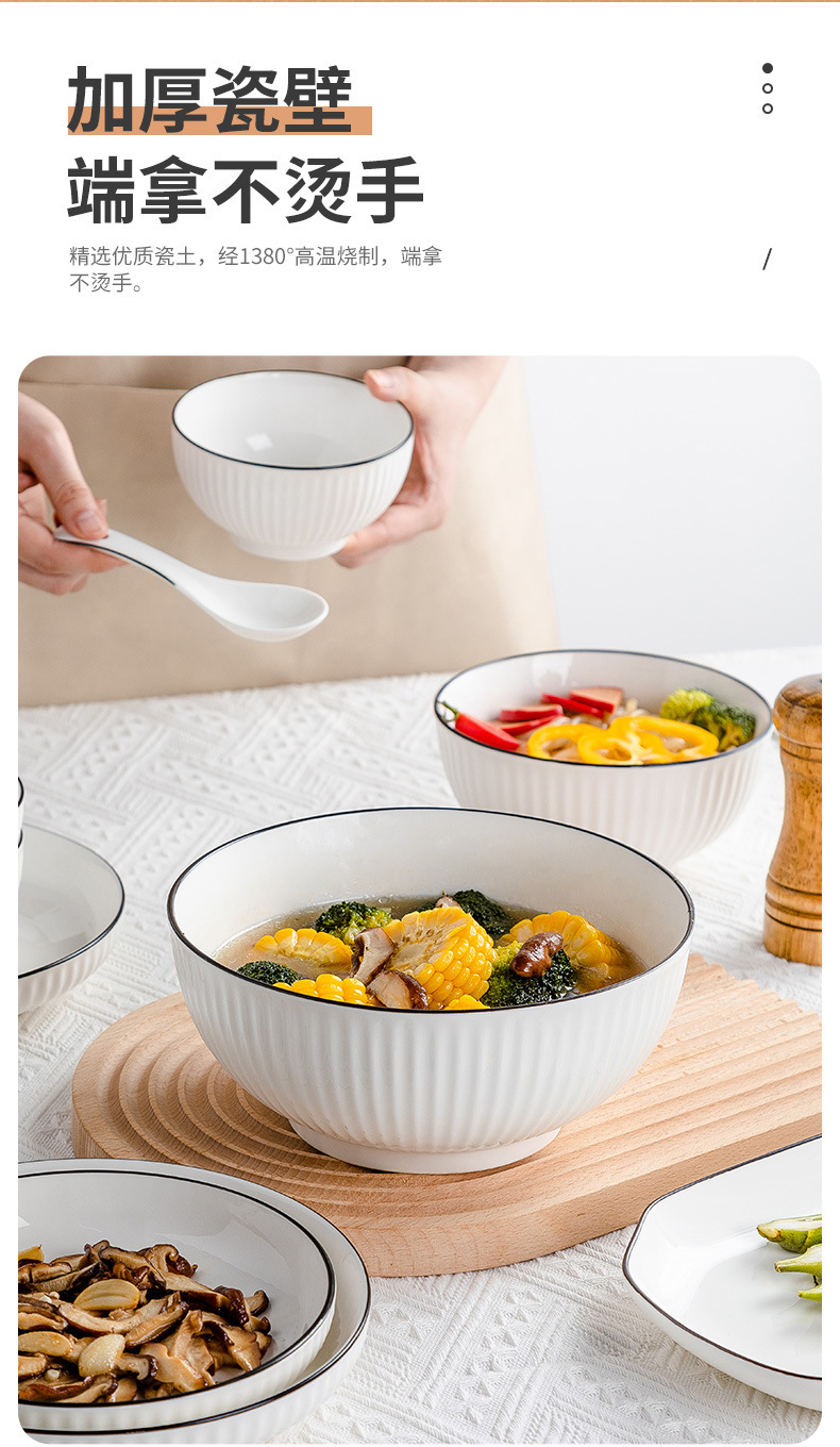 6-inch black line vertical stripes noodle bowl ([1] 60 pieces and 1 box)