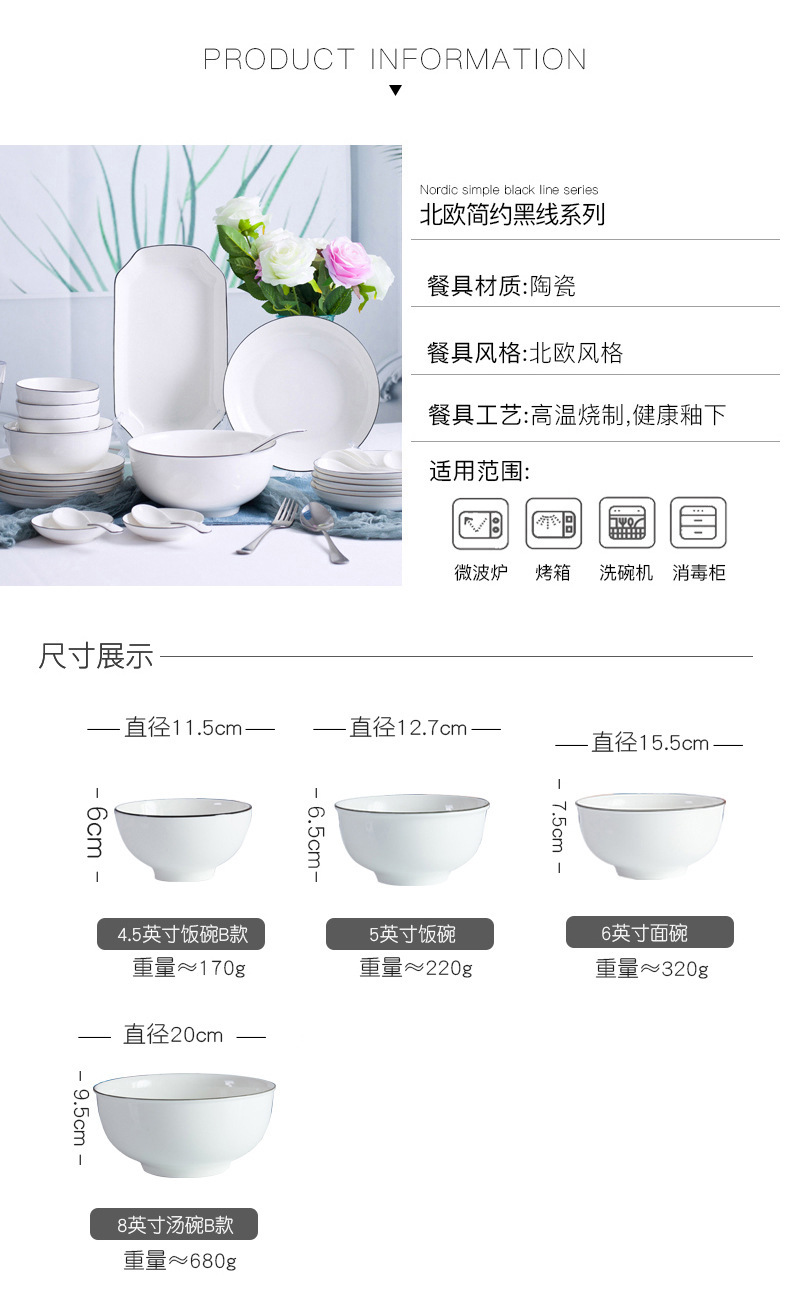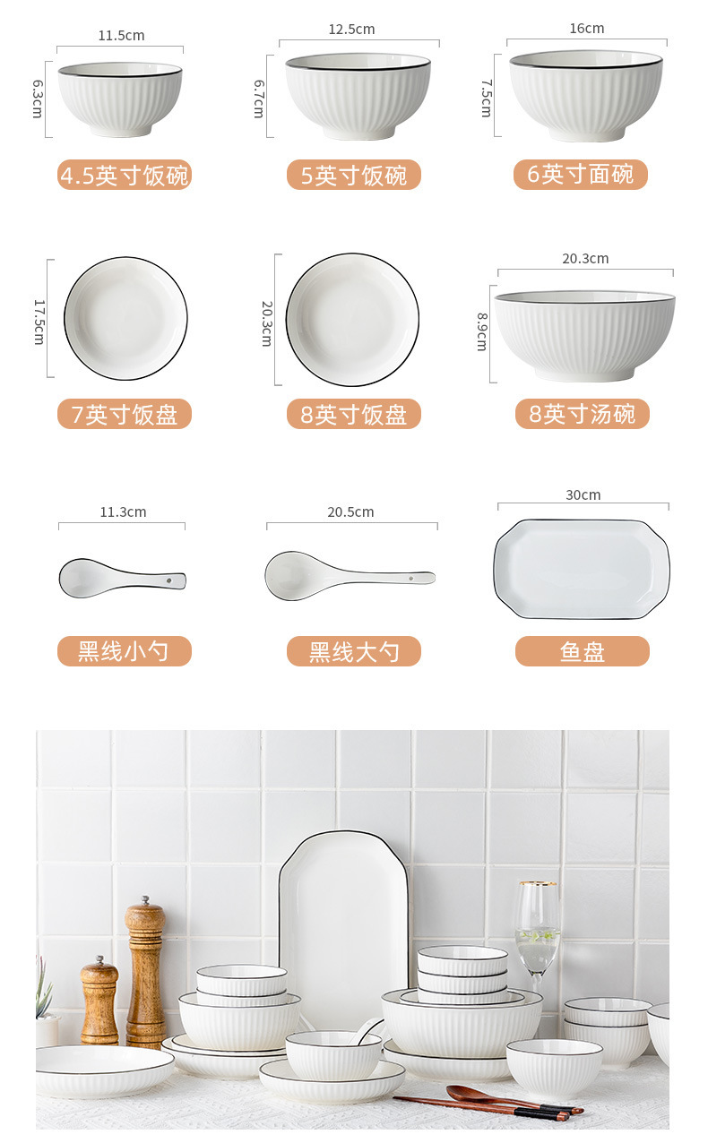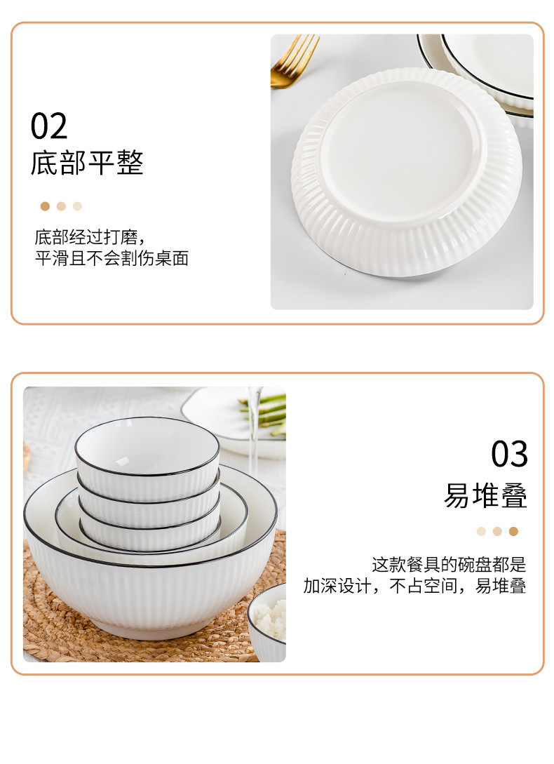 6-inch black line vertical stripes noodle bowl ([1] 60 pieces and 1 box)