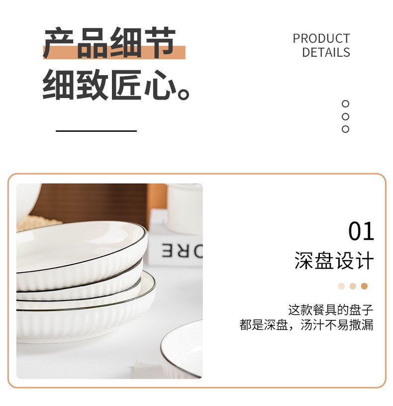 8-inch black line vertical stripes deep plates [1] (60 pcs and 1 box)
