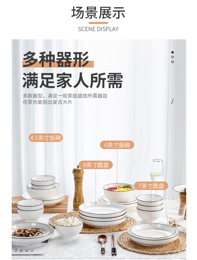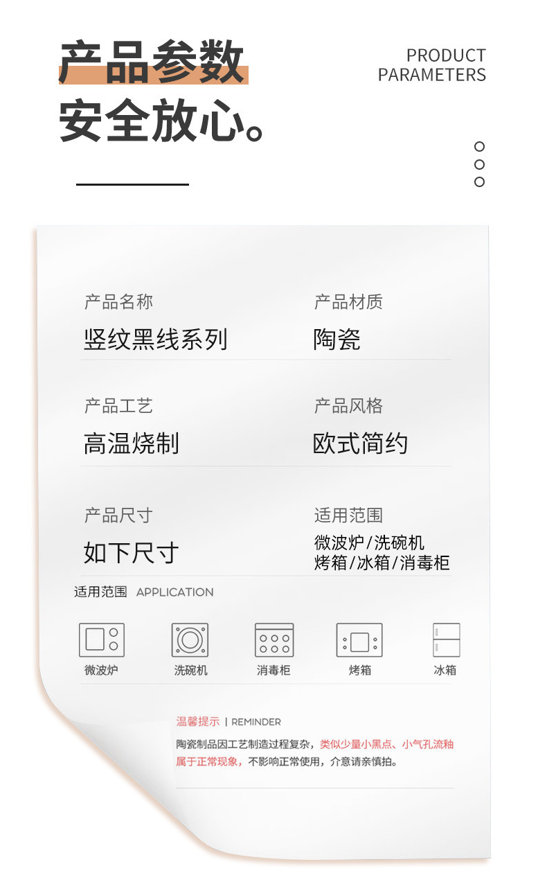 7-inch black line vertical stripes deep plates [1] (70 pieces and 1 box)