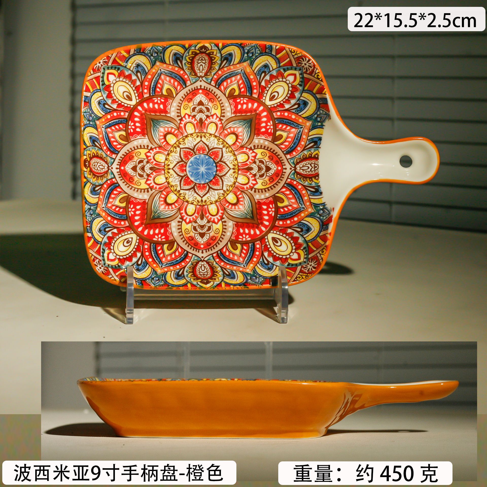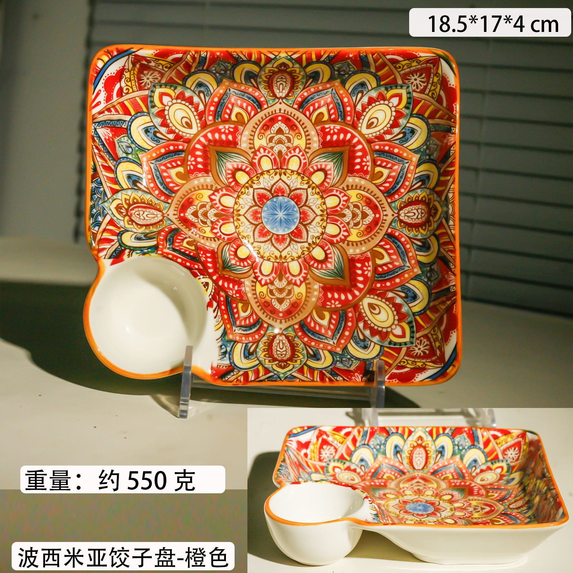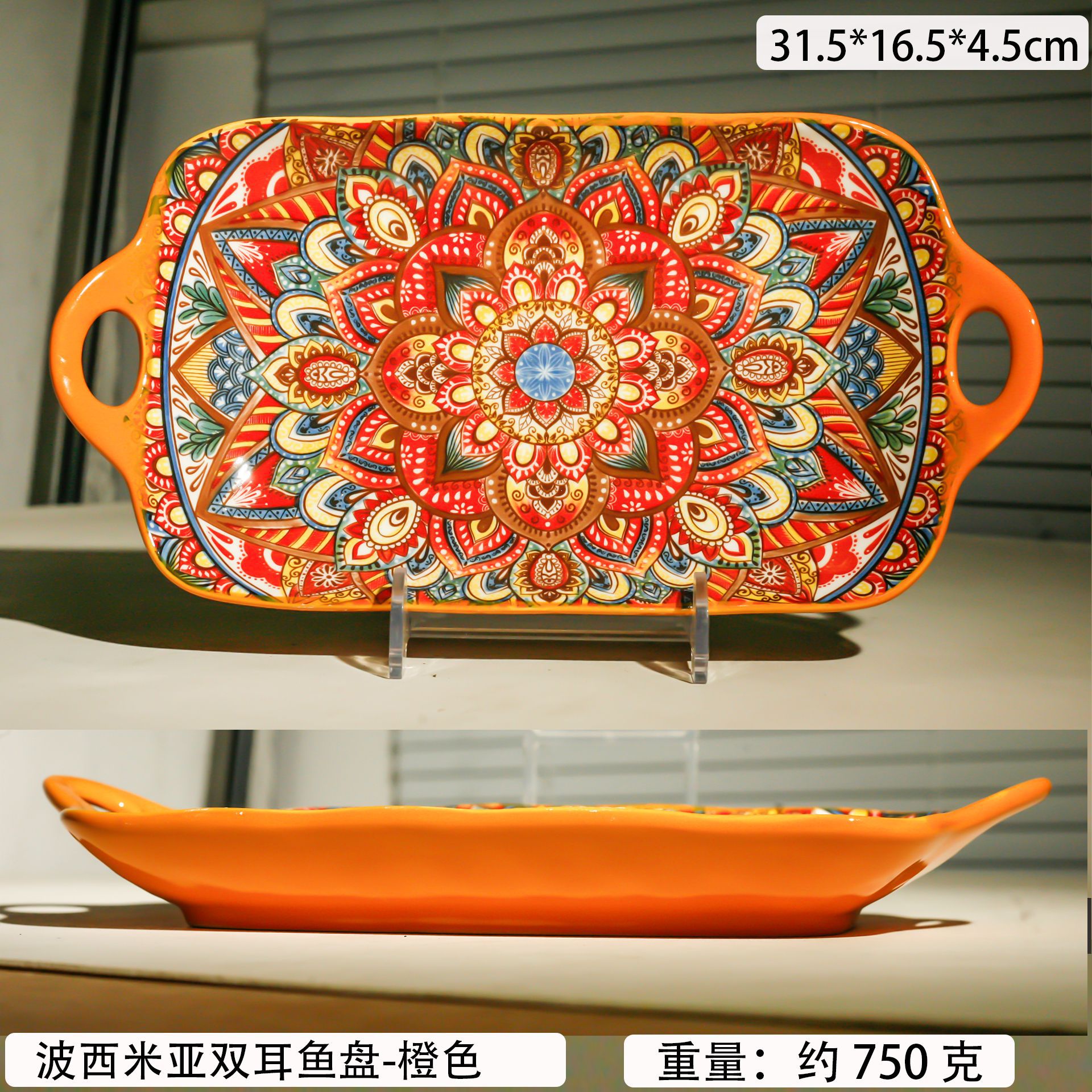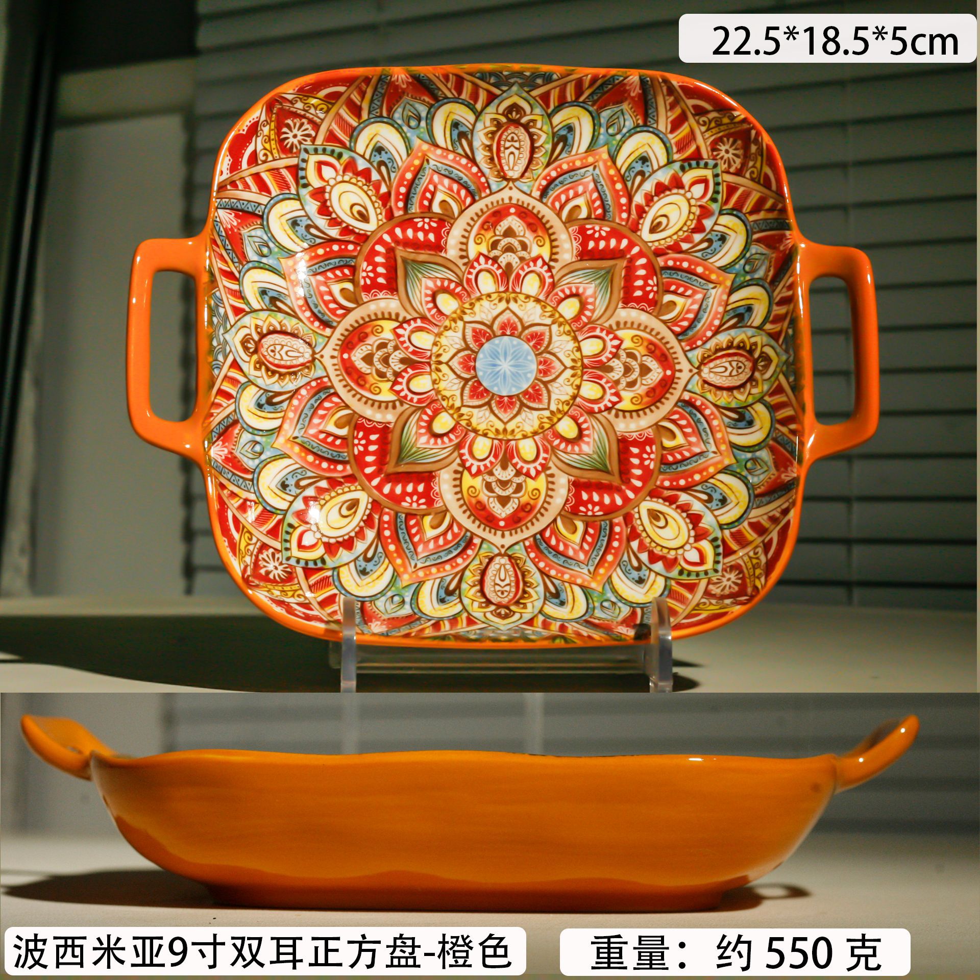 bohemian two-ear square plate-orange