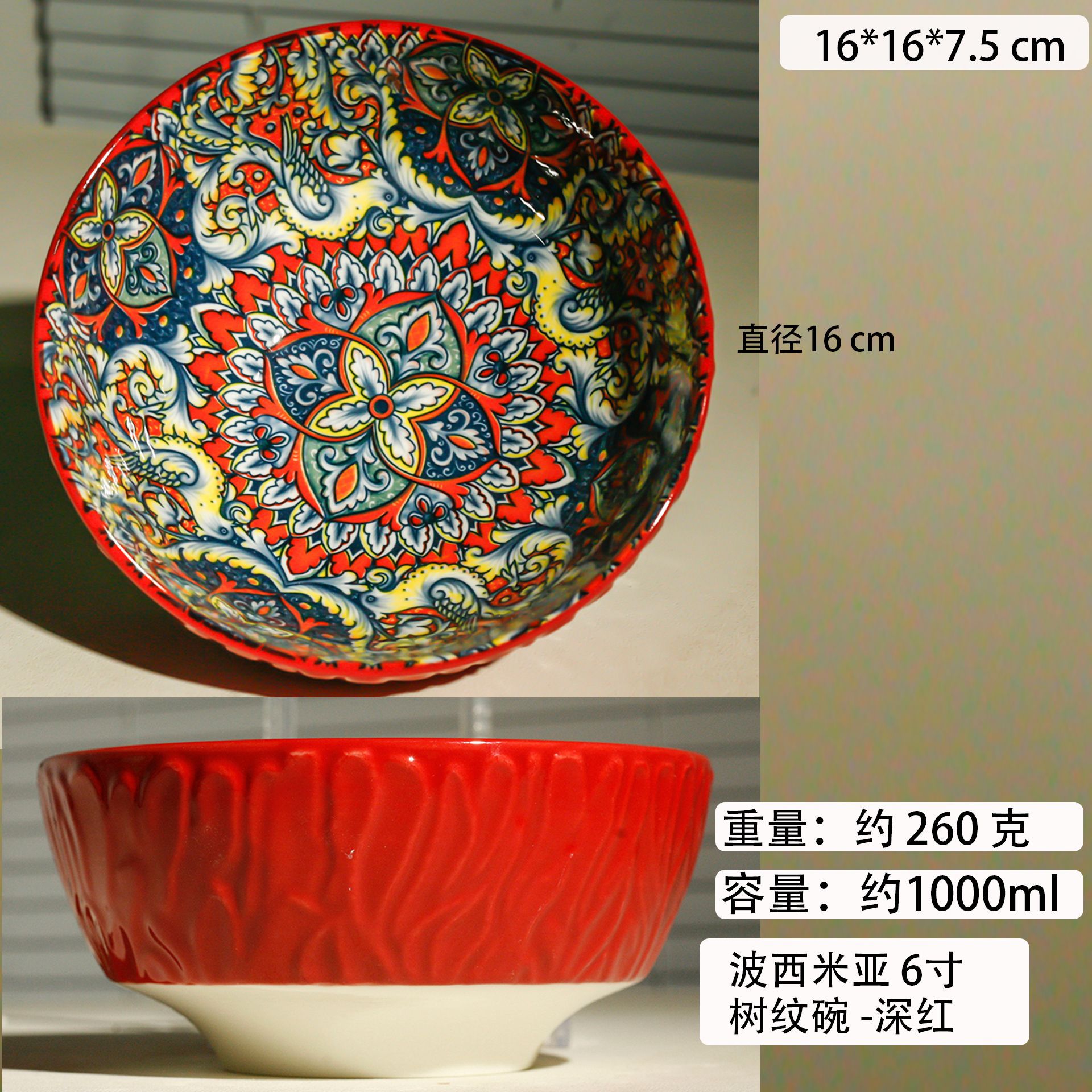 bohemian 6-inch tree-grain bowl-deep red