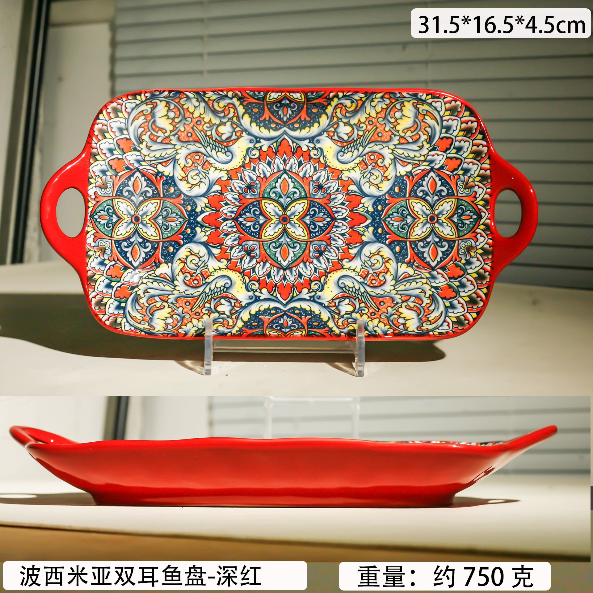 bohemian double-ear fish dish-deep red