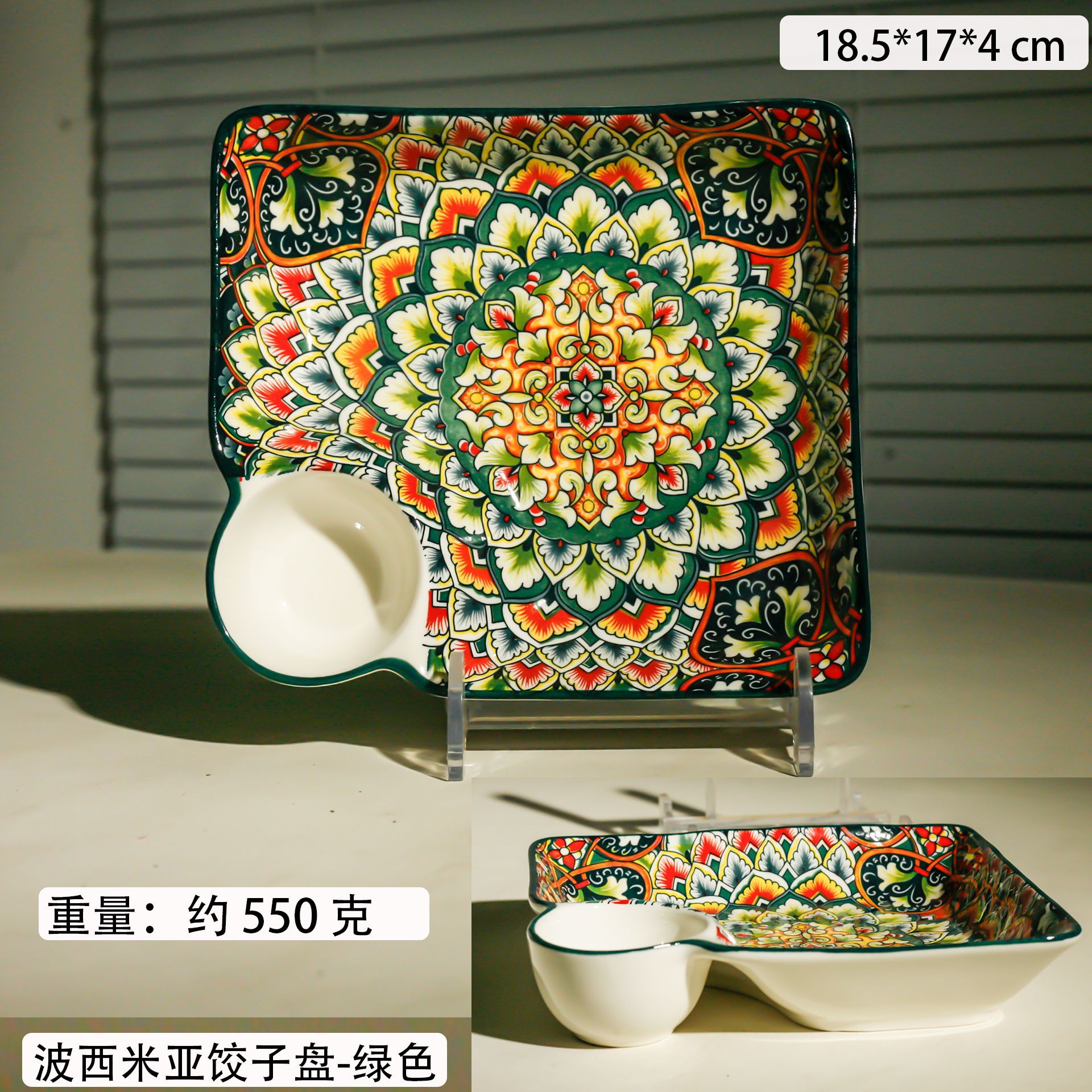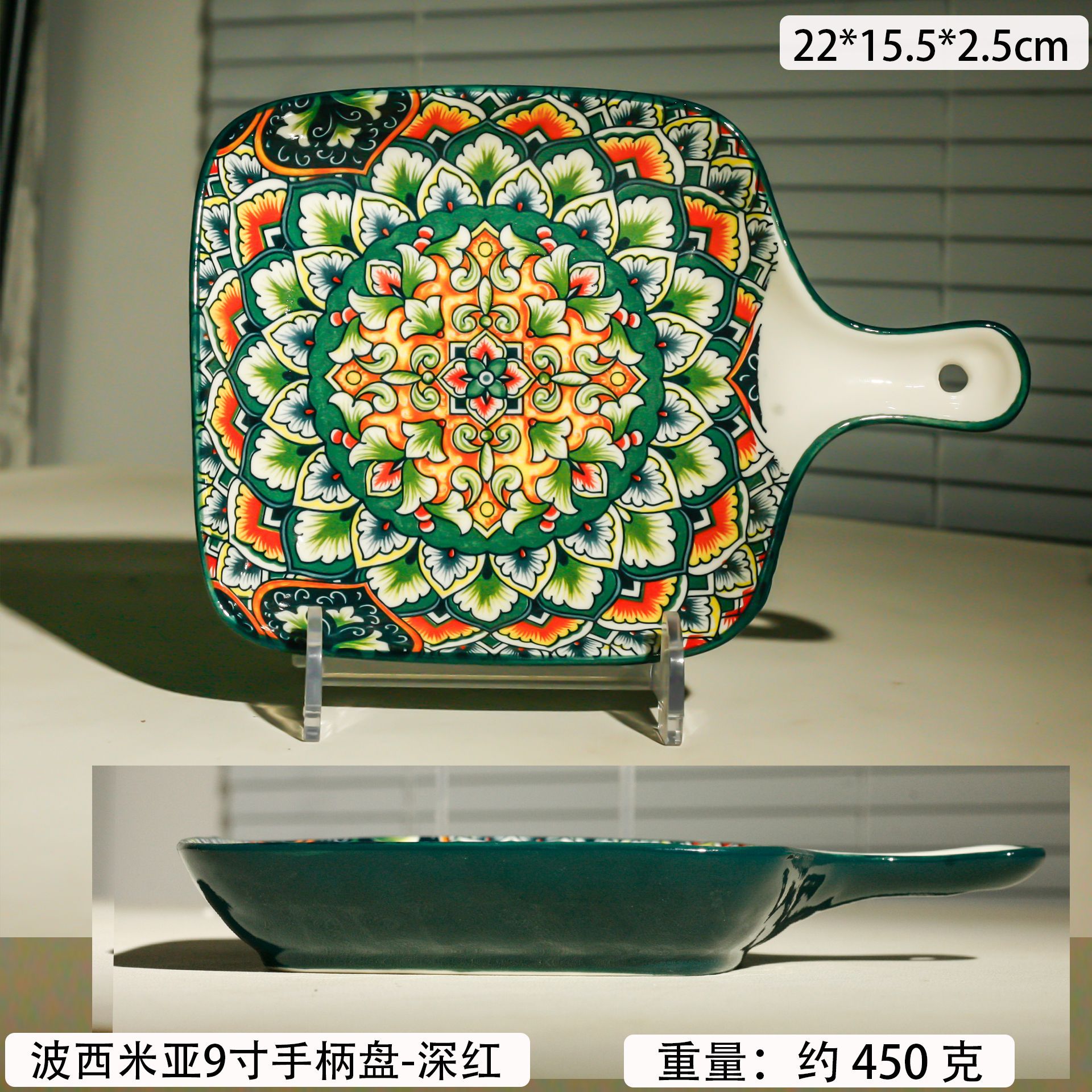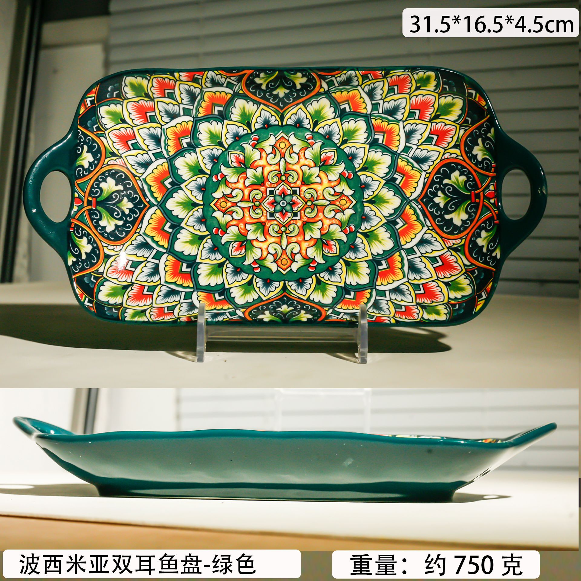 bohemian two-ear square plate-green