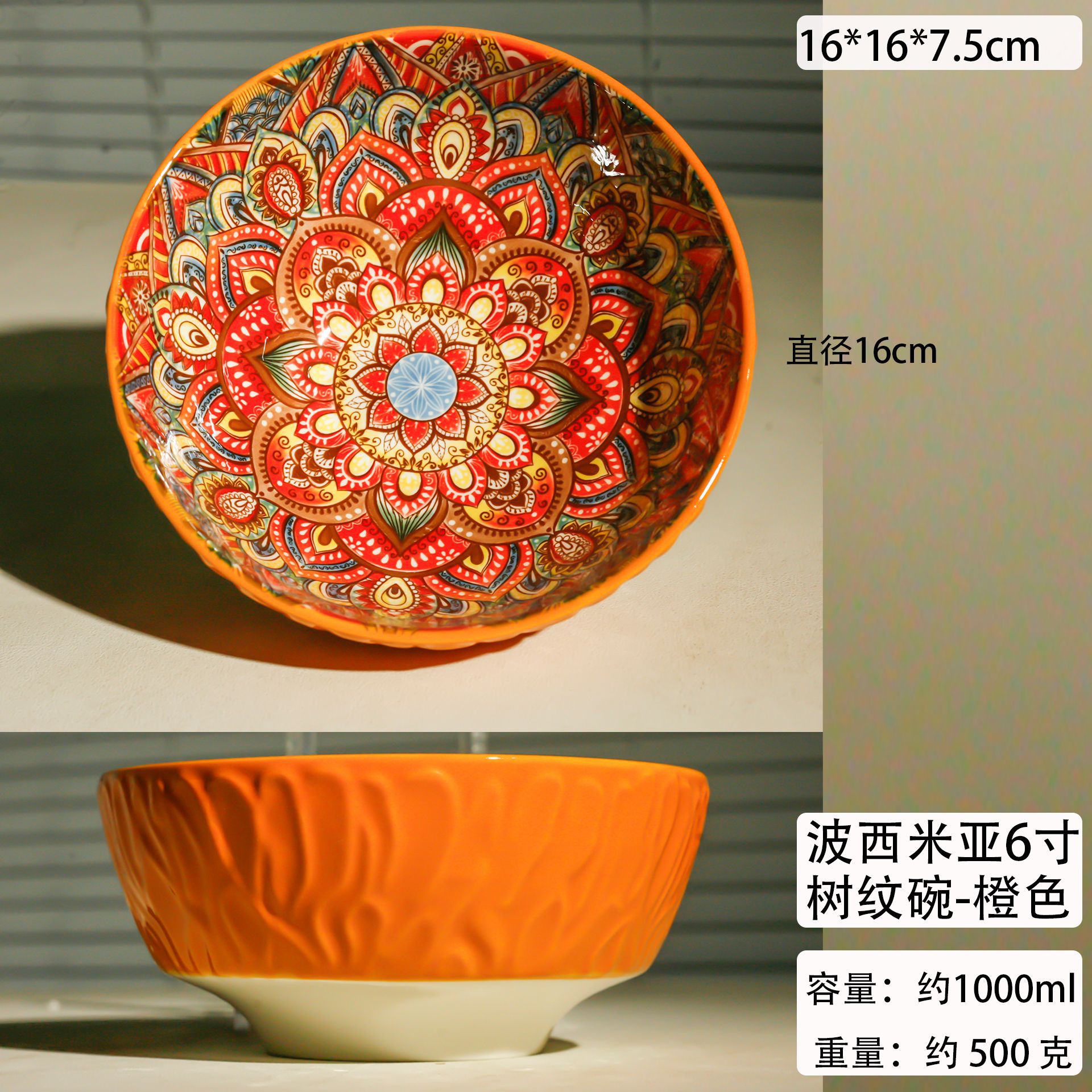 bohemian 6-inch tree-grain bowl-orange
