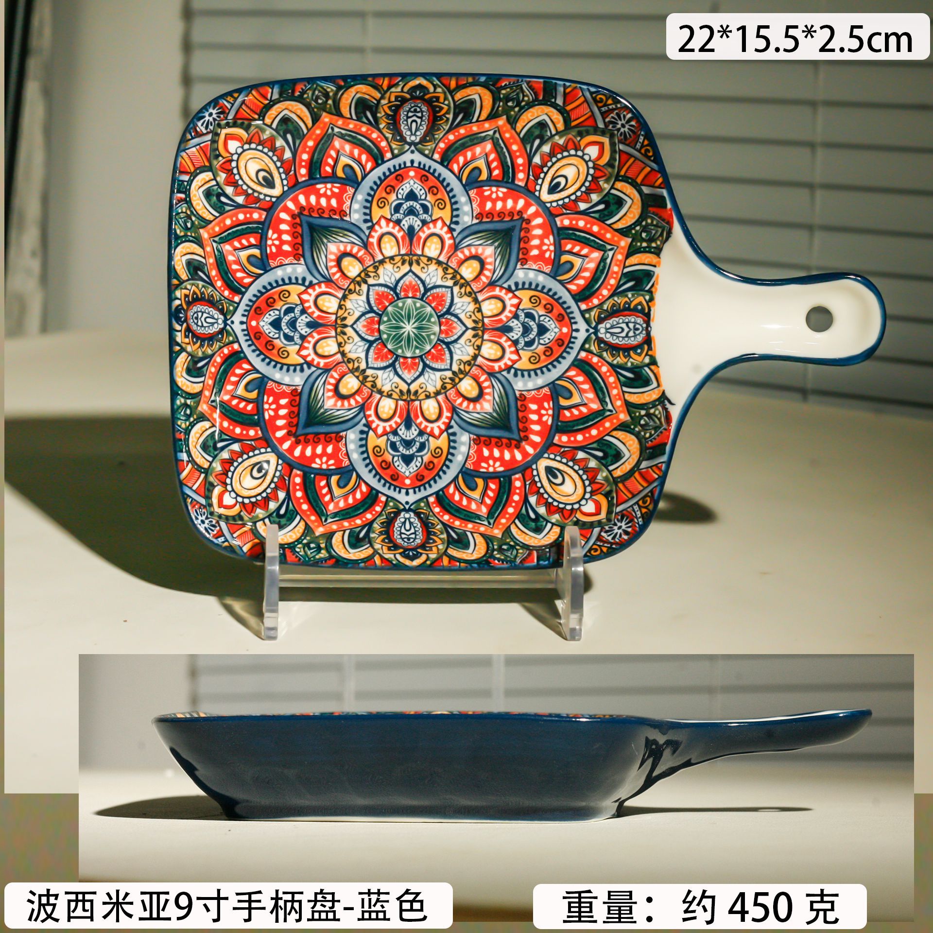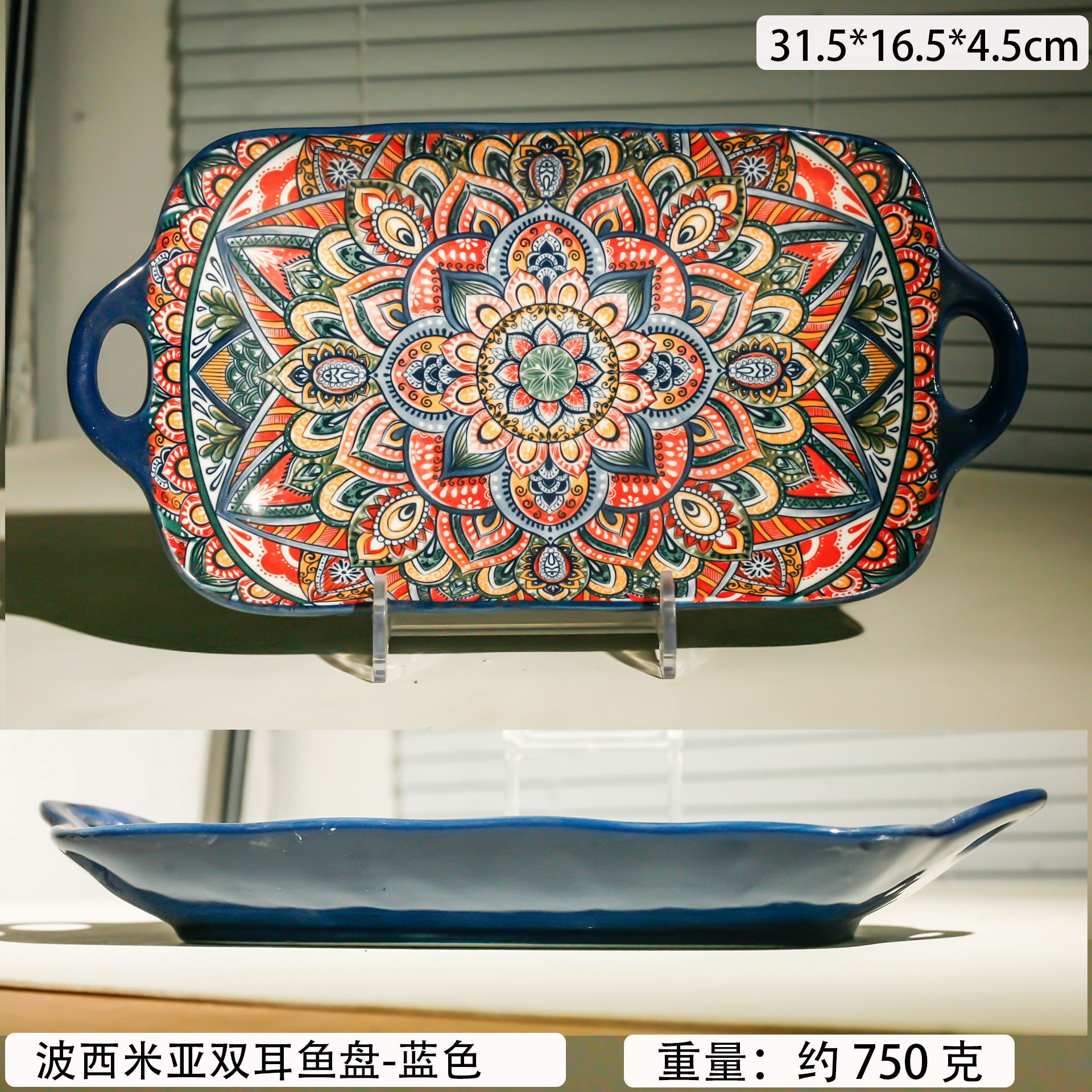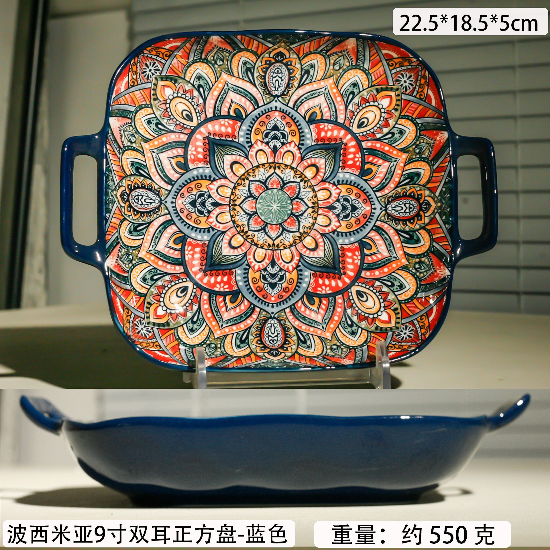 bohemian two-ear square plate-blue