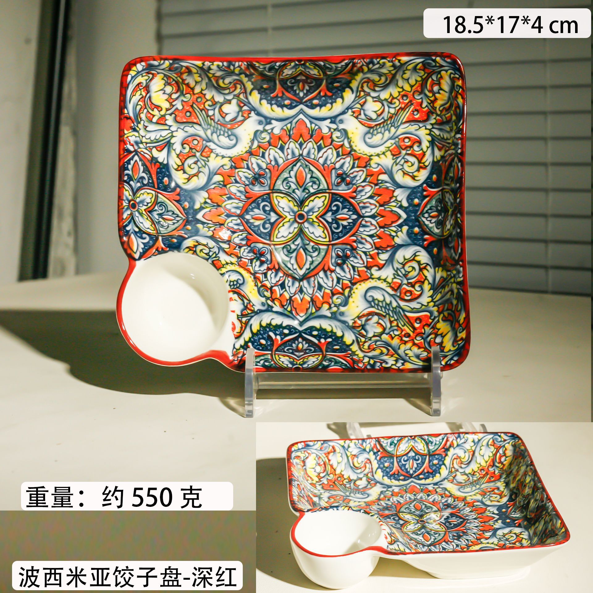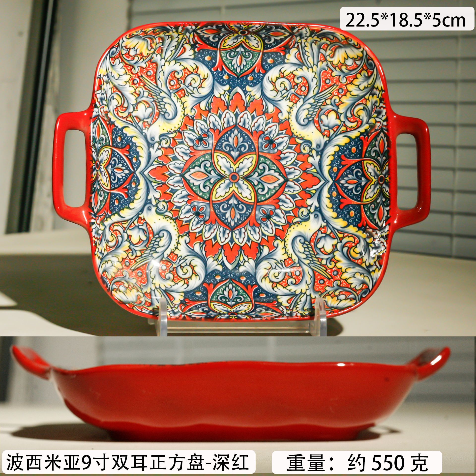 bohemian double-ear square plate-deep red