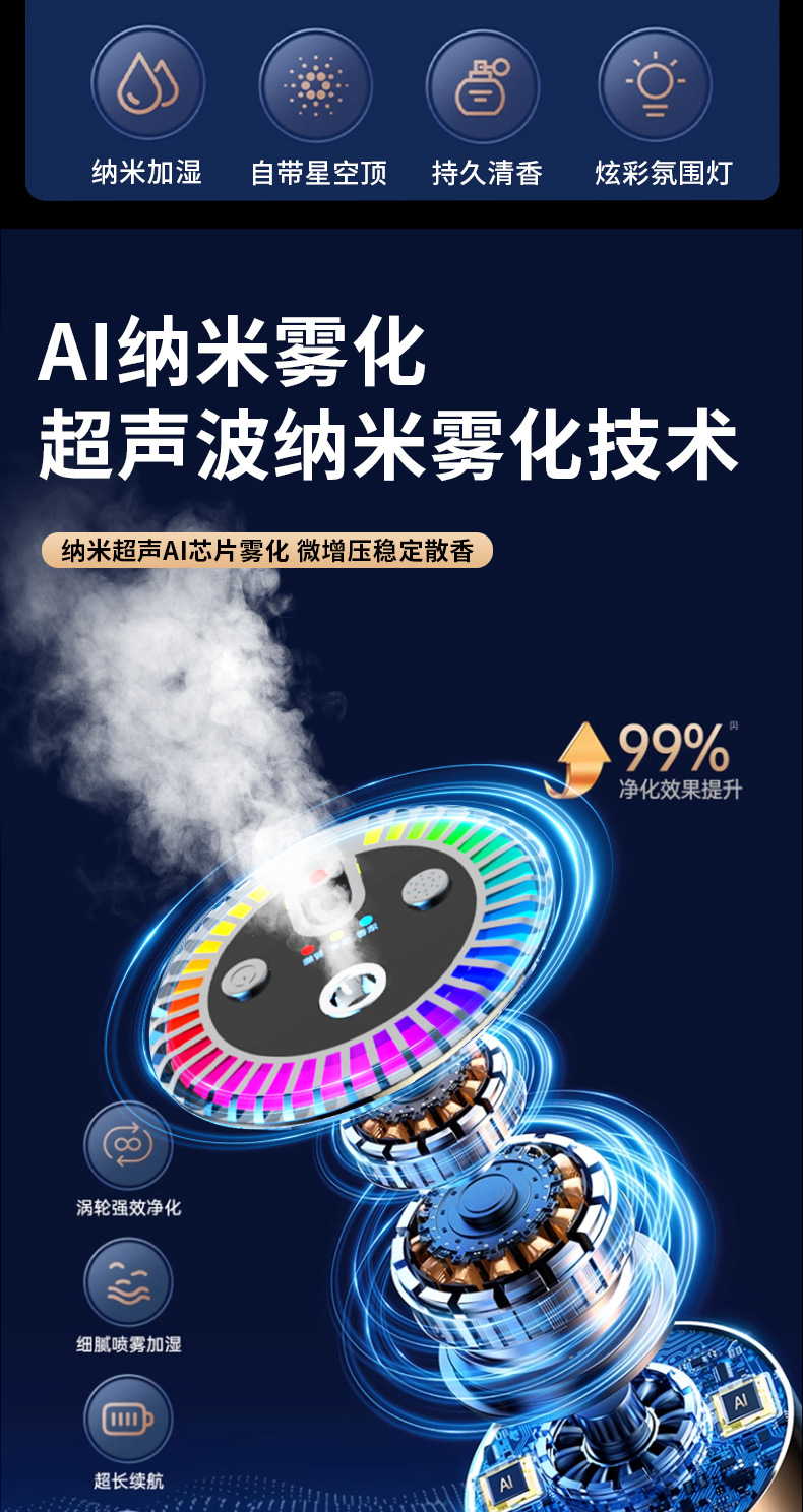 red starry sky [cologne + ocean] on/off with the car | colorful ambience light 1 aroma diffuser +2 bottles of perfume |