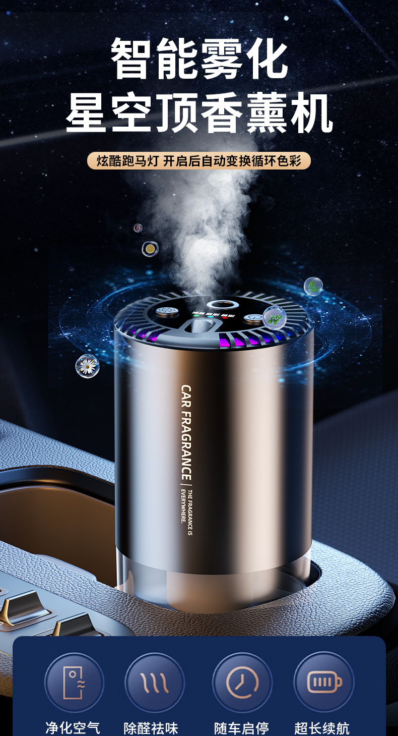 red starry sky [white tea + cologne + osmanthus + ocean] on/off with the car | colorful ambience light 1 aroma diffuser +4 bottles of perfume |