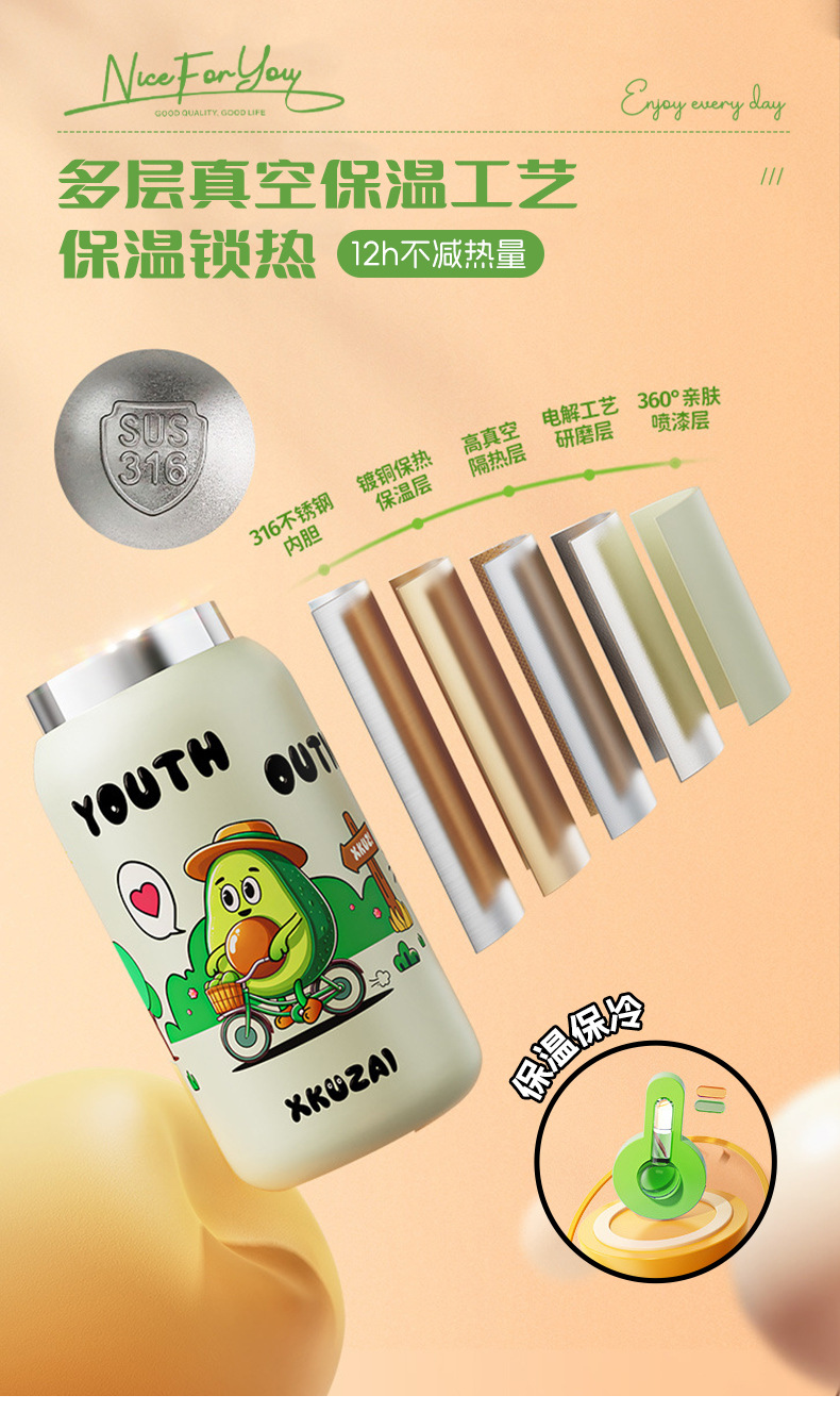 Product material: exterior 304 stainless steel + interior 316 stainless steel + lid PP