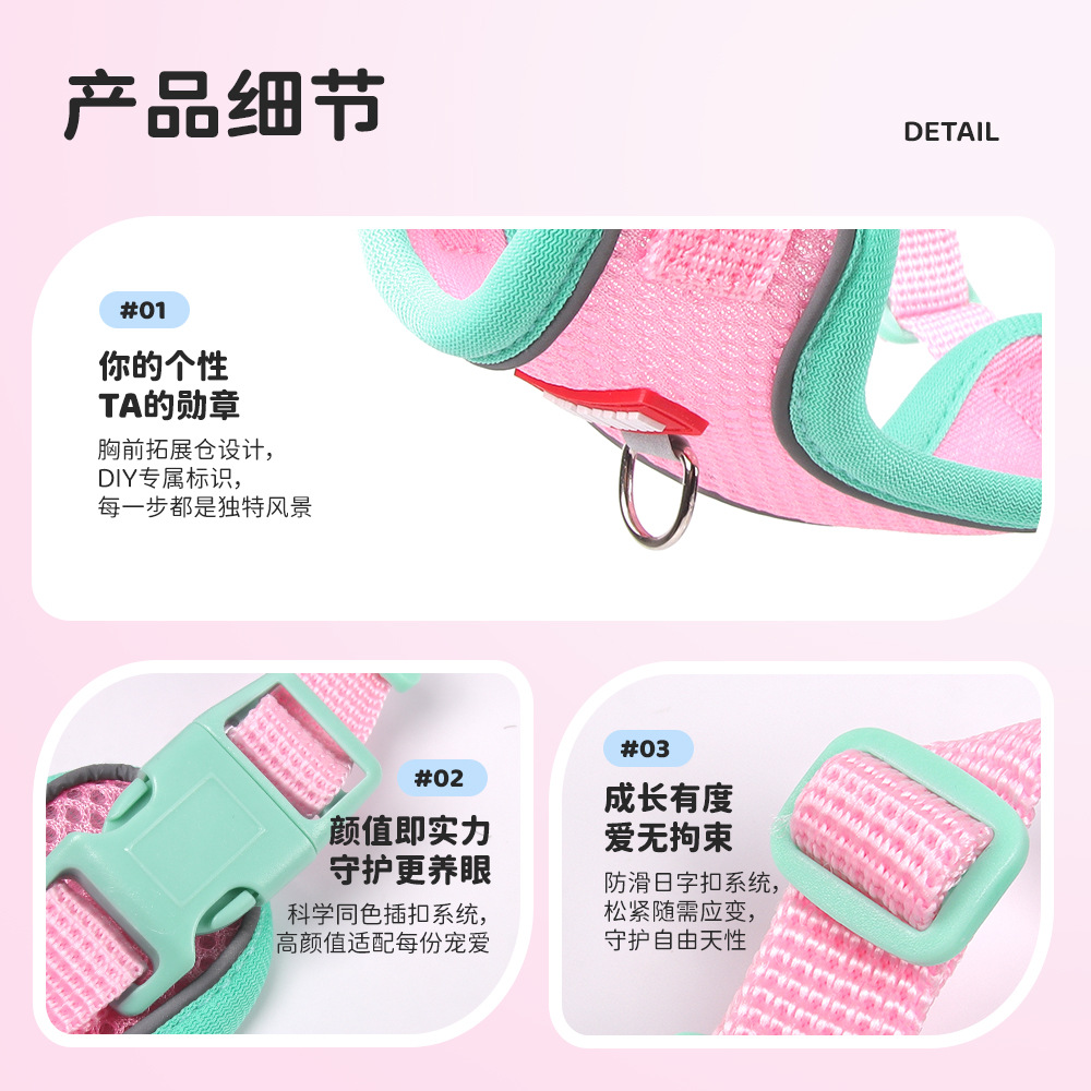 summer dog hand holding rope contrast color puppy dog leash vest small dog breathable chest strap dog breast collar teddy