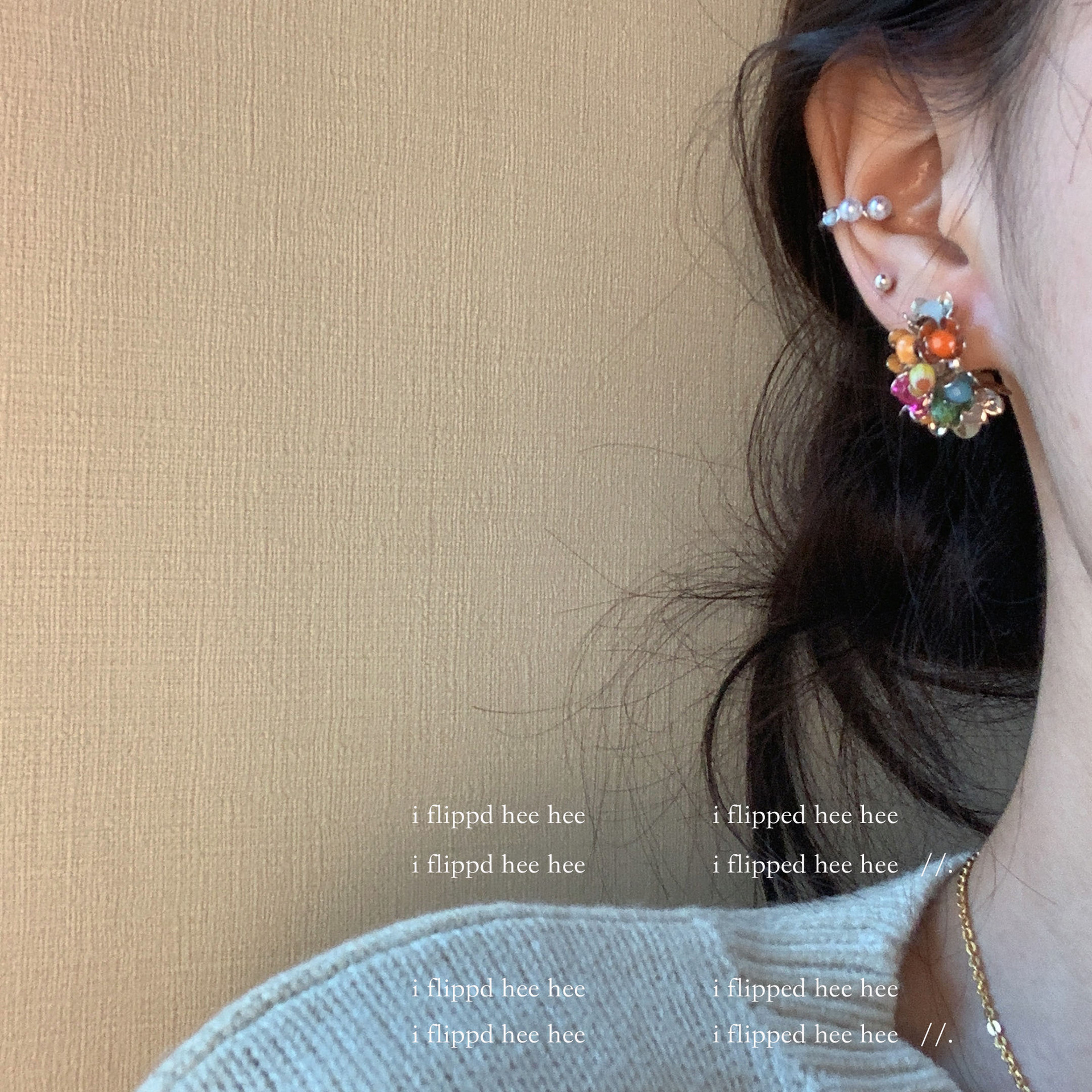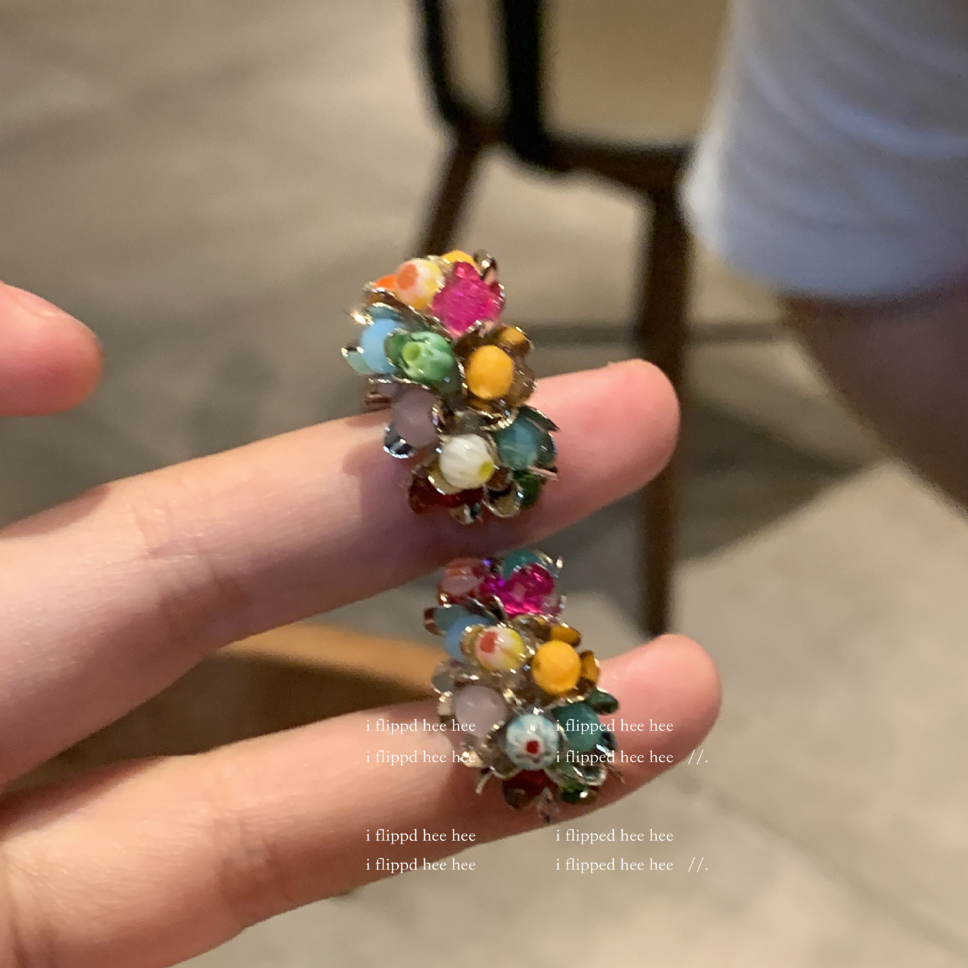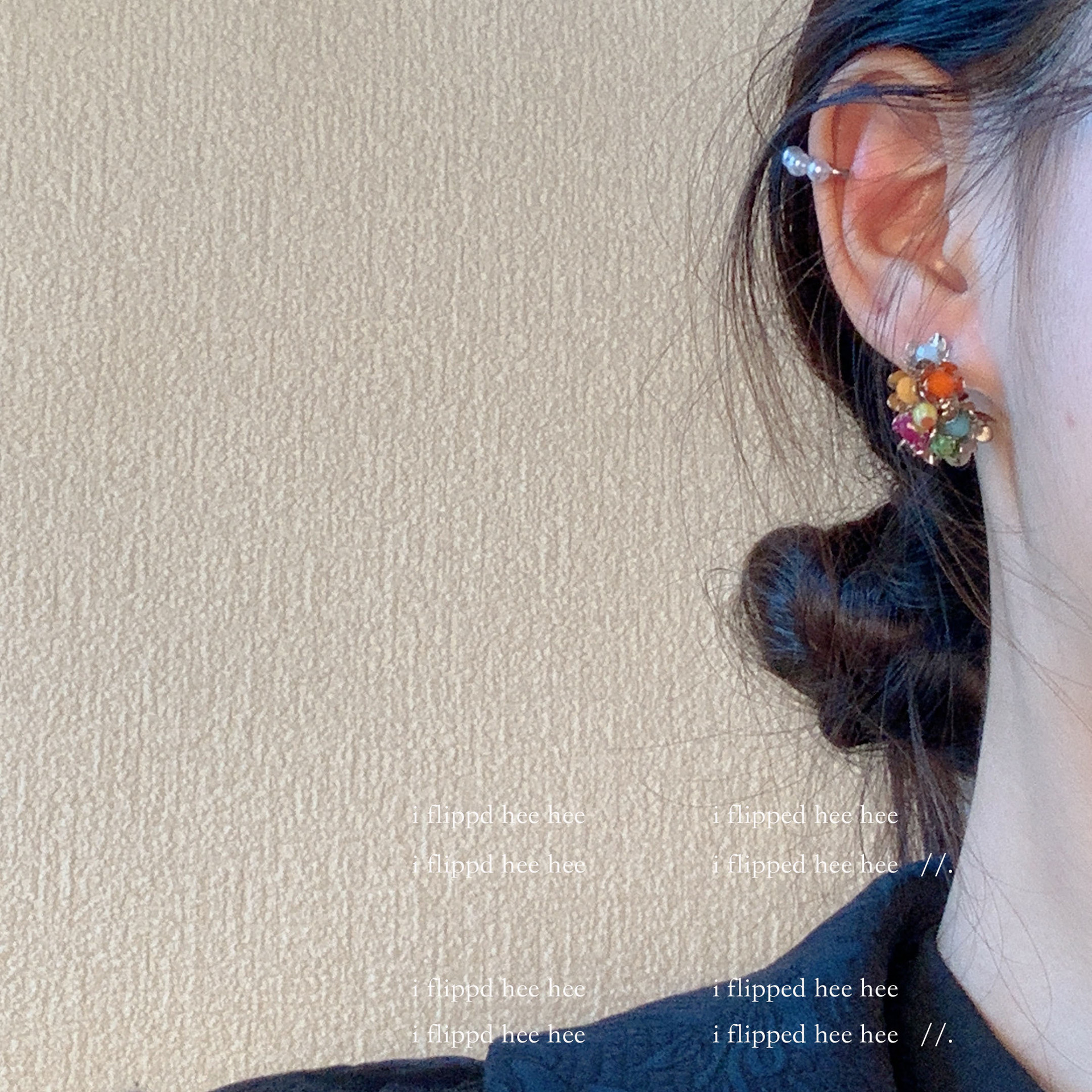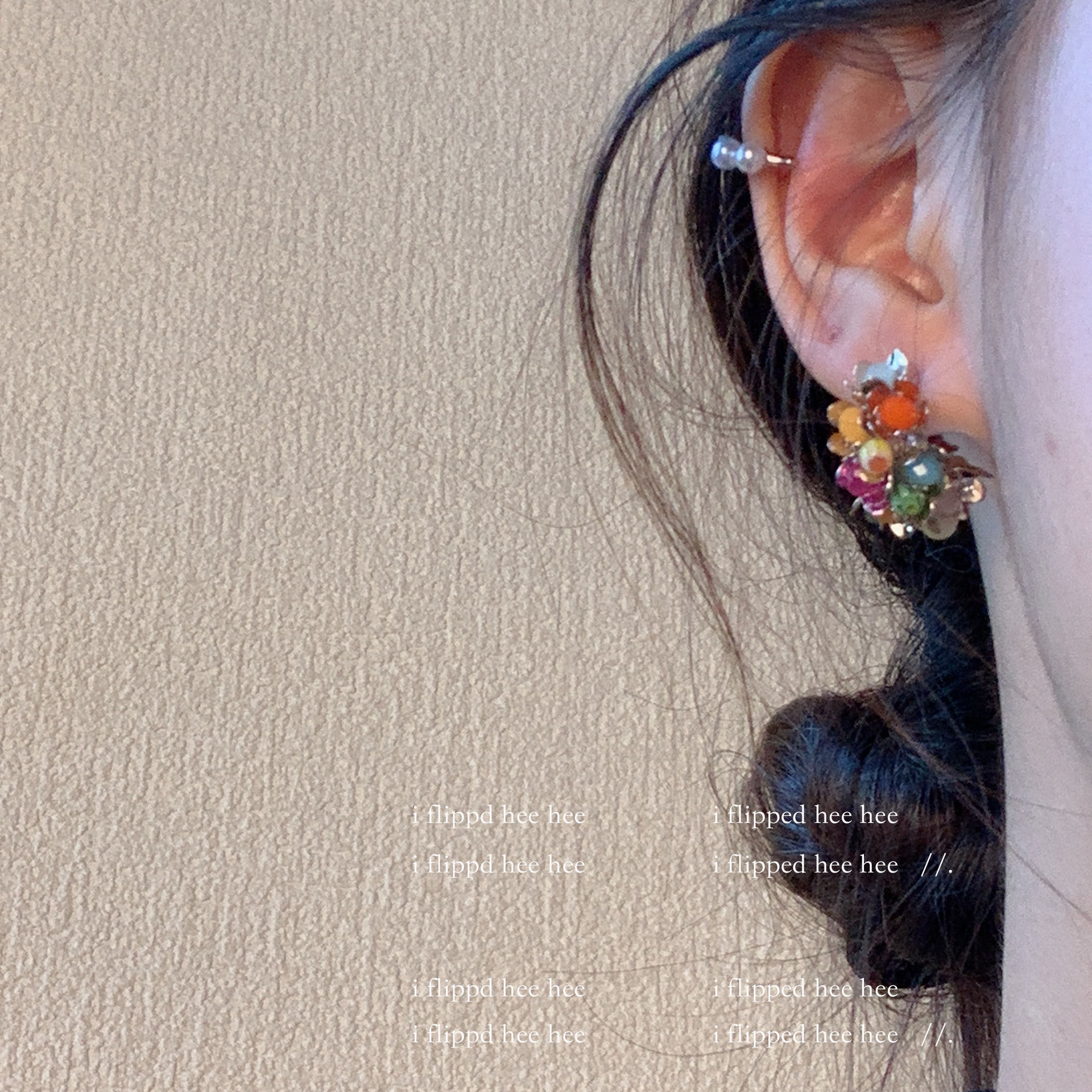 gold-colored colorful stone ear clip