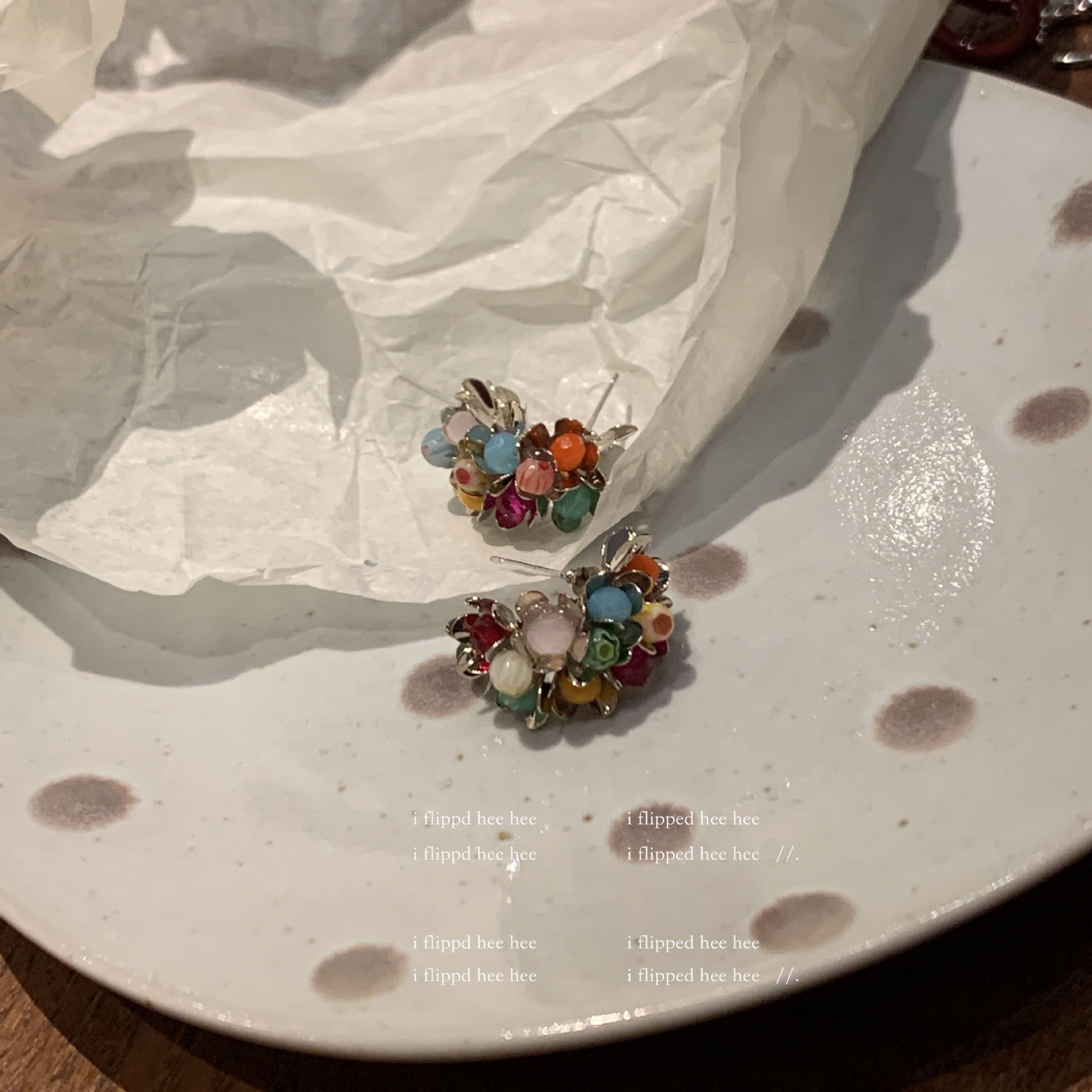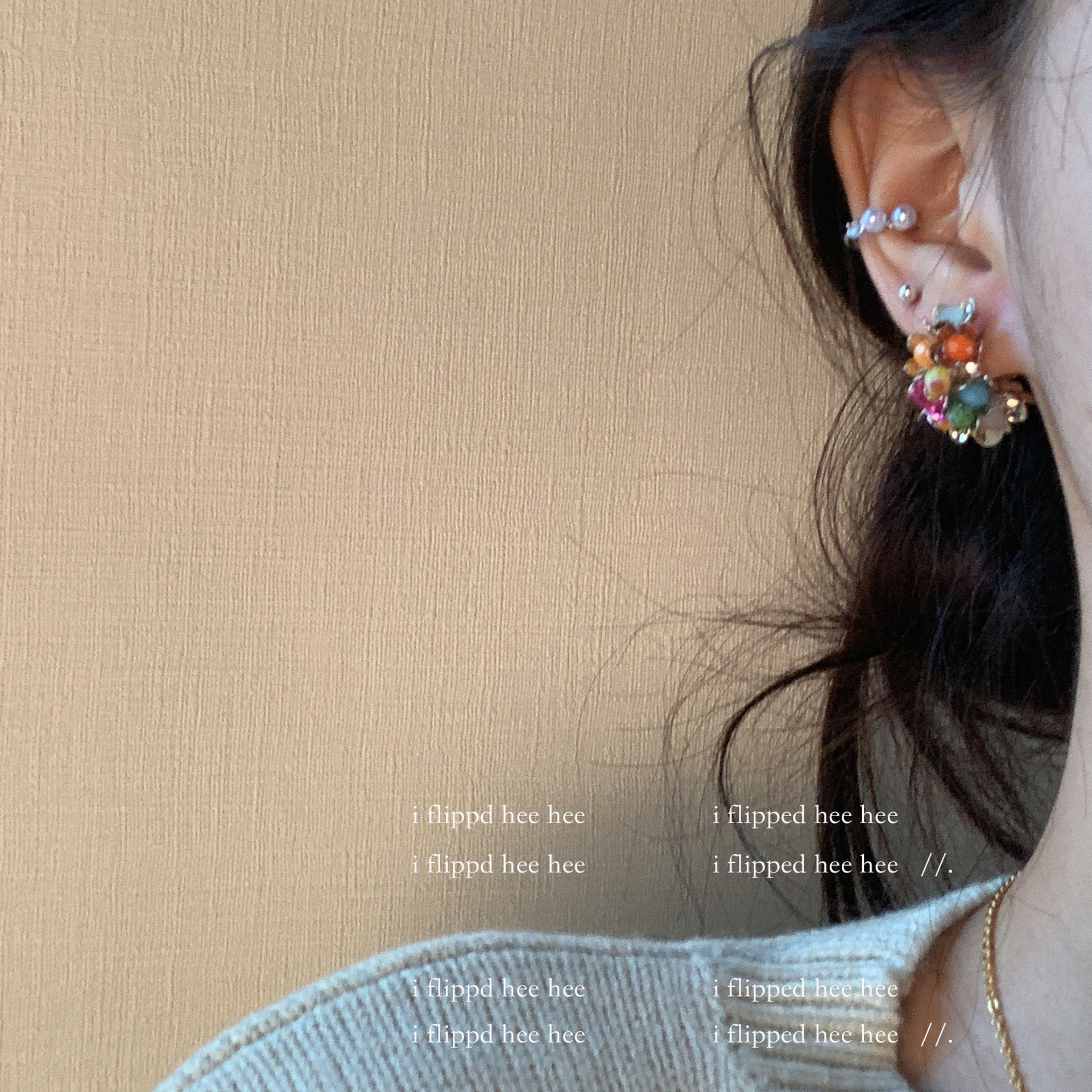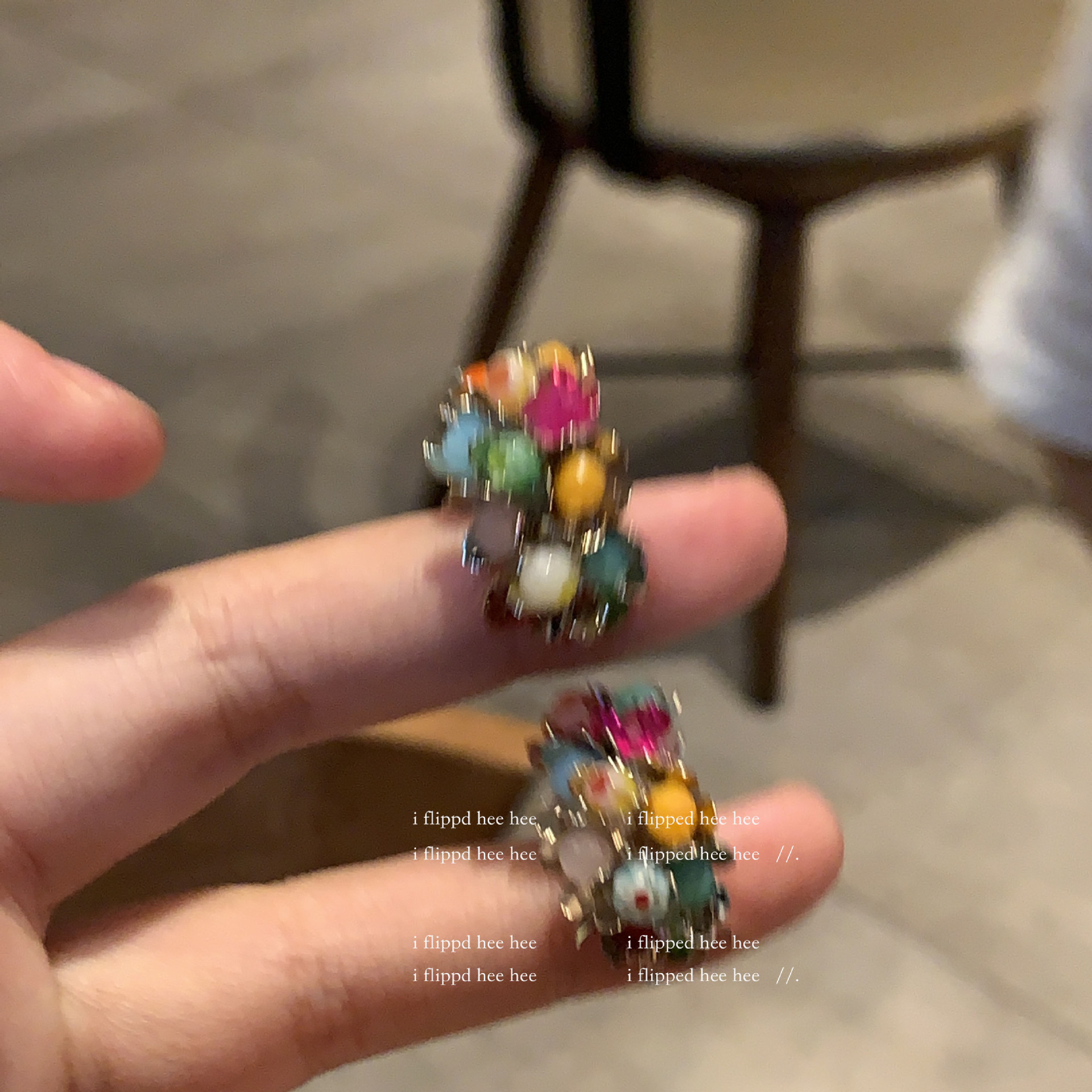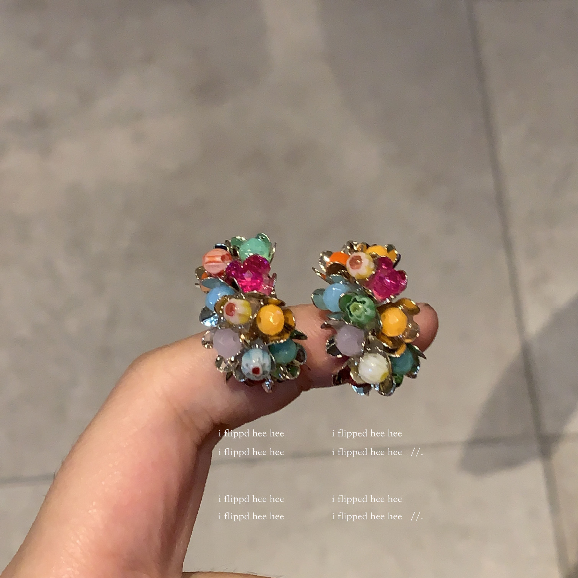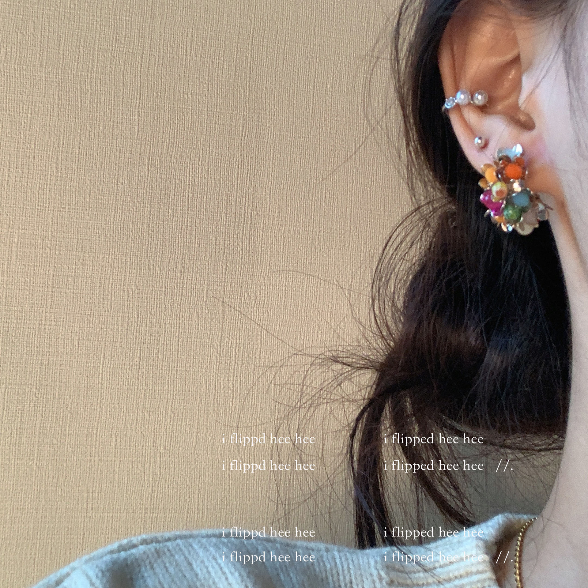 gold-colored colorful stone ear clip