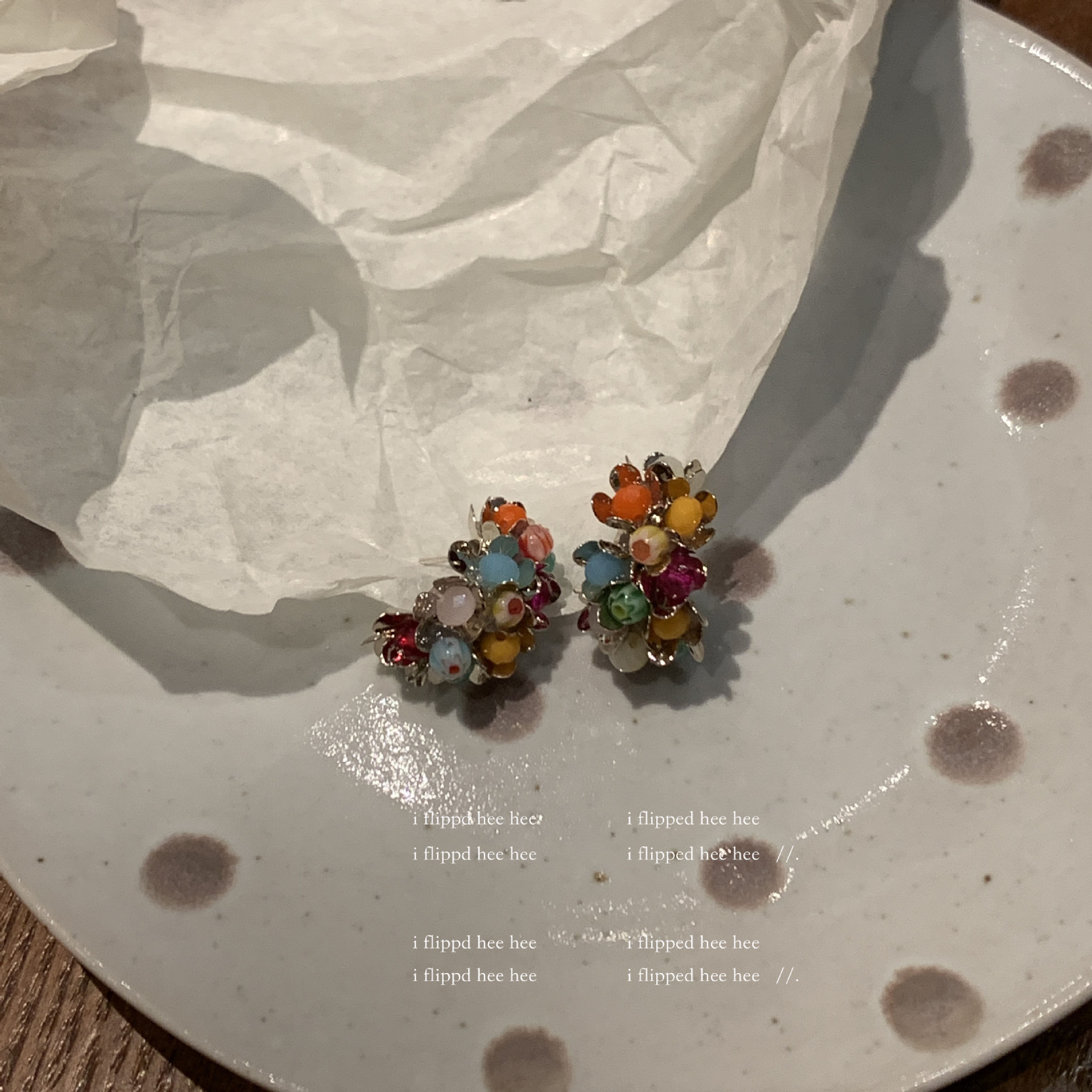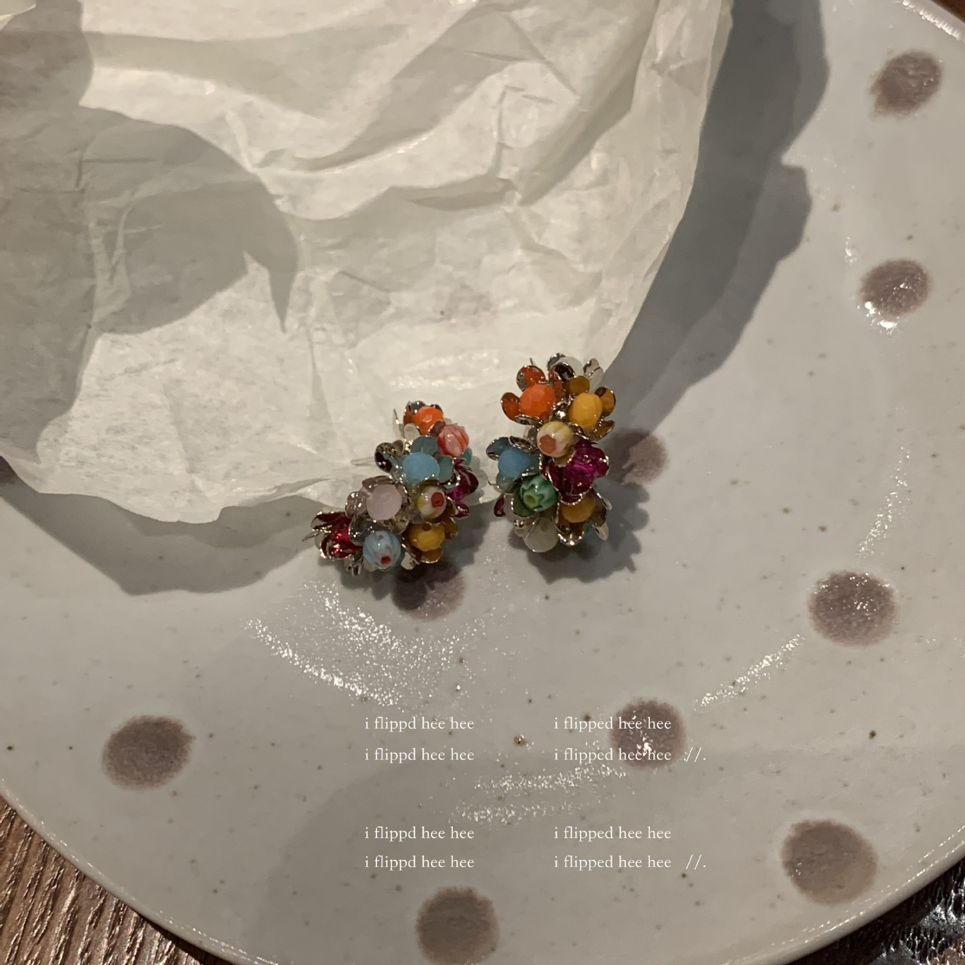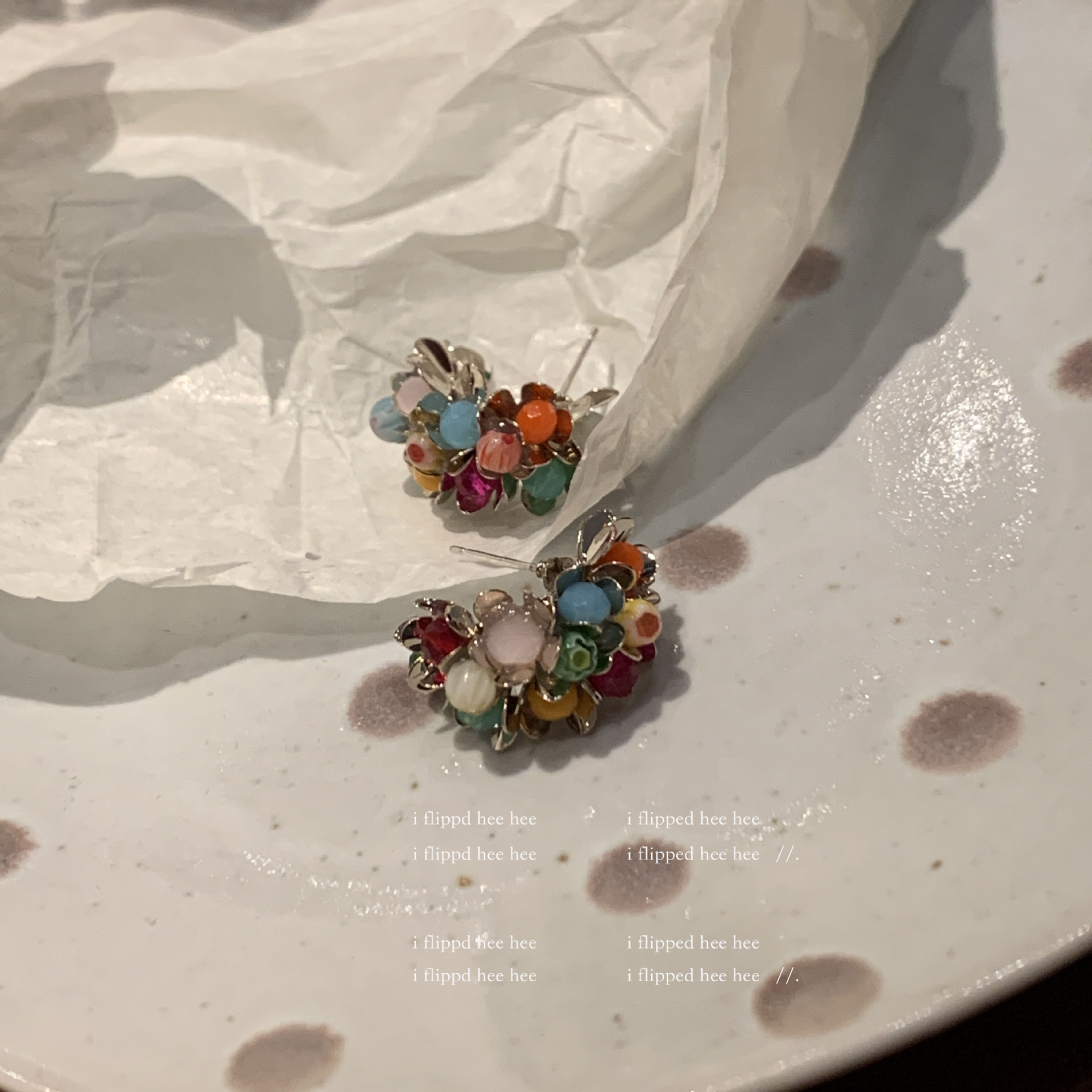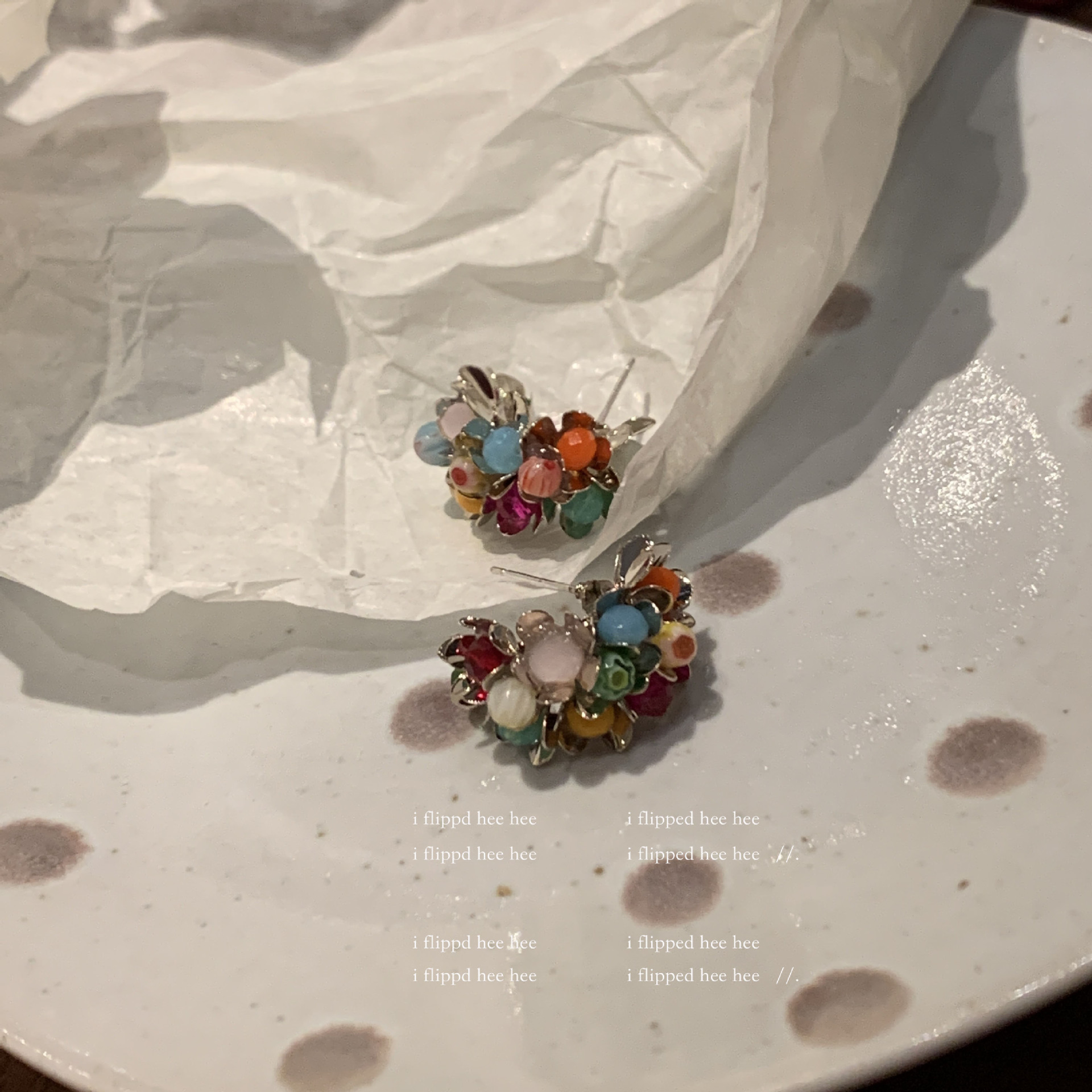 gold-colored colorful stone ear clip