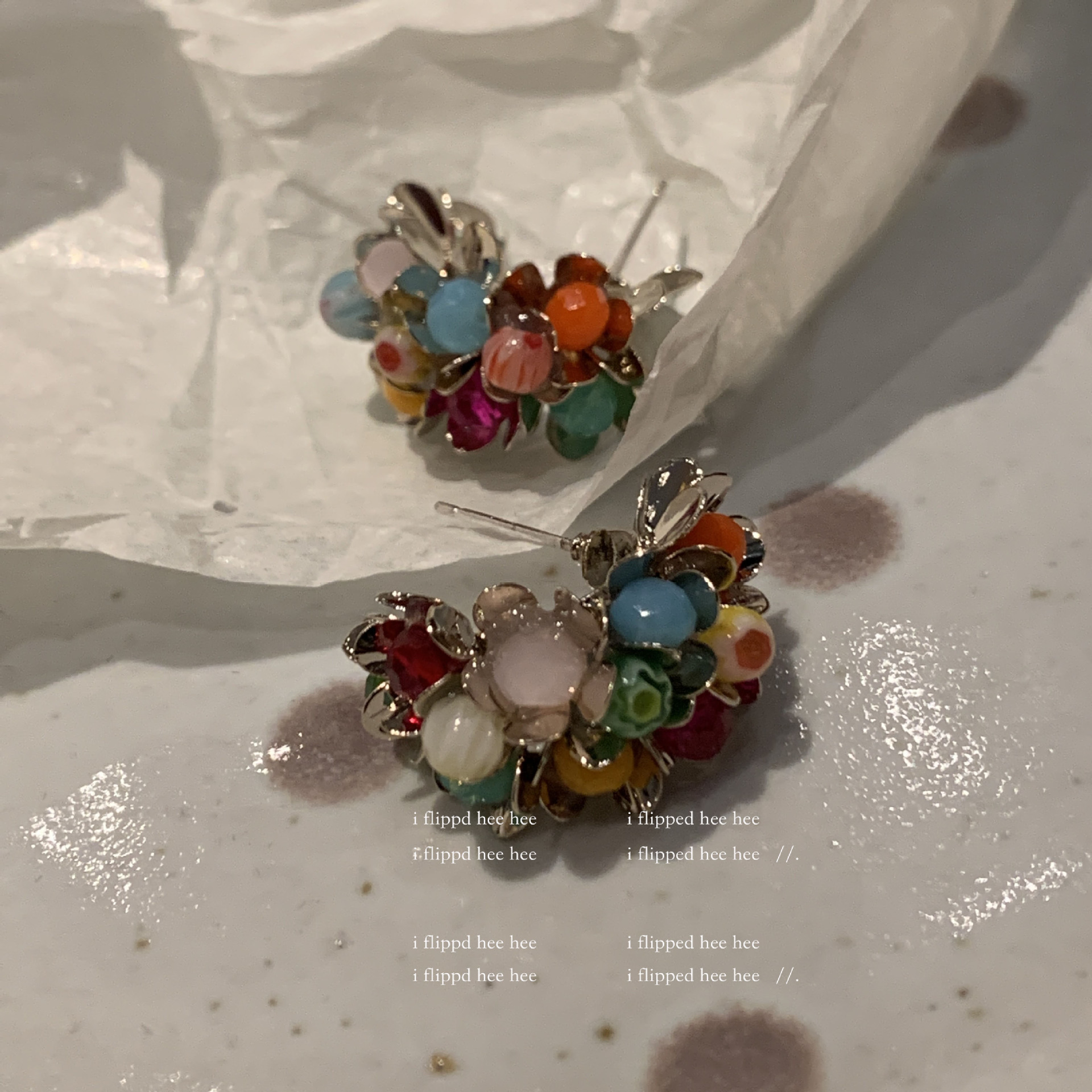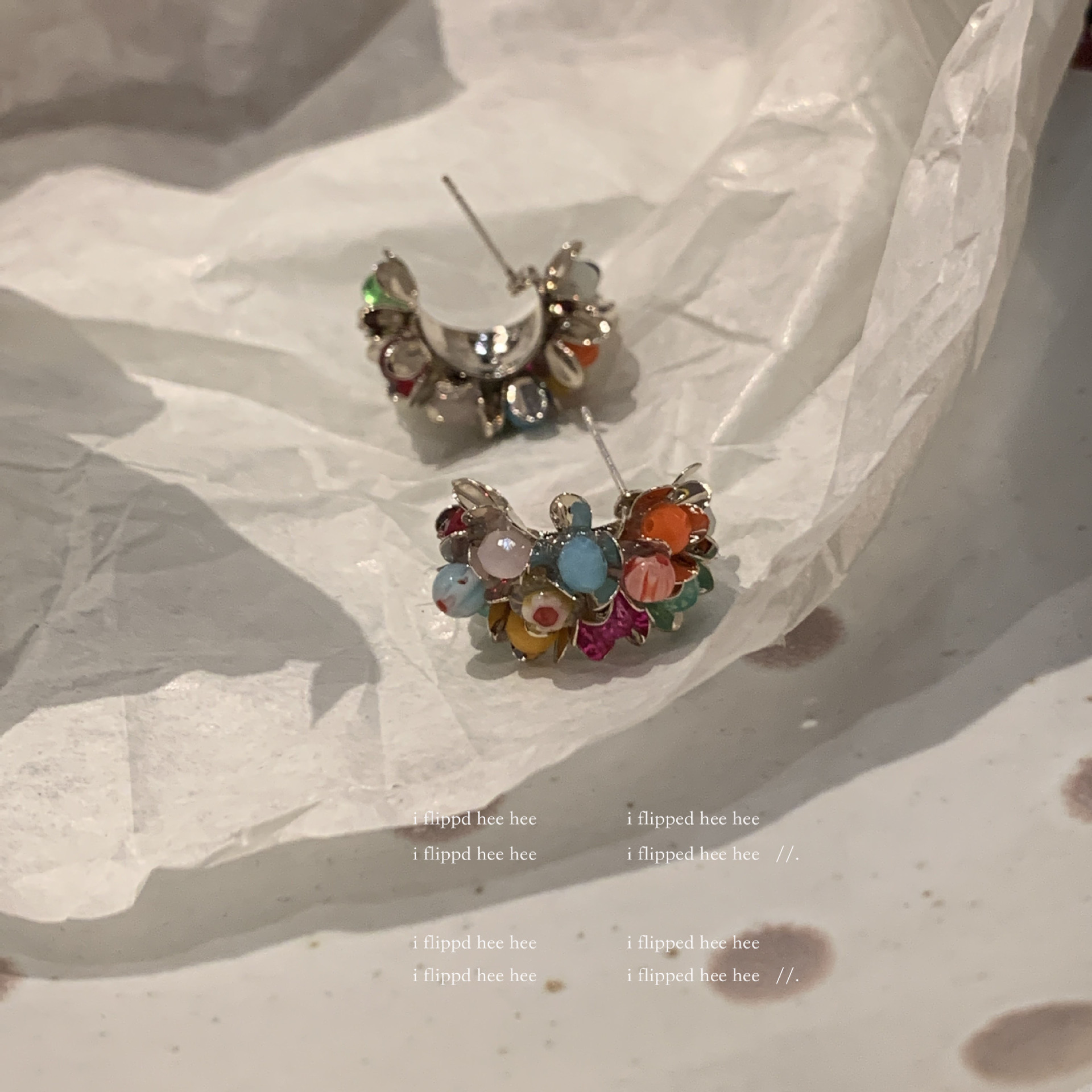 gold-colored colored stones, 925 silver needles