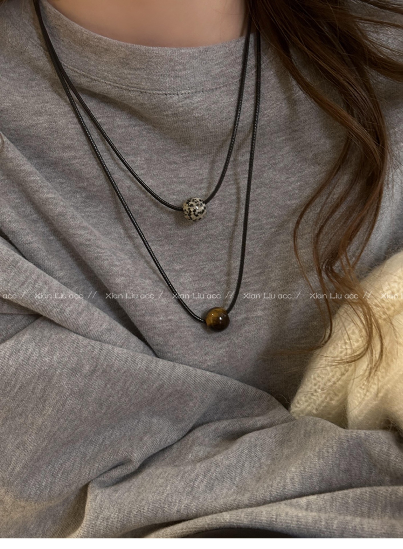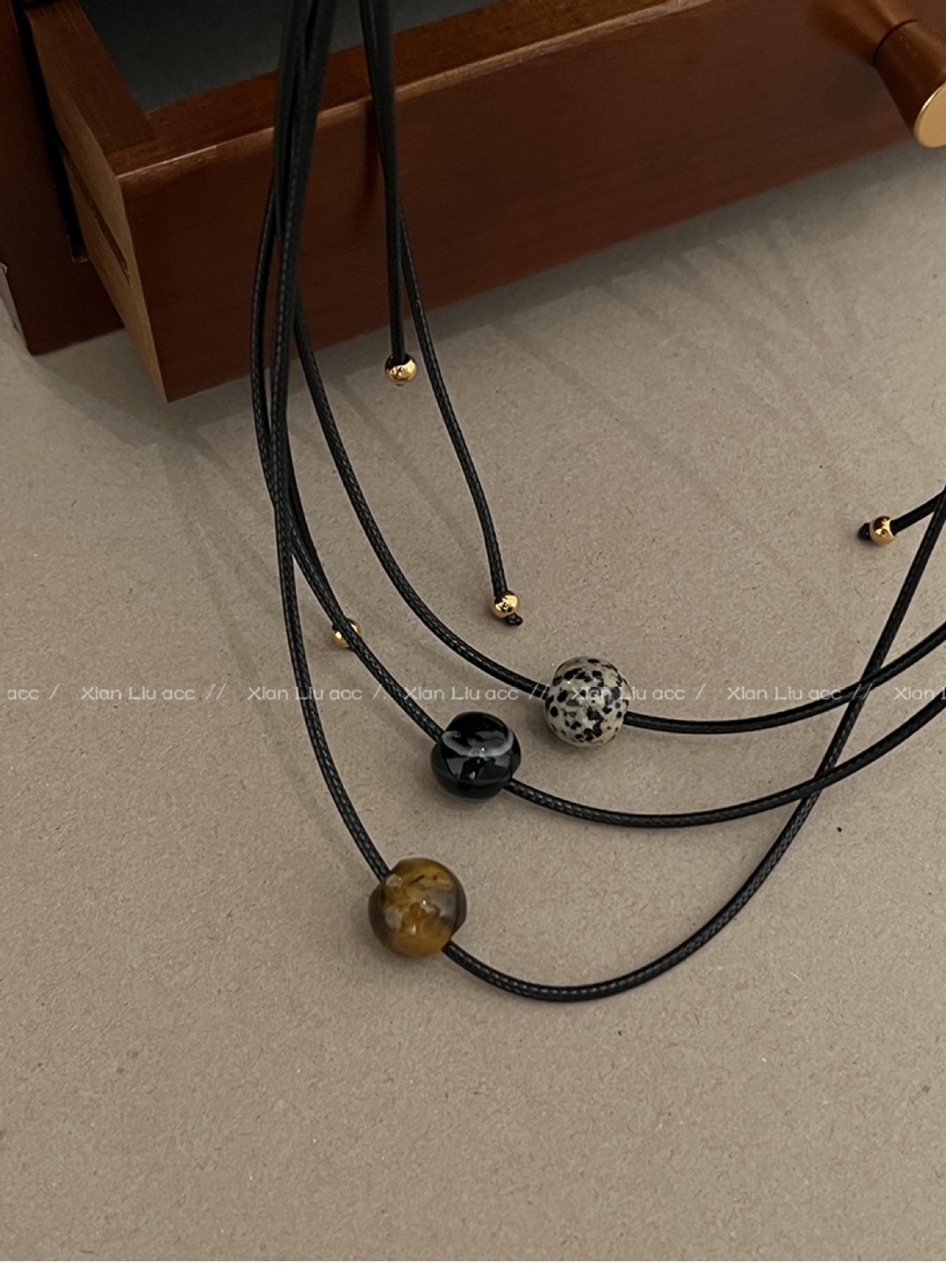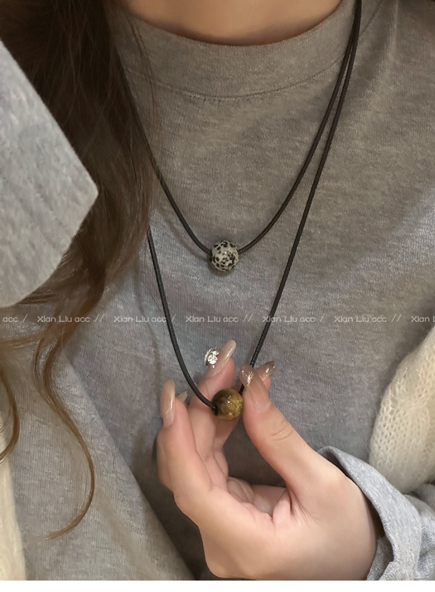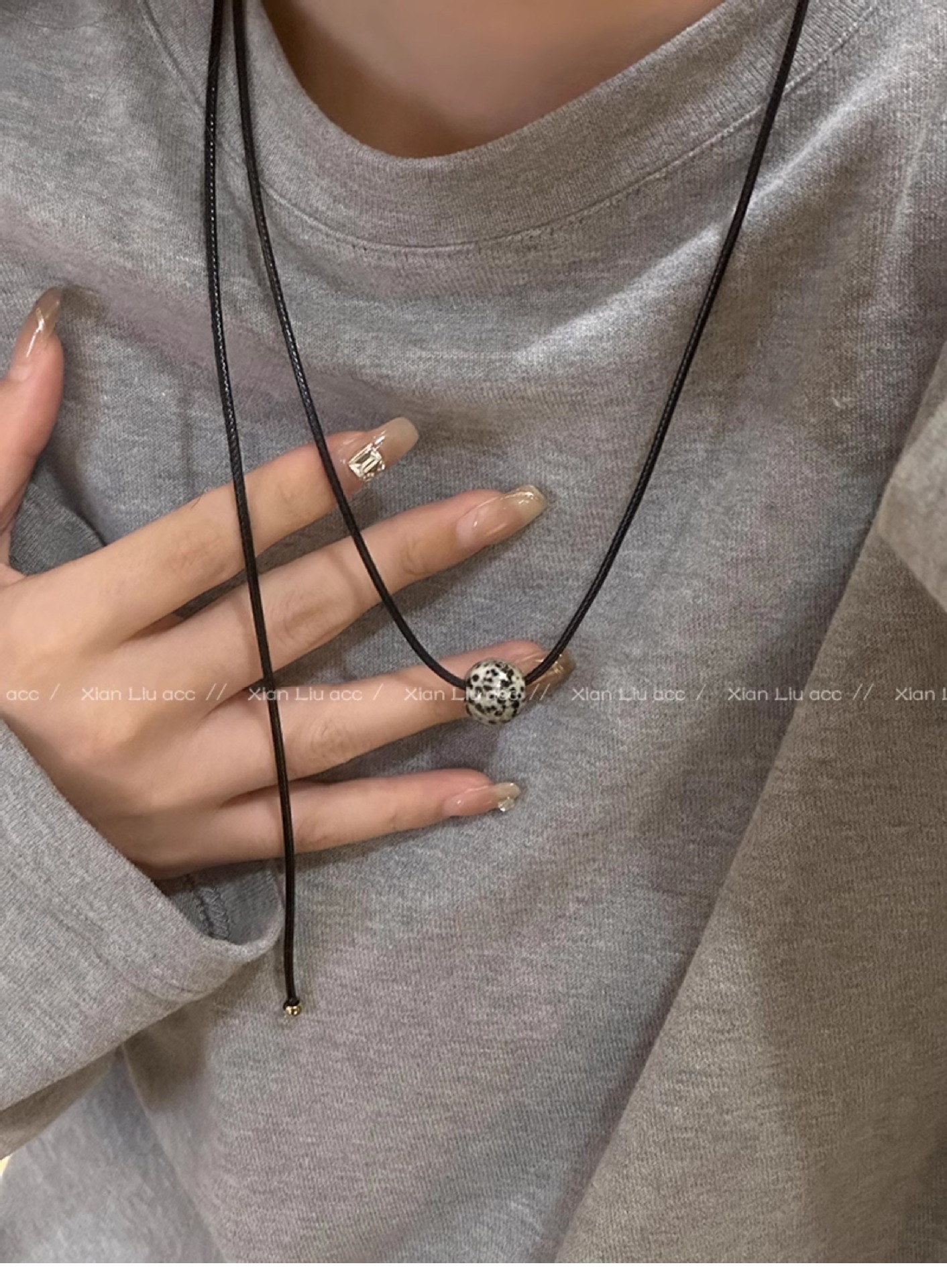 spotted stone drawstring necklace