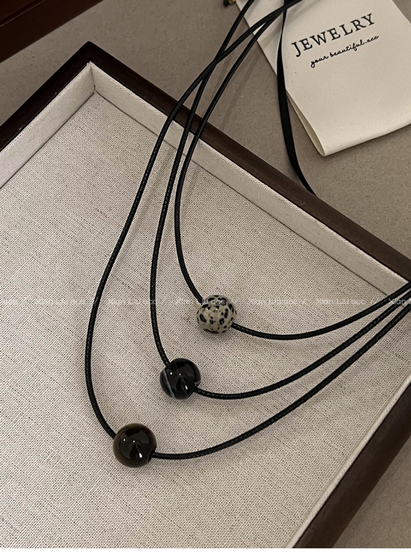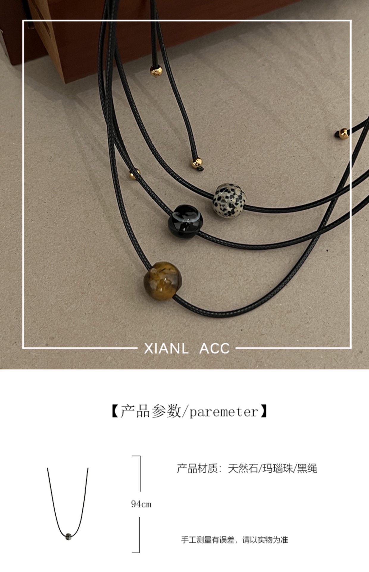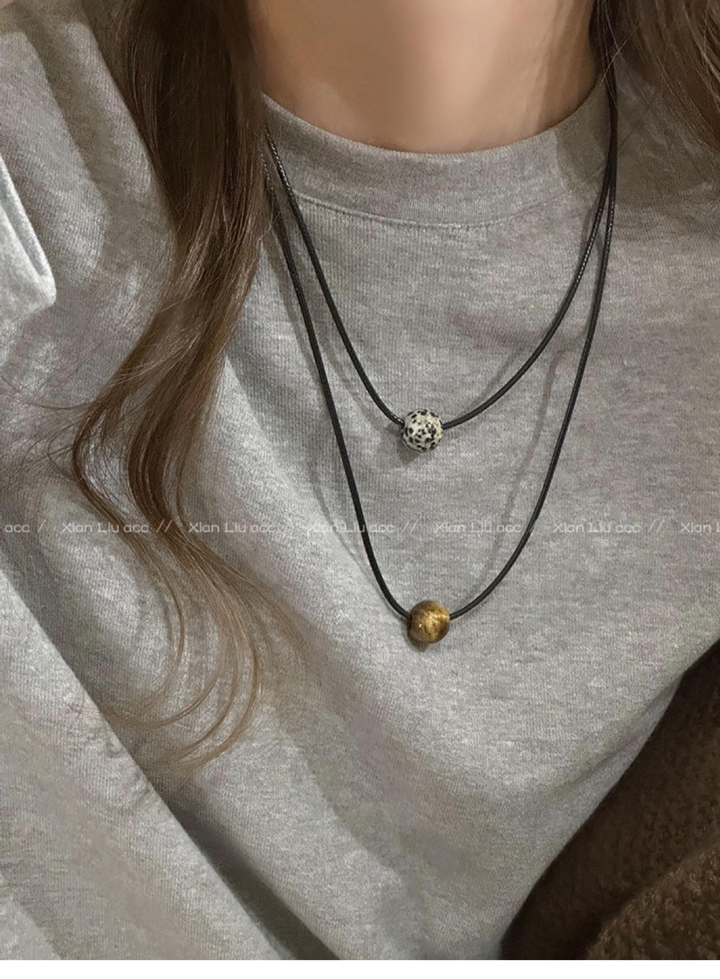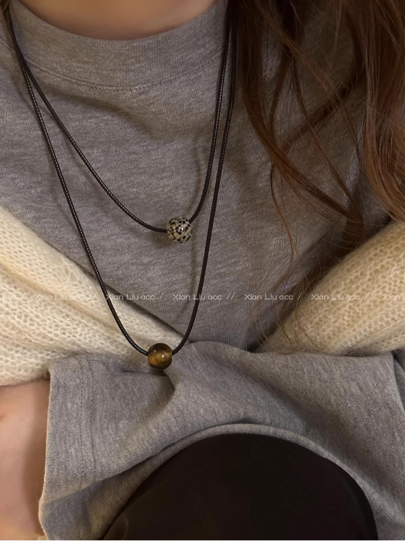 spotted stone drawstring necklace