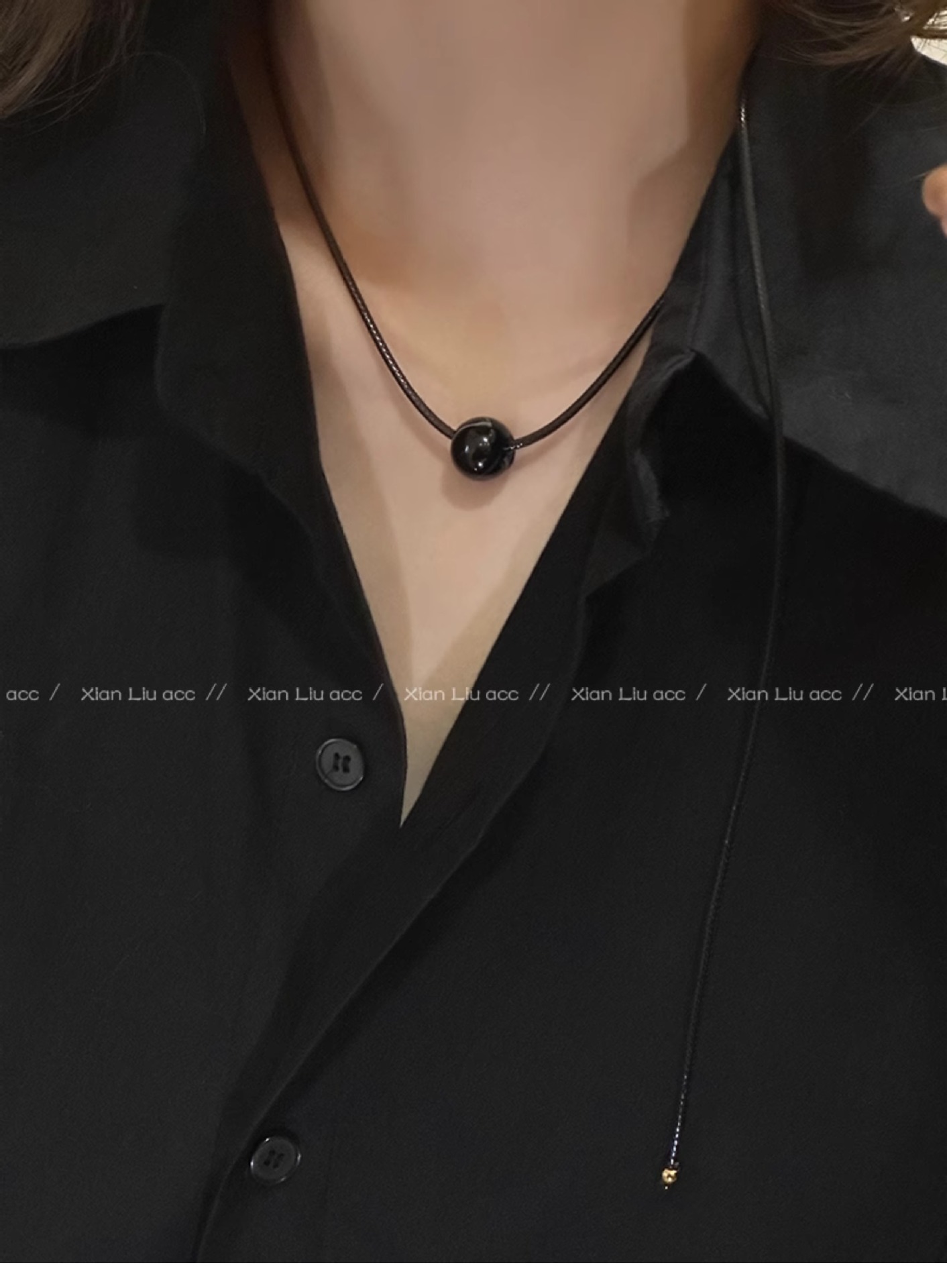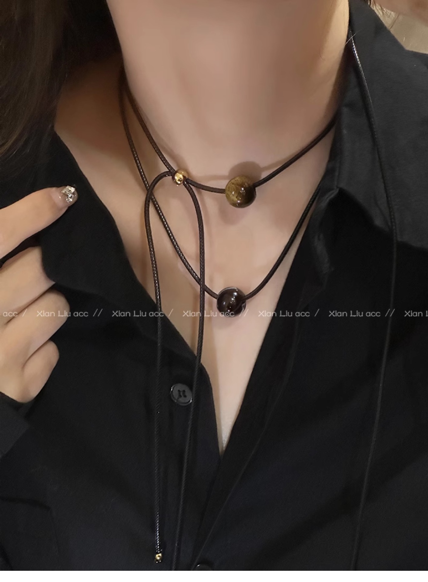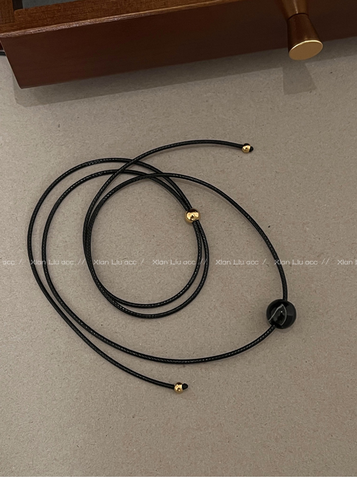 black agate drawstring necklace