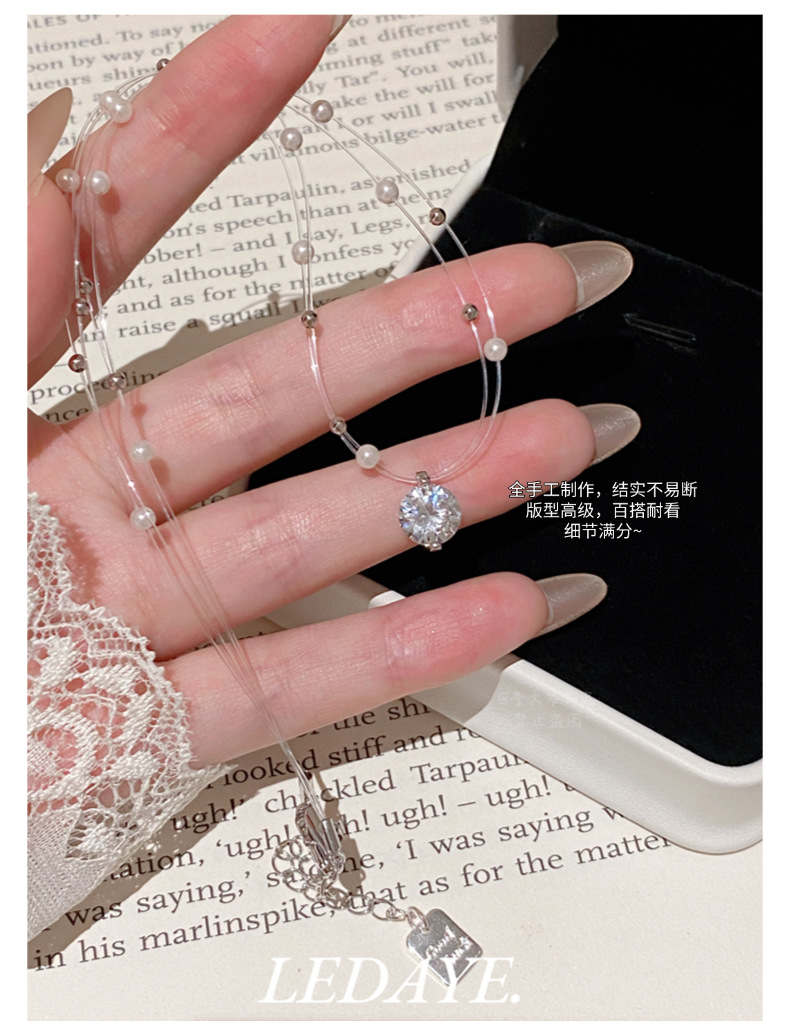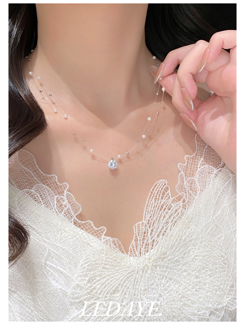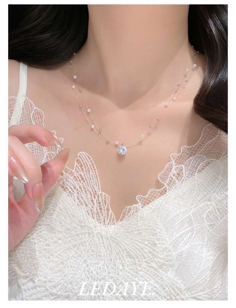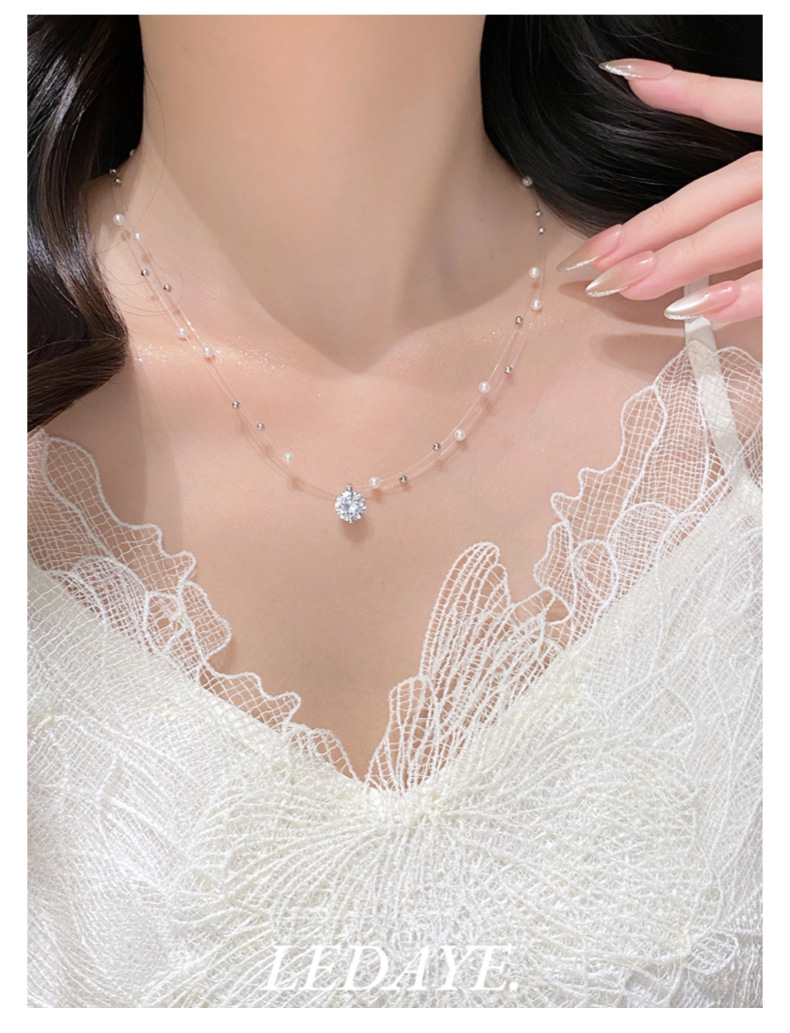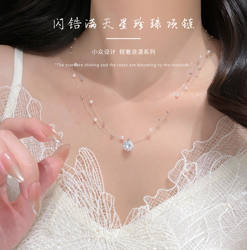 sparking zirconium studded pearl necklace