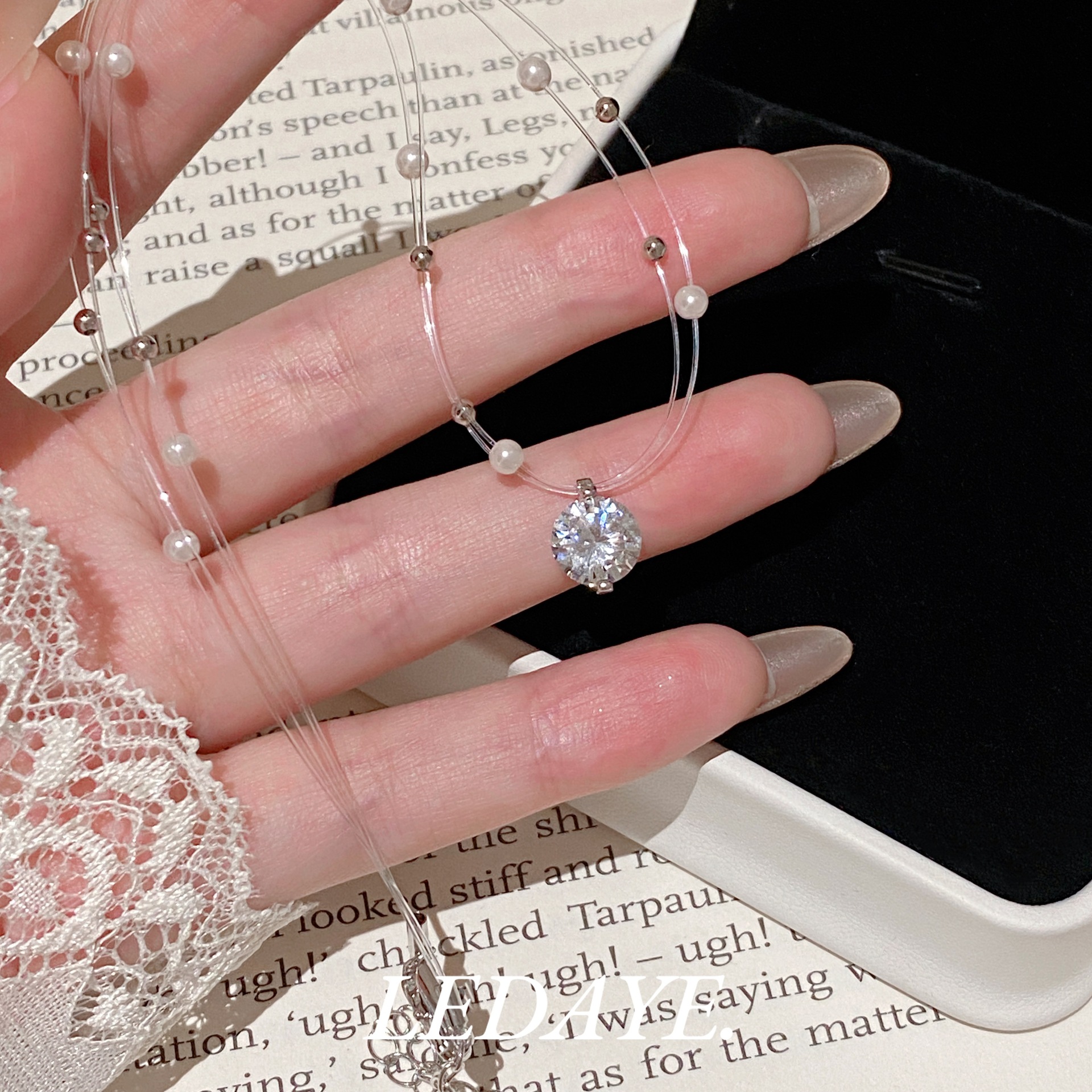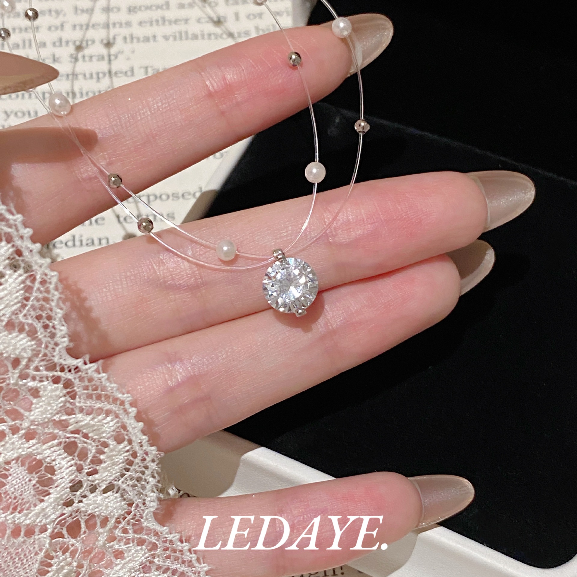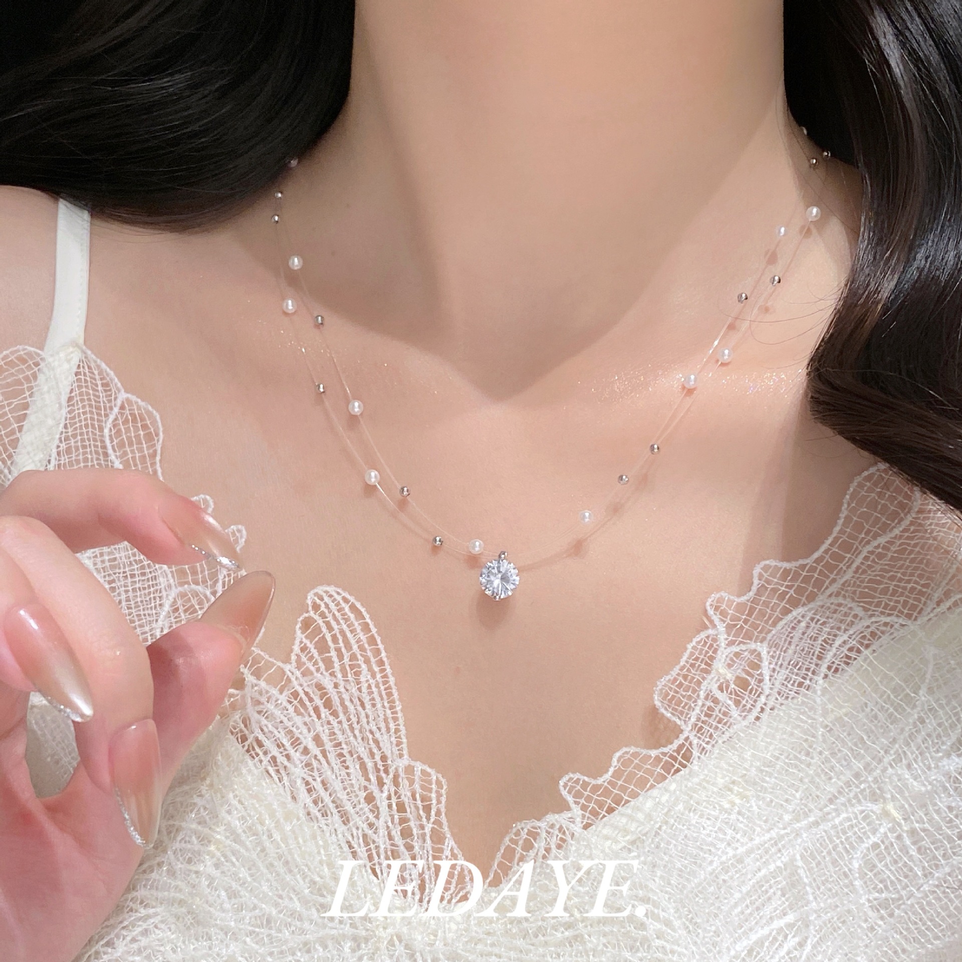 sparking zirconium studded pearl necklace