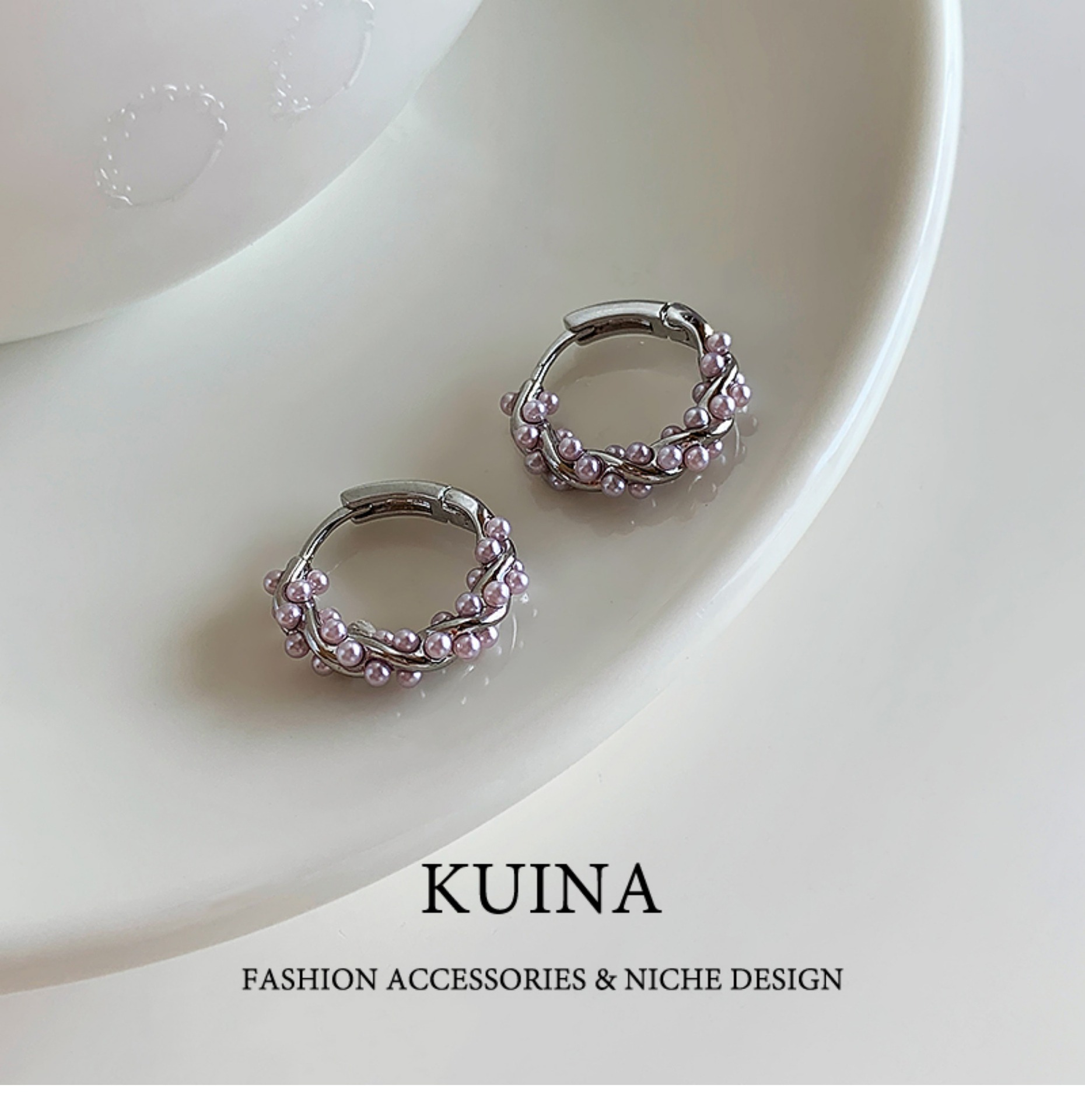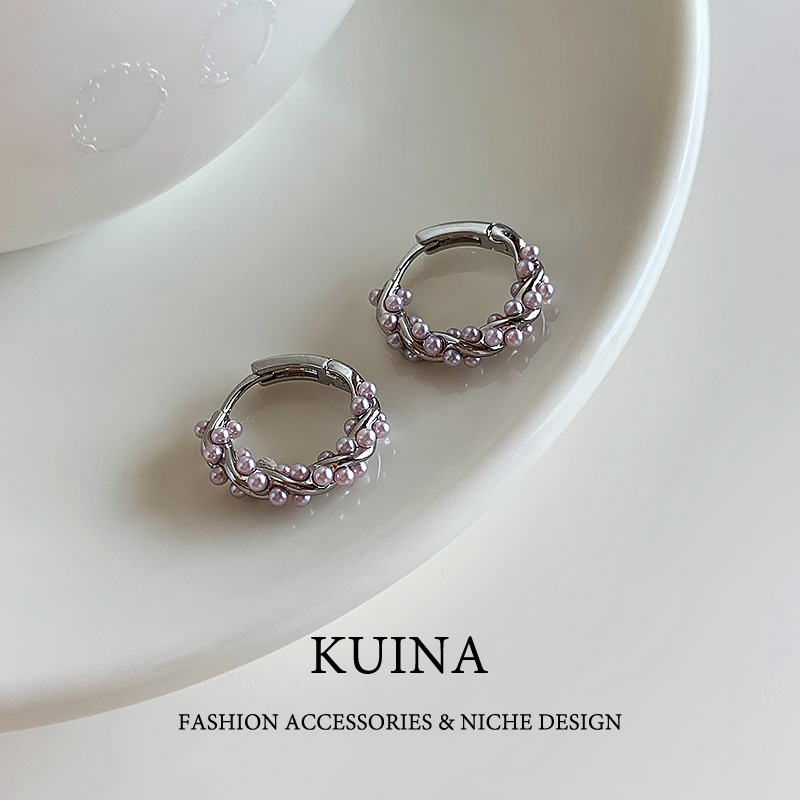 purple pearl earrings ear clip