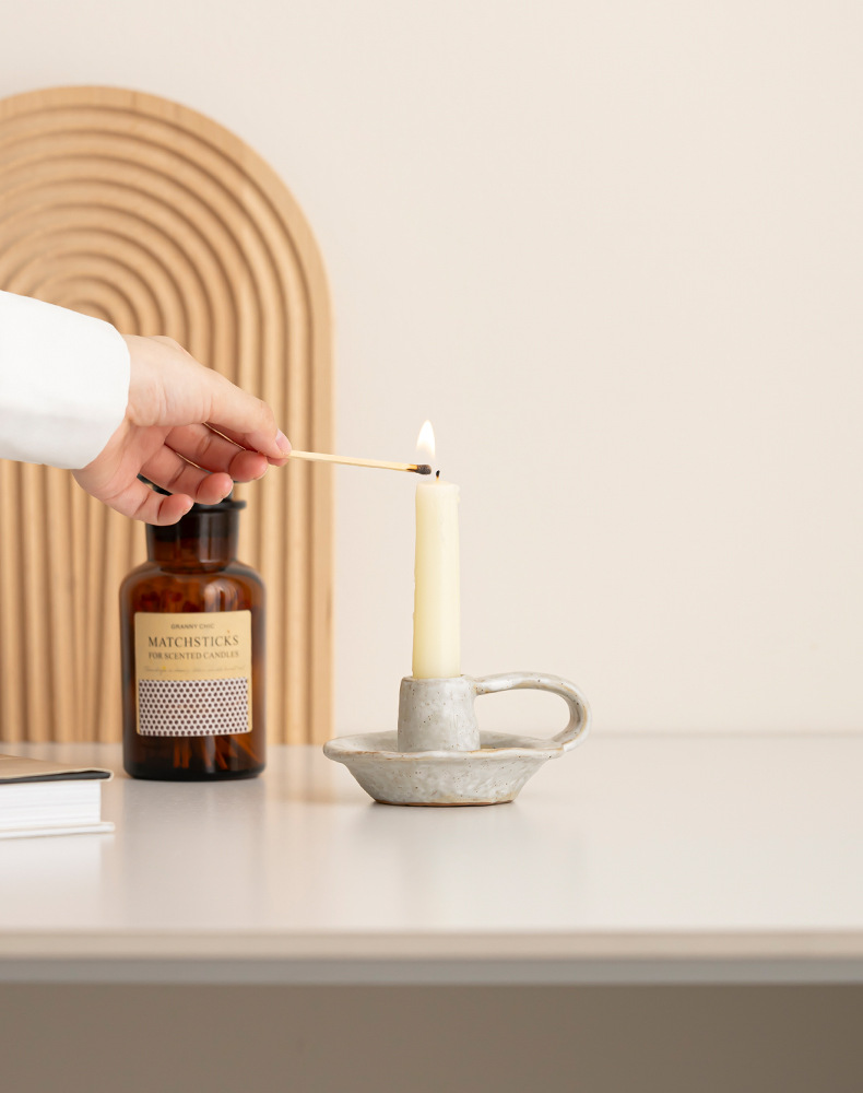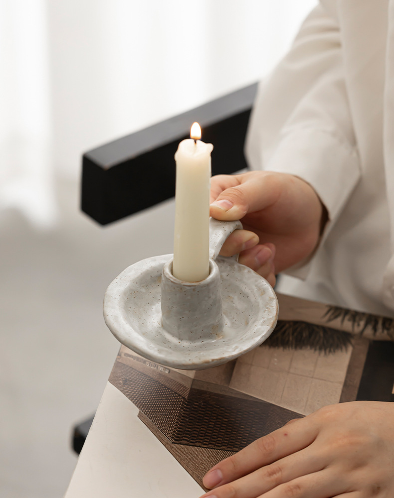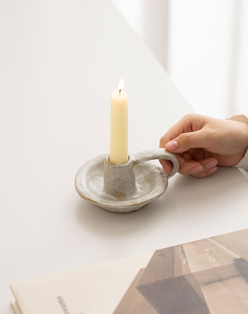 light gray simple white small candlestick