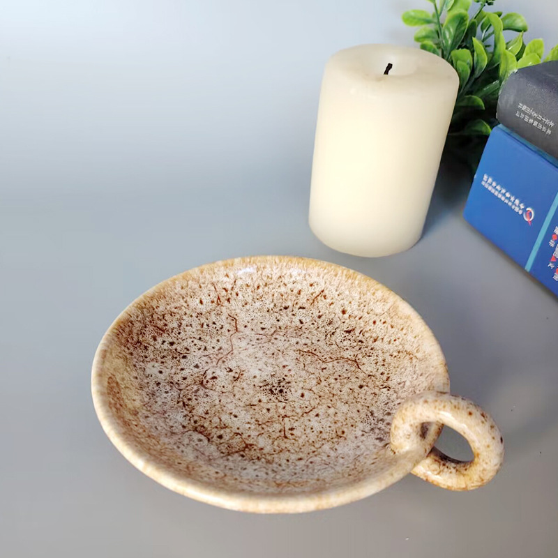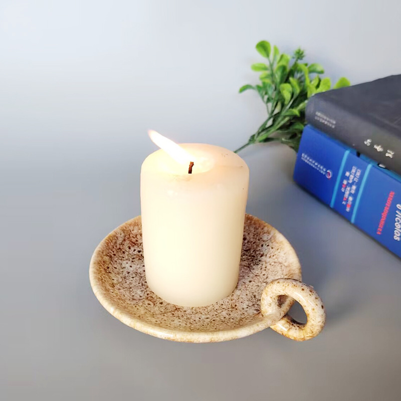 kiln baked candlestick plate -- red