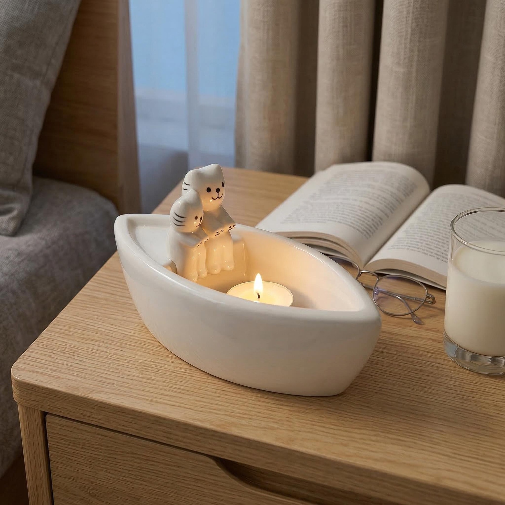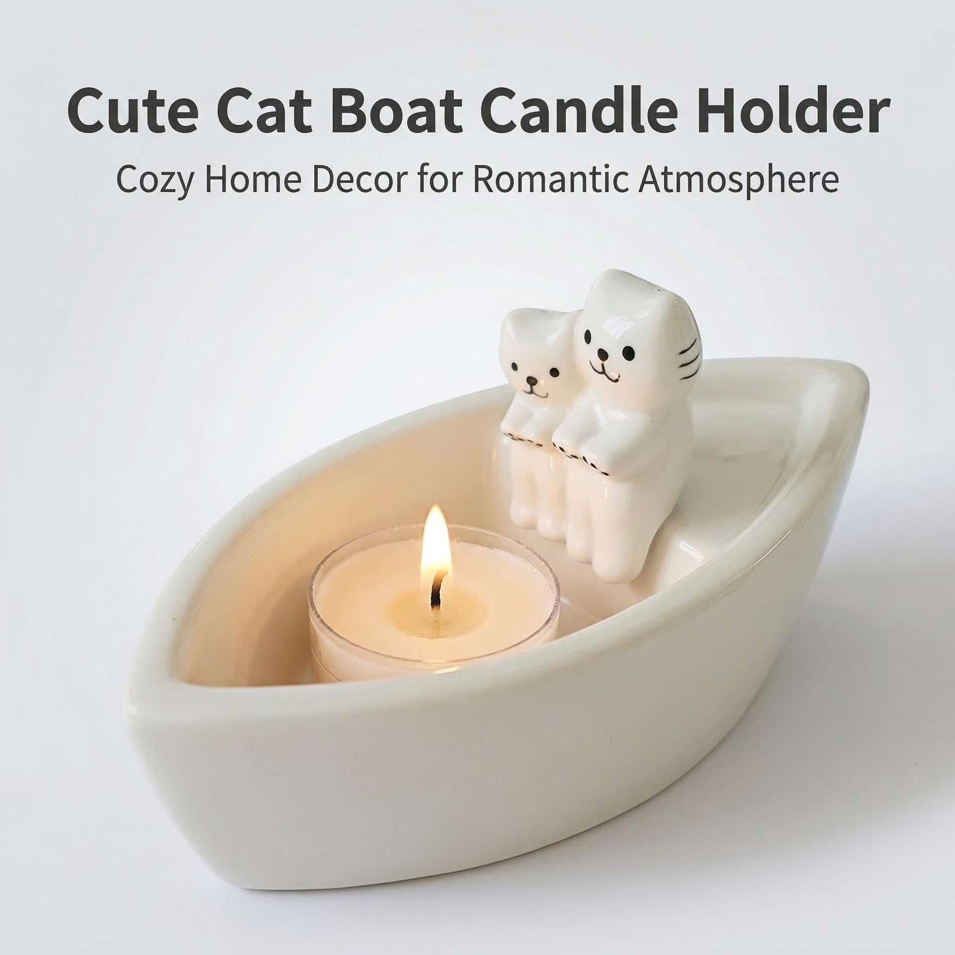 boat-shaped cat lovers' candle holder
