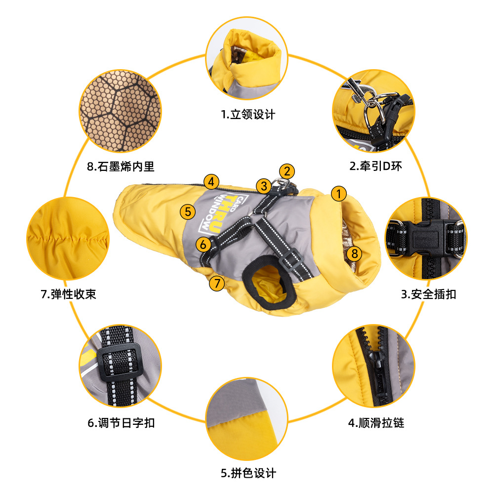 new pet clothes warm big dog cotton clothes comfortable waterproof dog cotton clothes lock temperature puppy clothes windproof traction