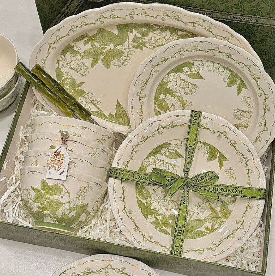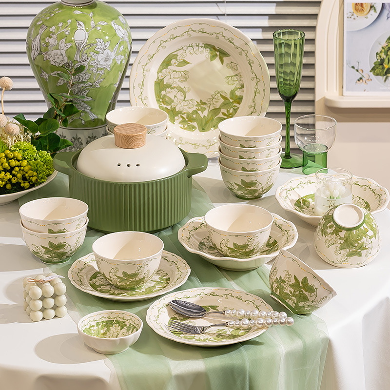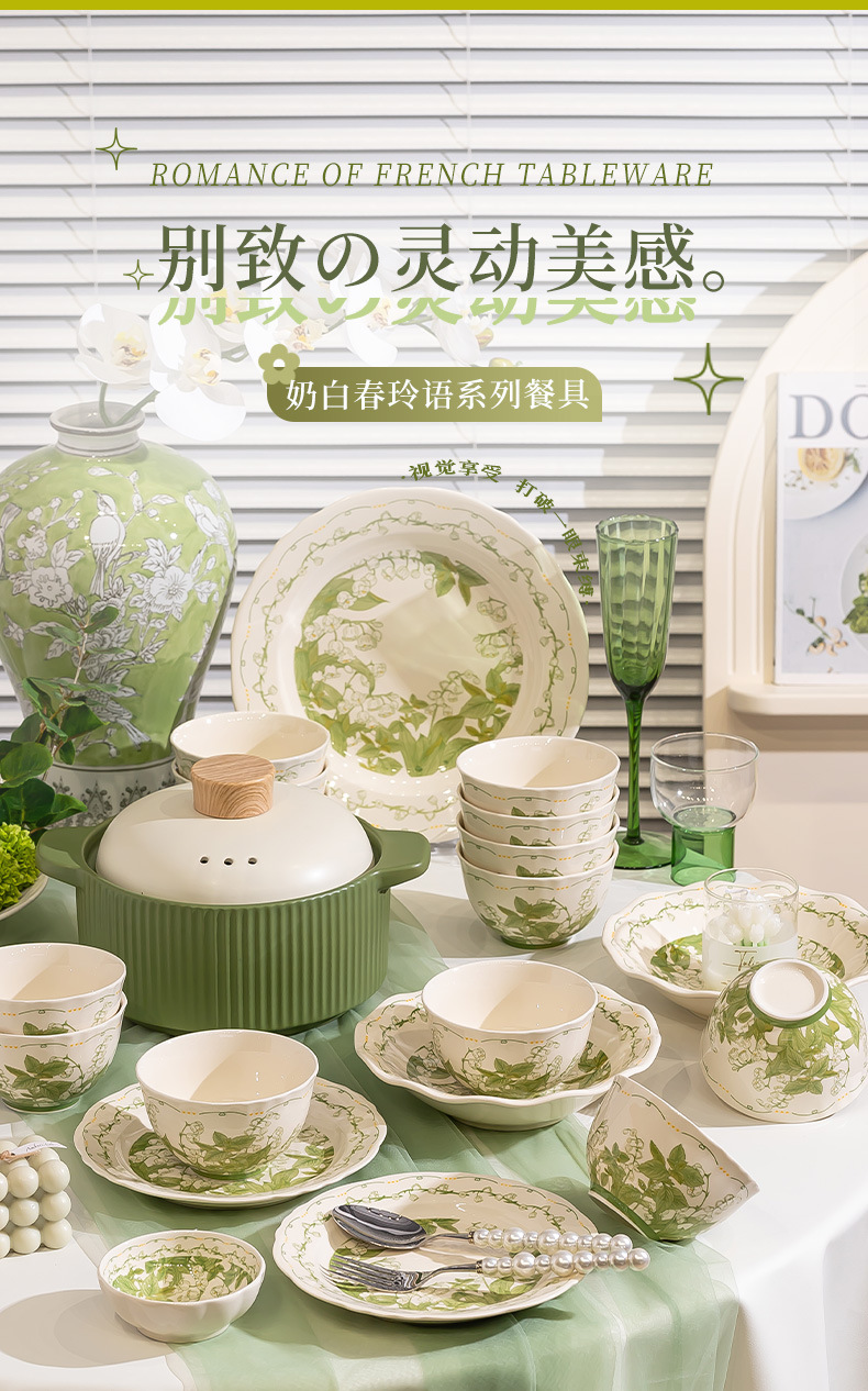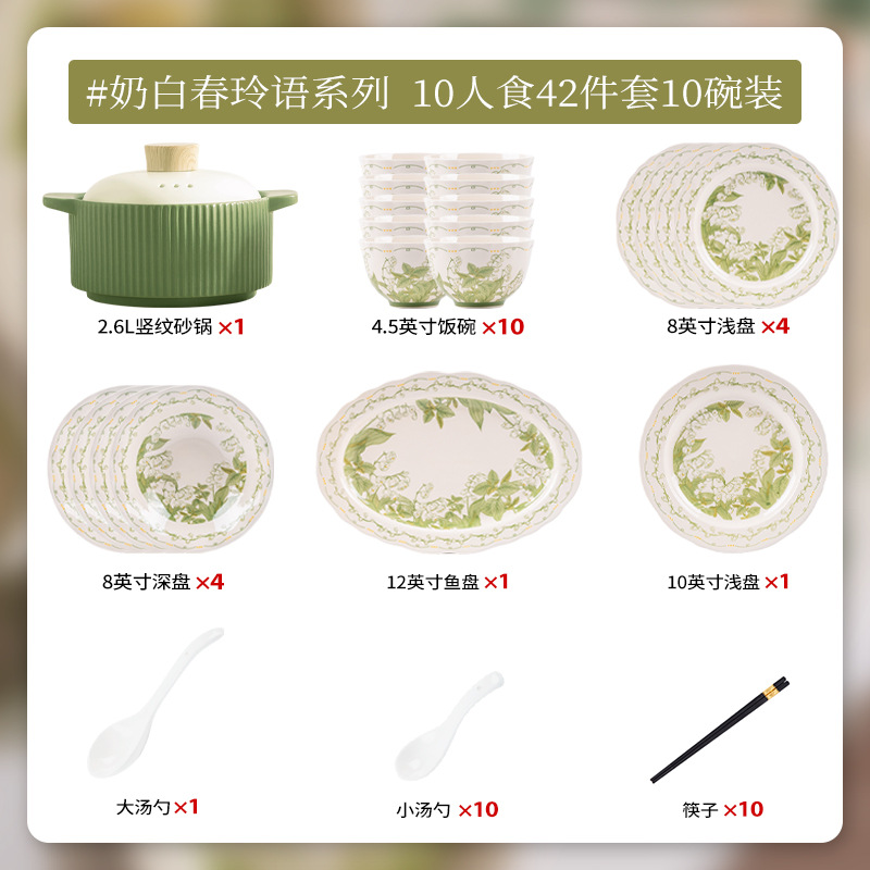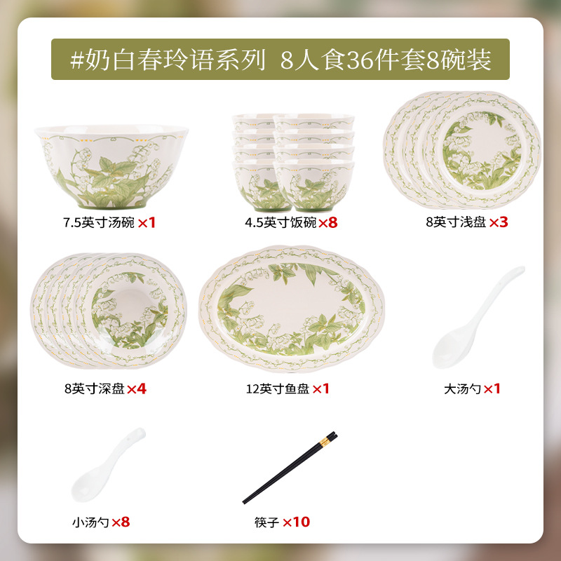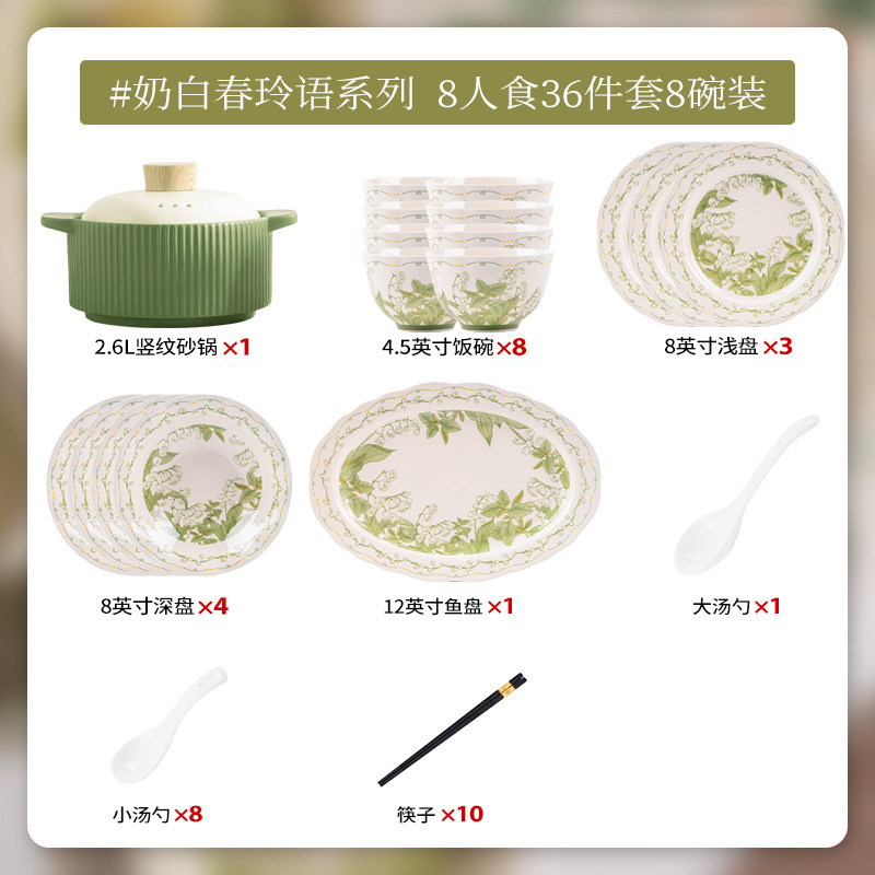 milky white chunling porcelain – 36 pieces for 8 people, comes with a casserole pot [gift box]
