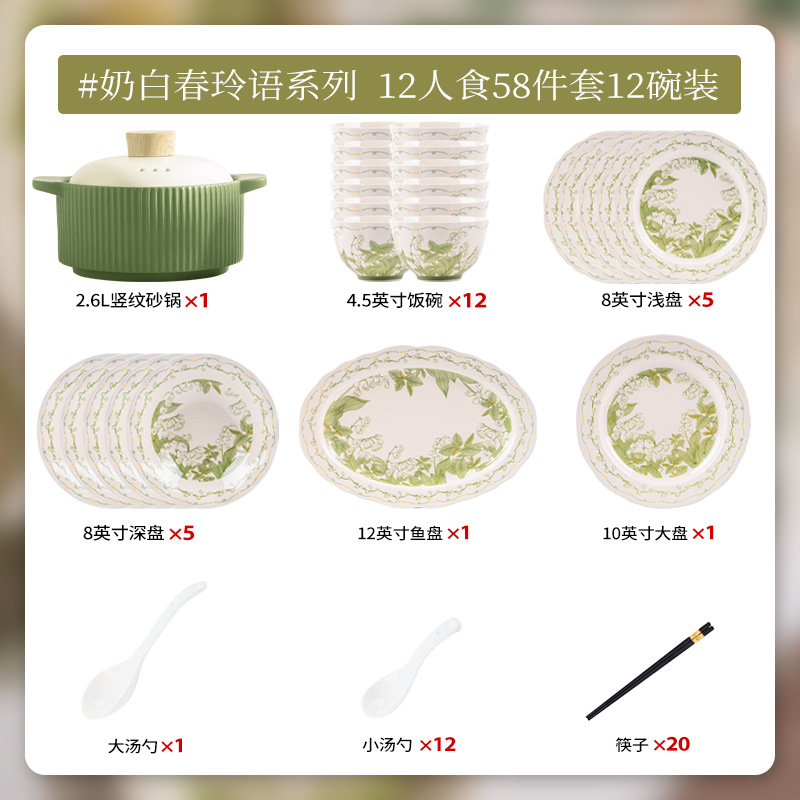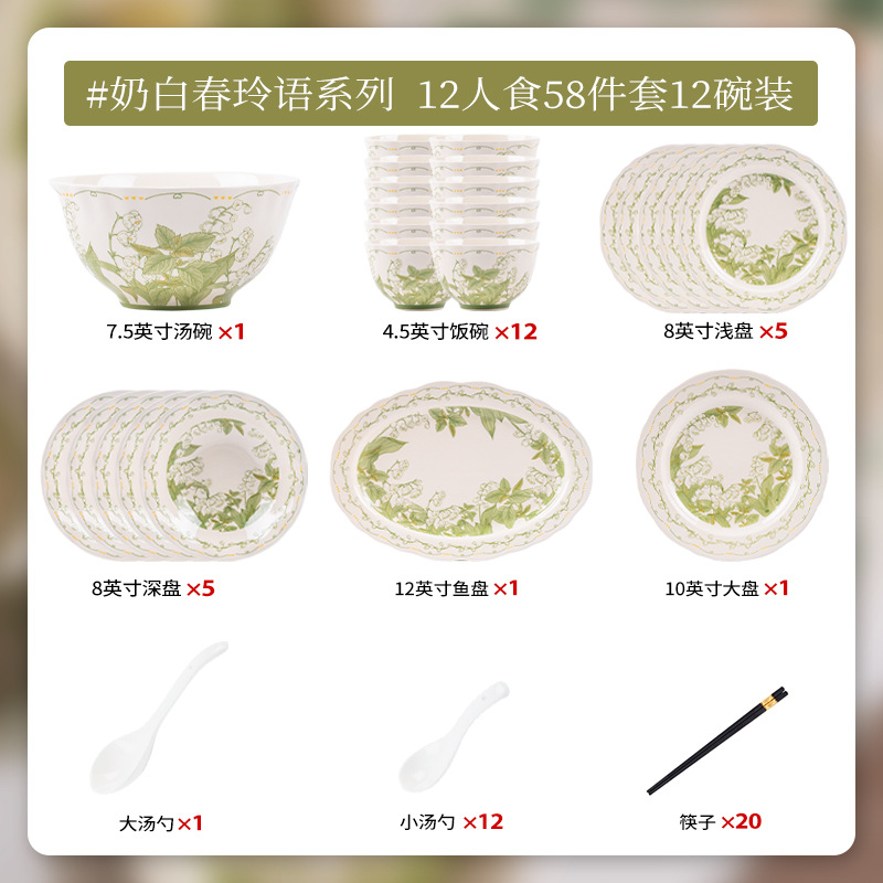 milky white chunling porcelain – 58-piece set for 12 people with soup bowls [gift box]