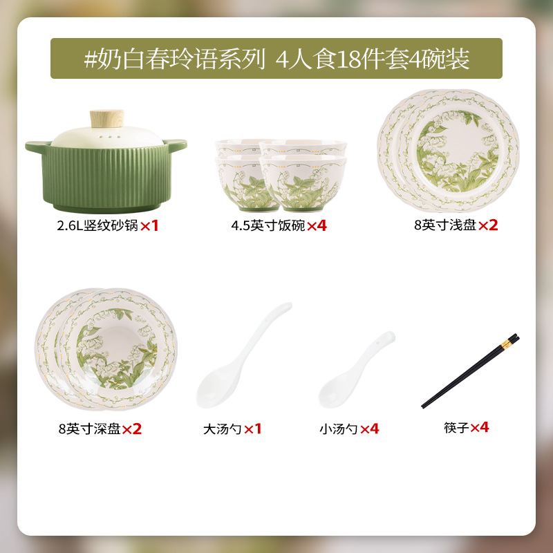 milky white chunling porcelain – serves 4, 18 pieces with a casserole pot [gift box]