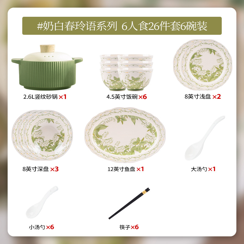 milky white chunling porcelain – serves 6, 26 pieces with a casserole pot [gift box set]