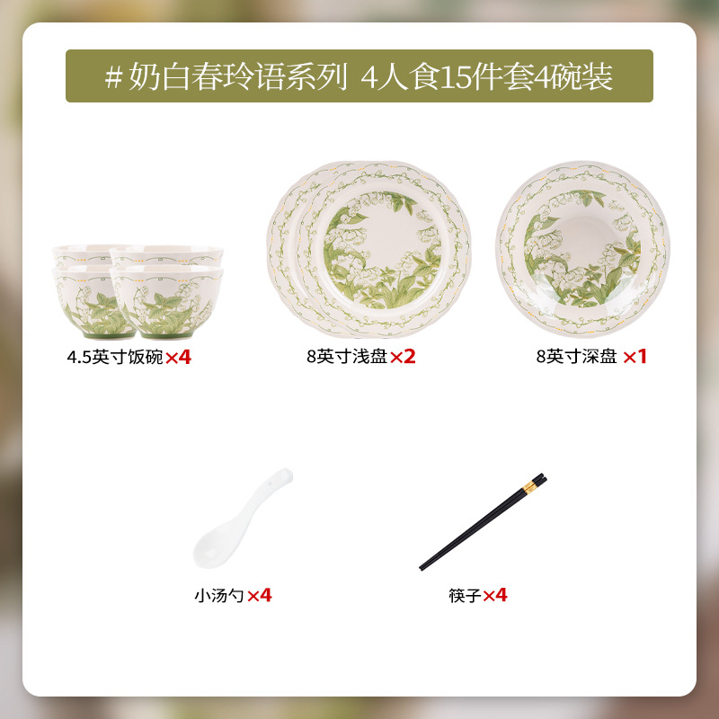 milky white chunling porcelain – serves 4, 18 pieces with soup bowls [gift box]