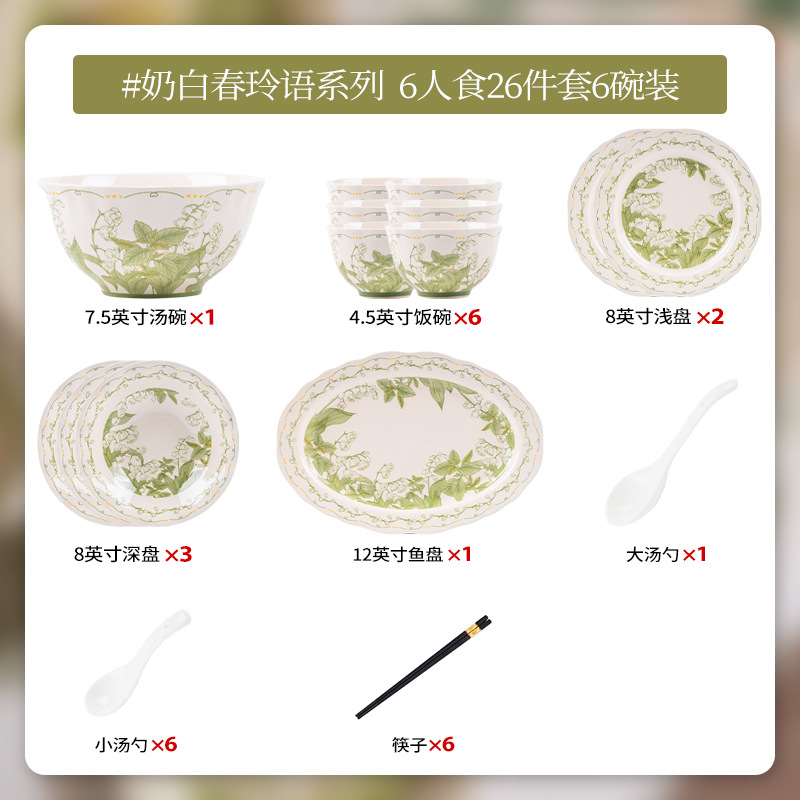 milky white chunling porcelain – set for 6 people, 26 pieces with soup bowls [gift box]