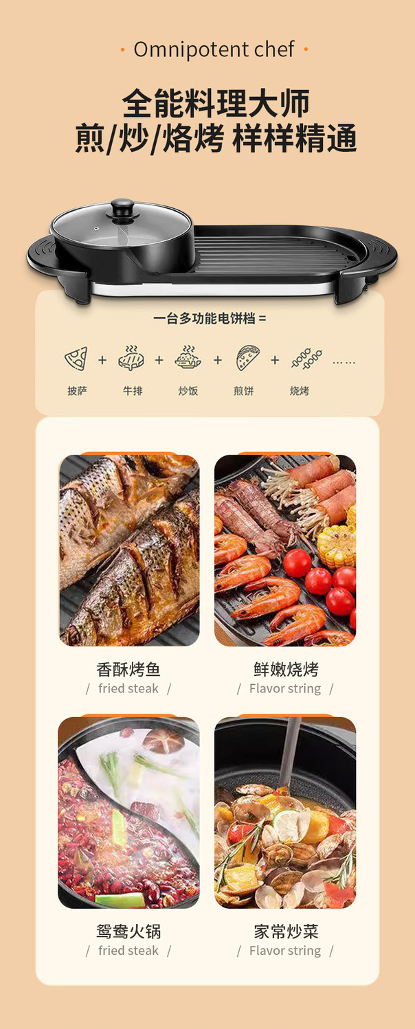 electric heating/hot pot function: fried, boiled, stewed, hot pot