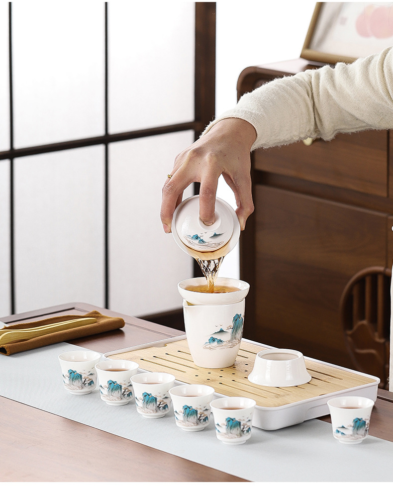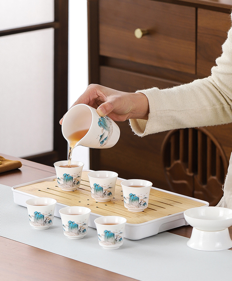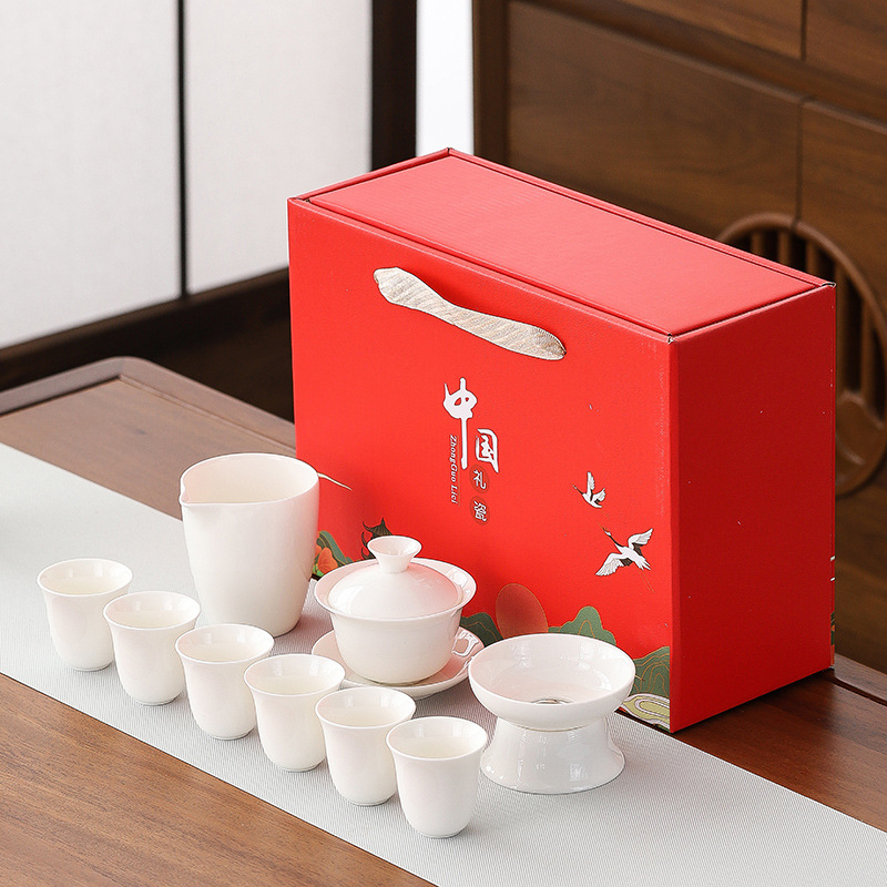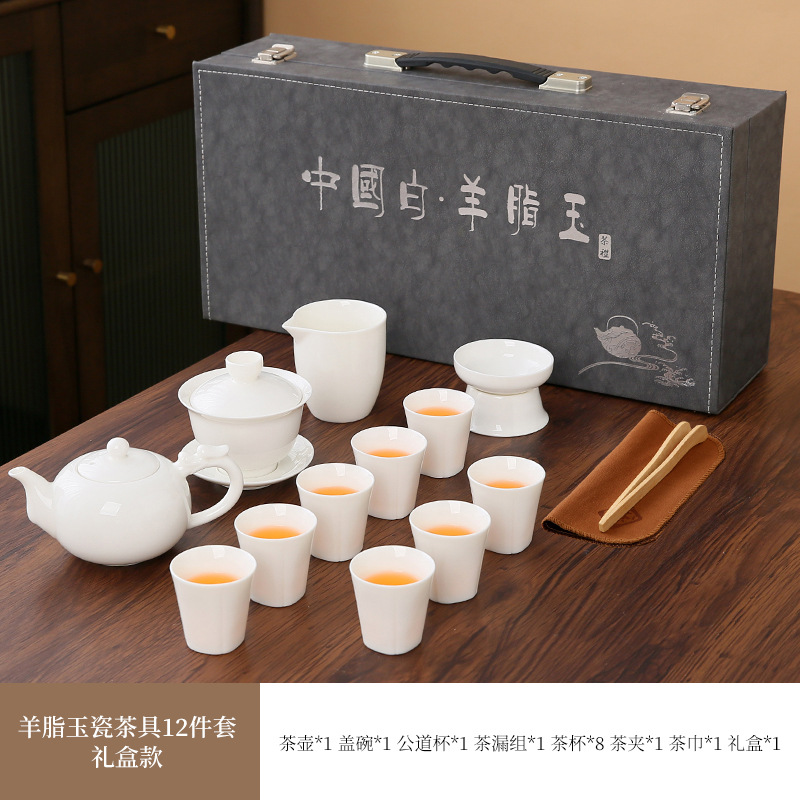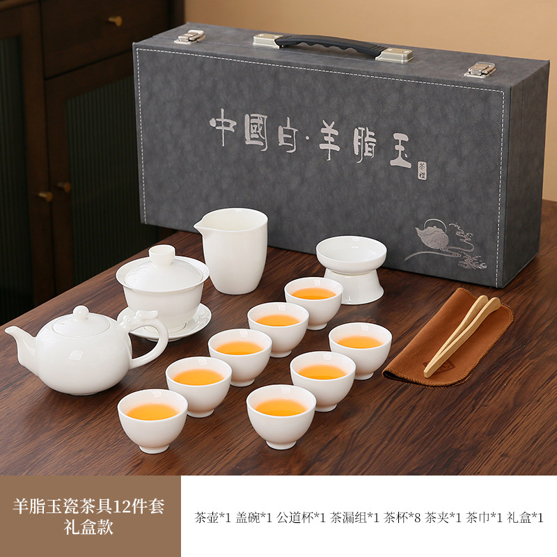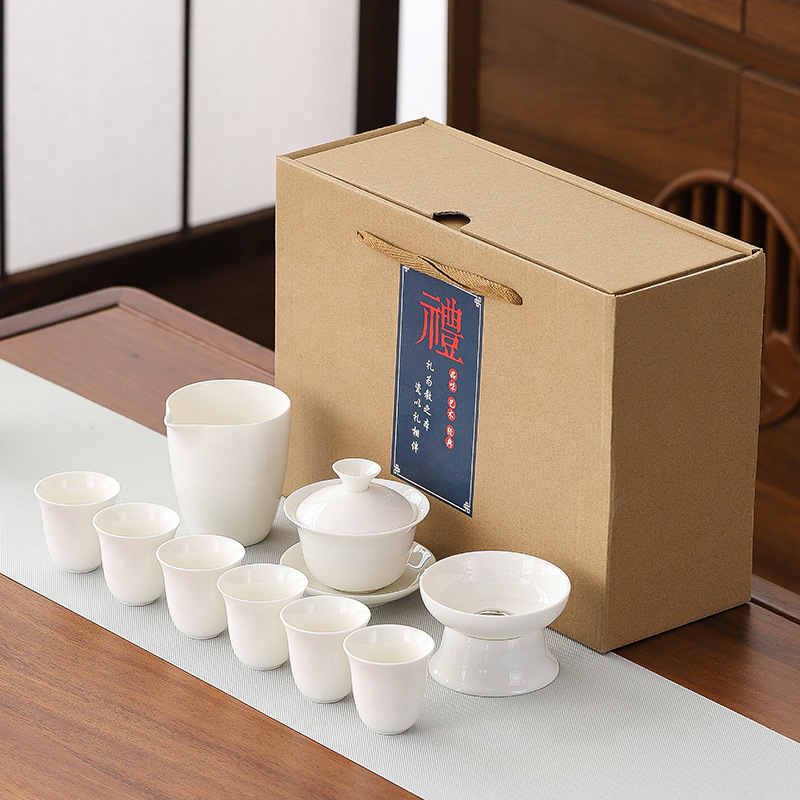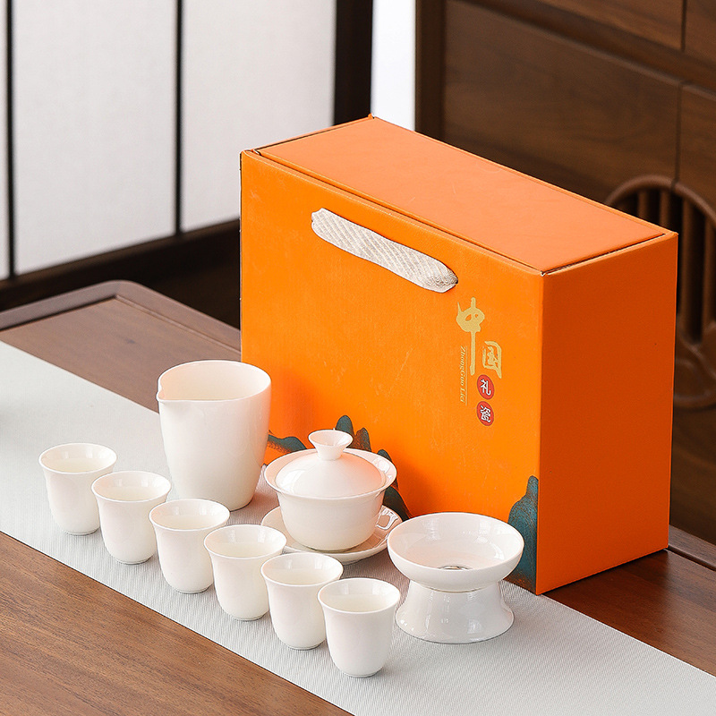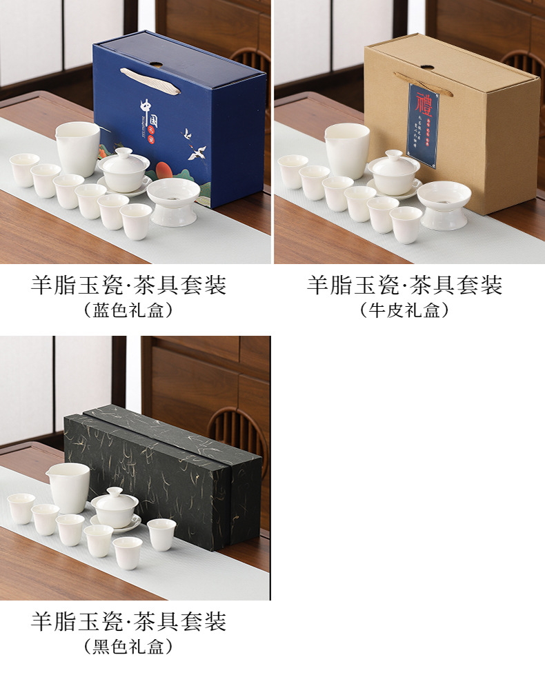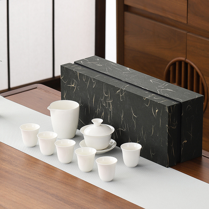 high-end gift box 13-piece white jade zen cup