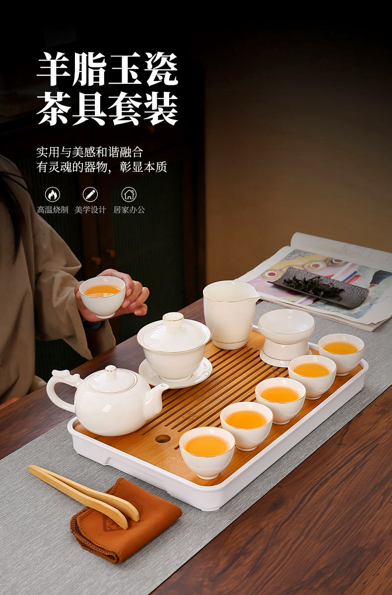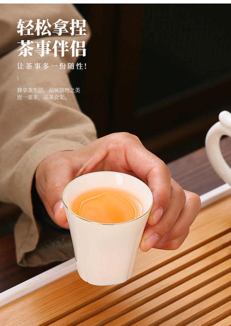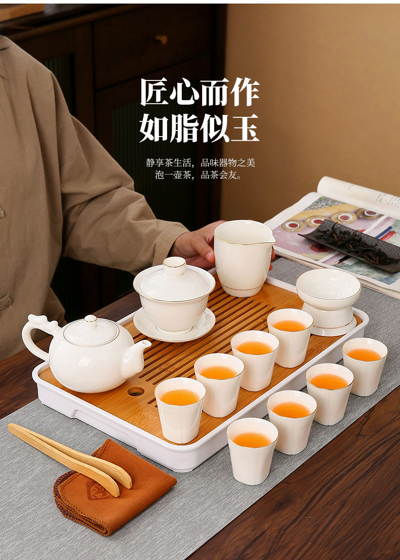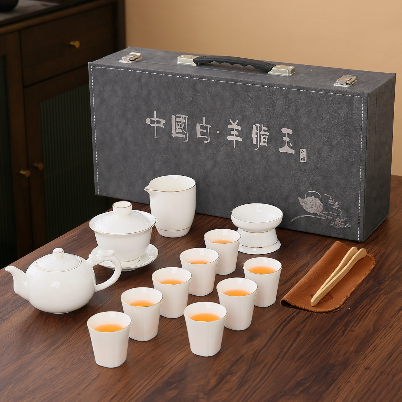 high-end gift box 13-piece white jade zen cup with gold inlay
