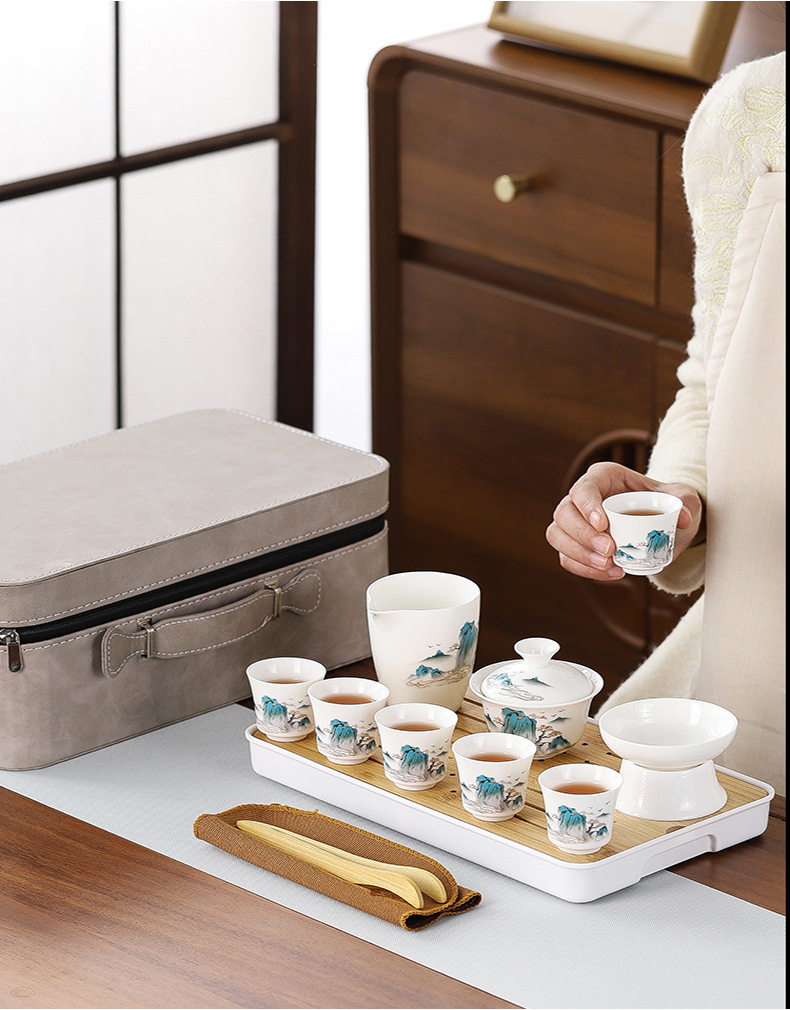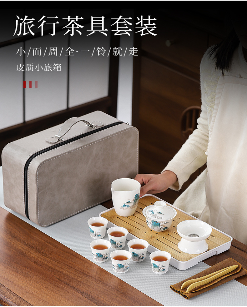 thousand-li landscape with tea china (note the color of the leather bag)