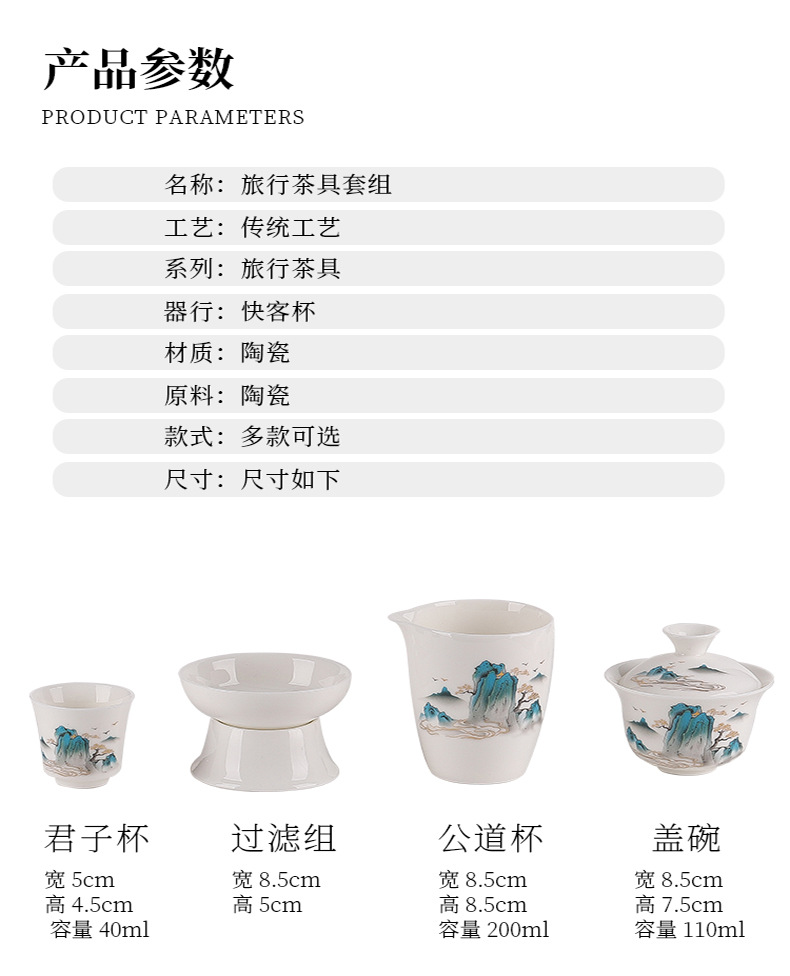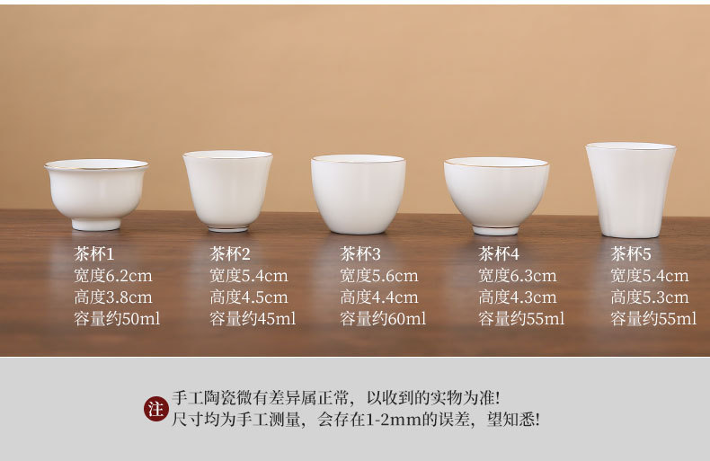 large leather bag 13-piece white jade zen cup with gold painting (leather bag color to be noted)