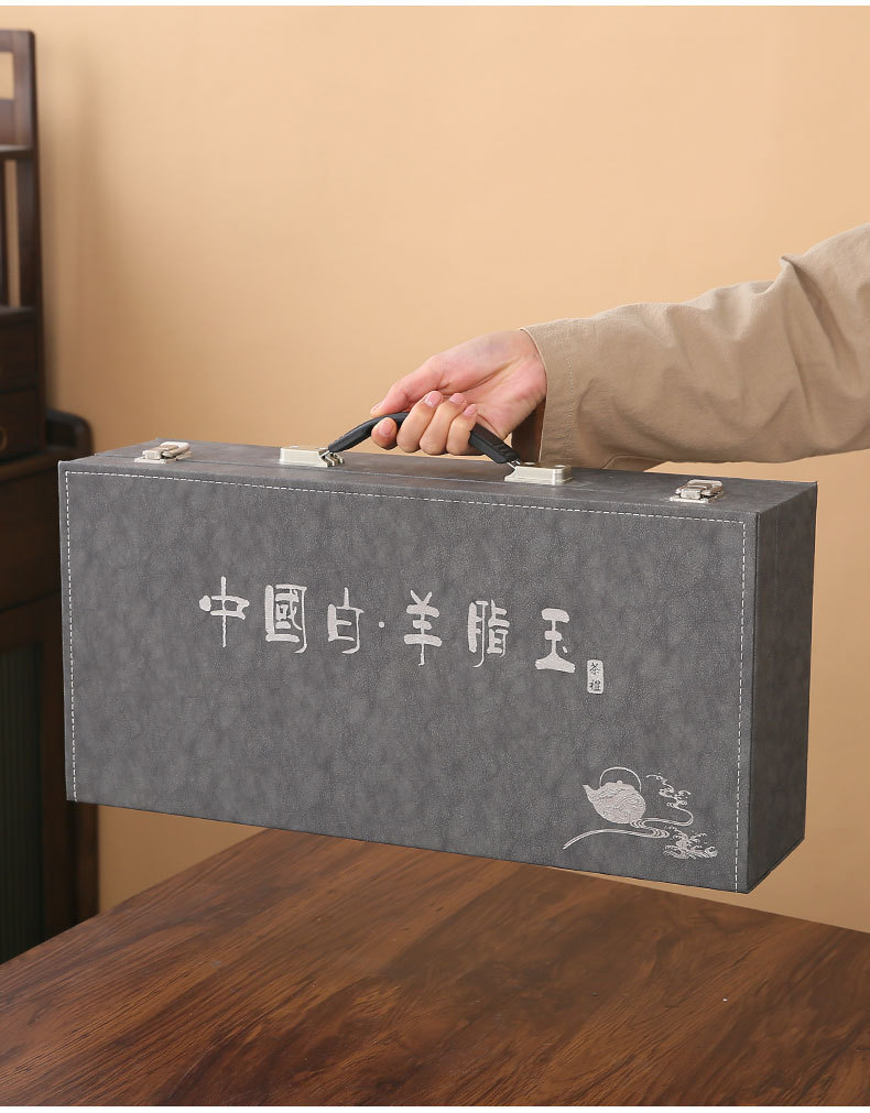 large leather bag 13-head white jade contentment cup (leather bag color note)