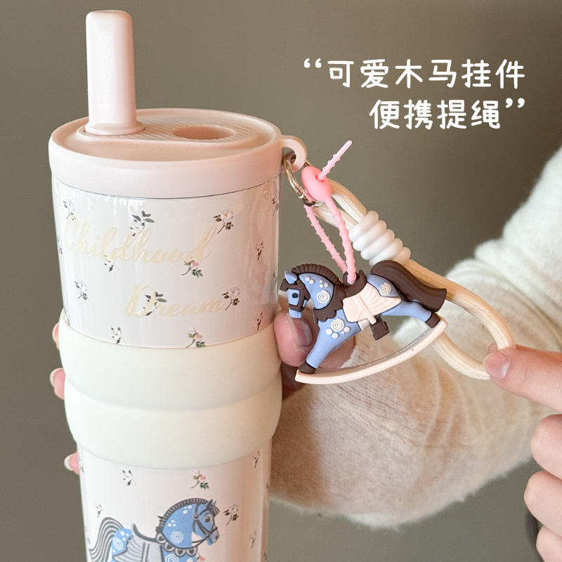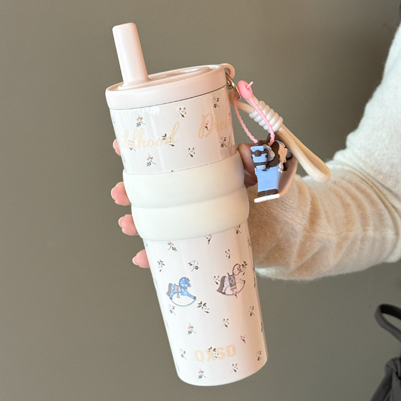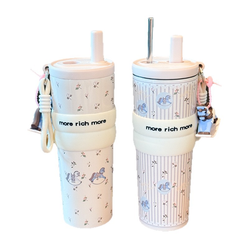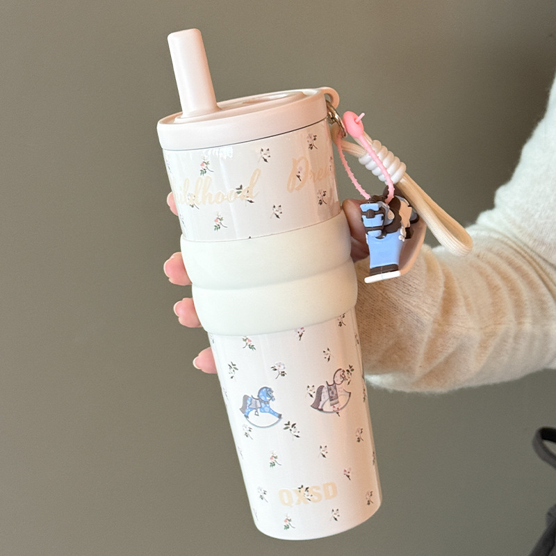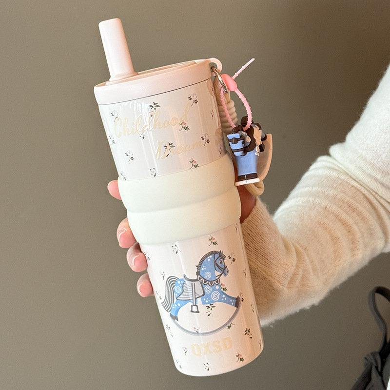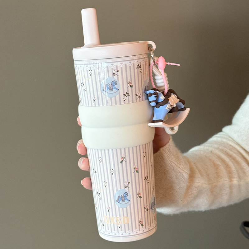 style: with rope handle, large capacity, cup, with straw, tumbler