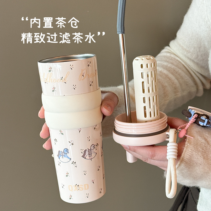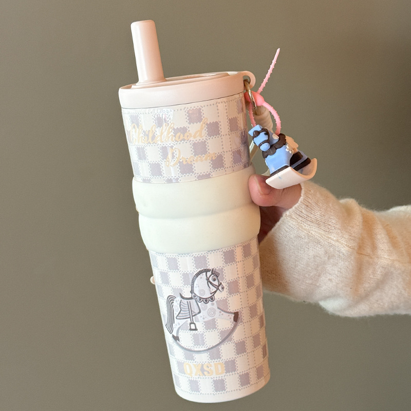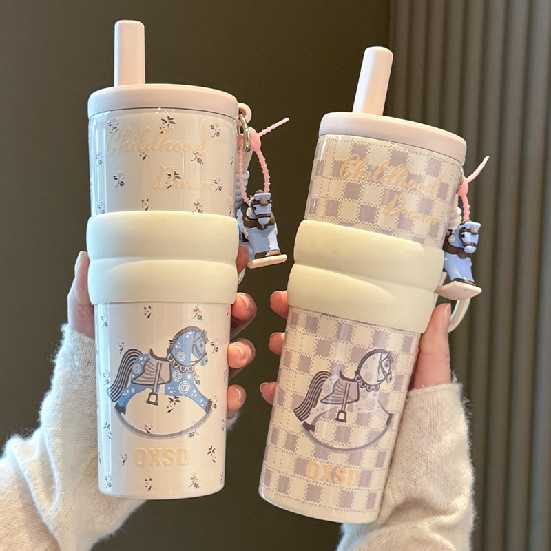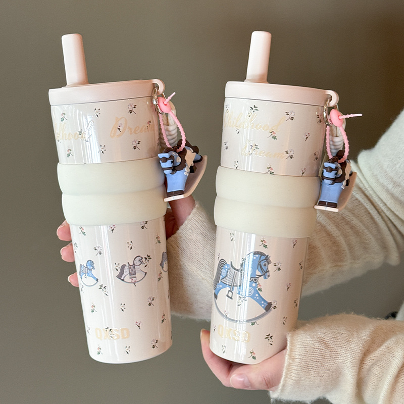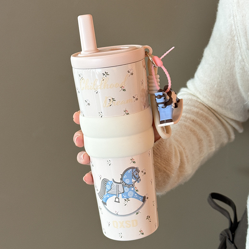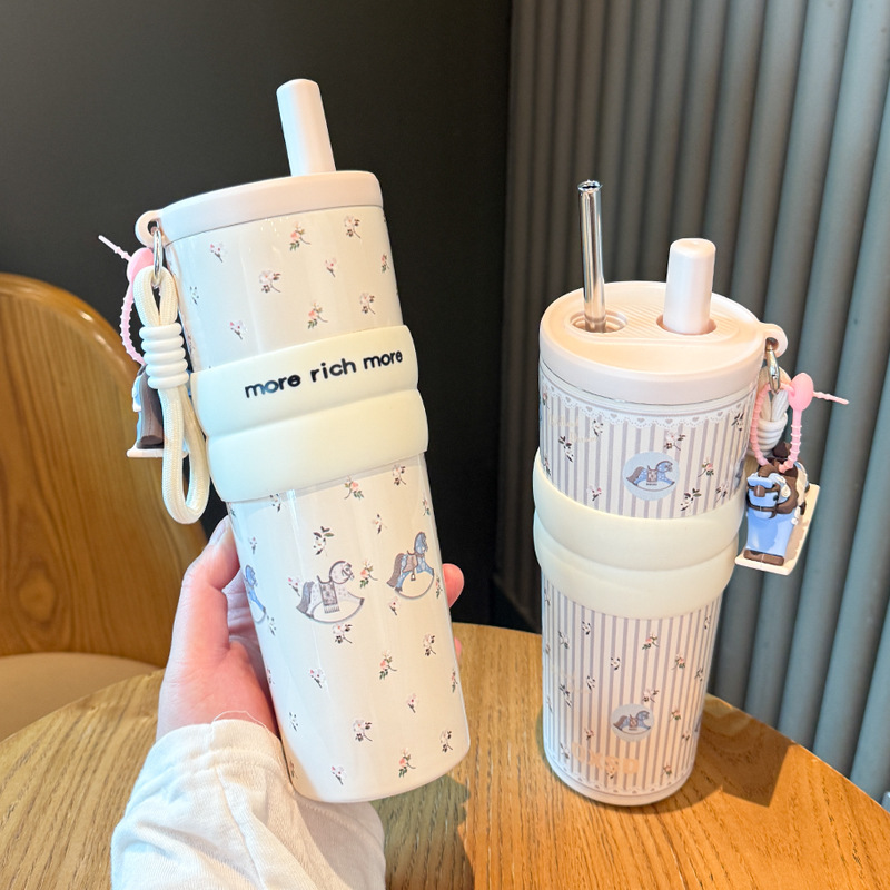style: with rope handle, large capacity, cup, with straw, tumbler