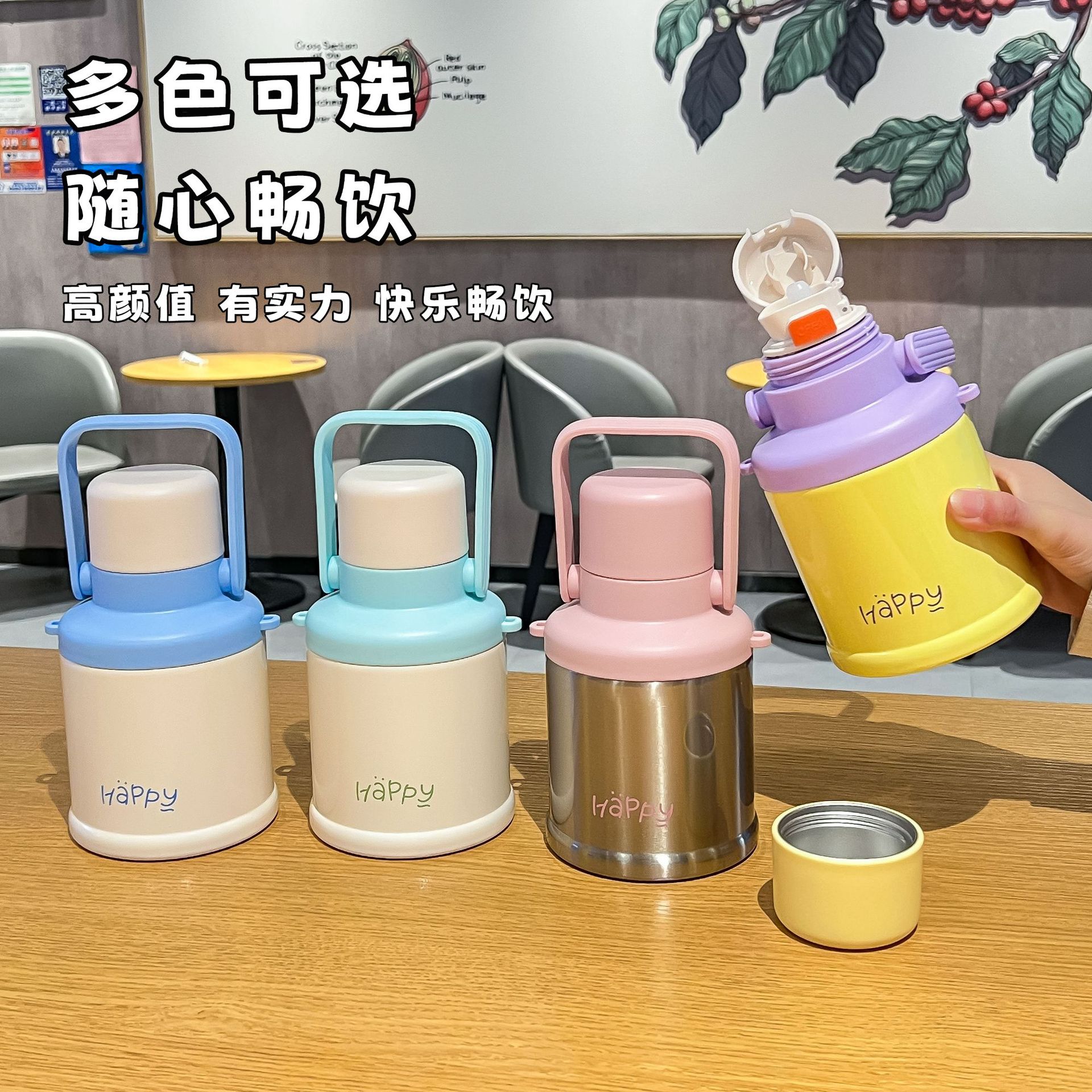 style: with handle, with rope handle, large capacity, bullet cup, big belly cup,
