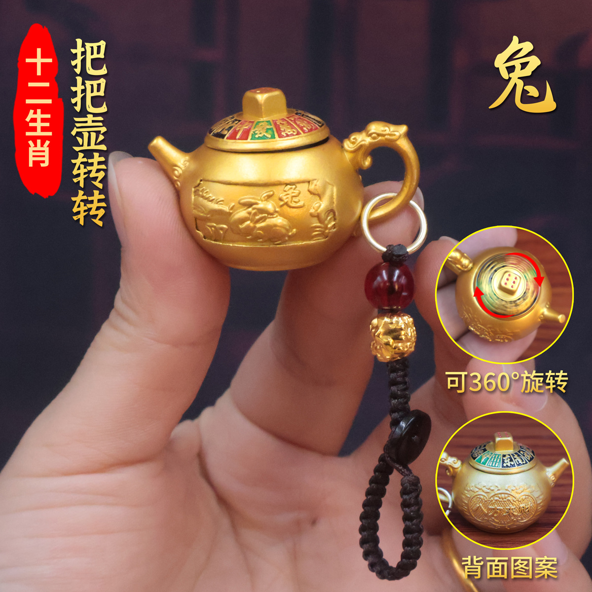 zodiac sign [rabbit] sand-gold handle teapot + pi xiu cord