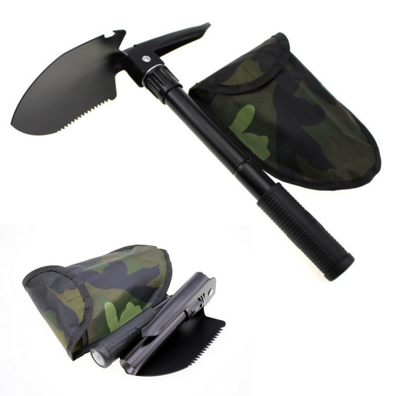 Features: Multifunctional, ideal for camping, tent setting, hiking, exploration, travel, gardening, scientific research, and other outdoor activities. It comes with shovel, pickaxe, saw, bottle opener, and more.