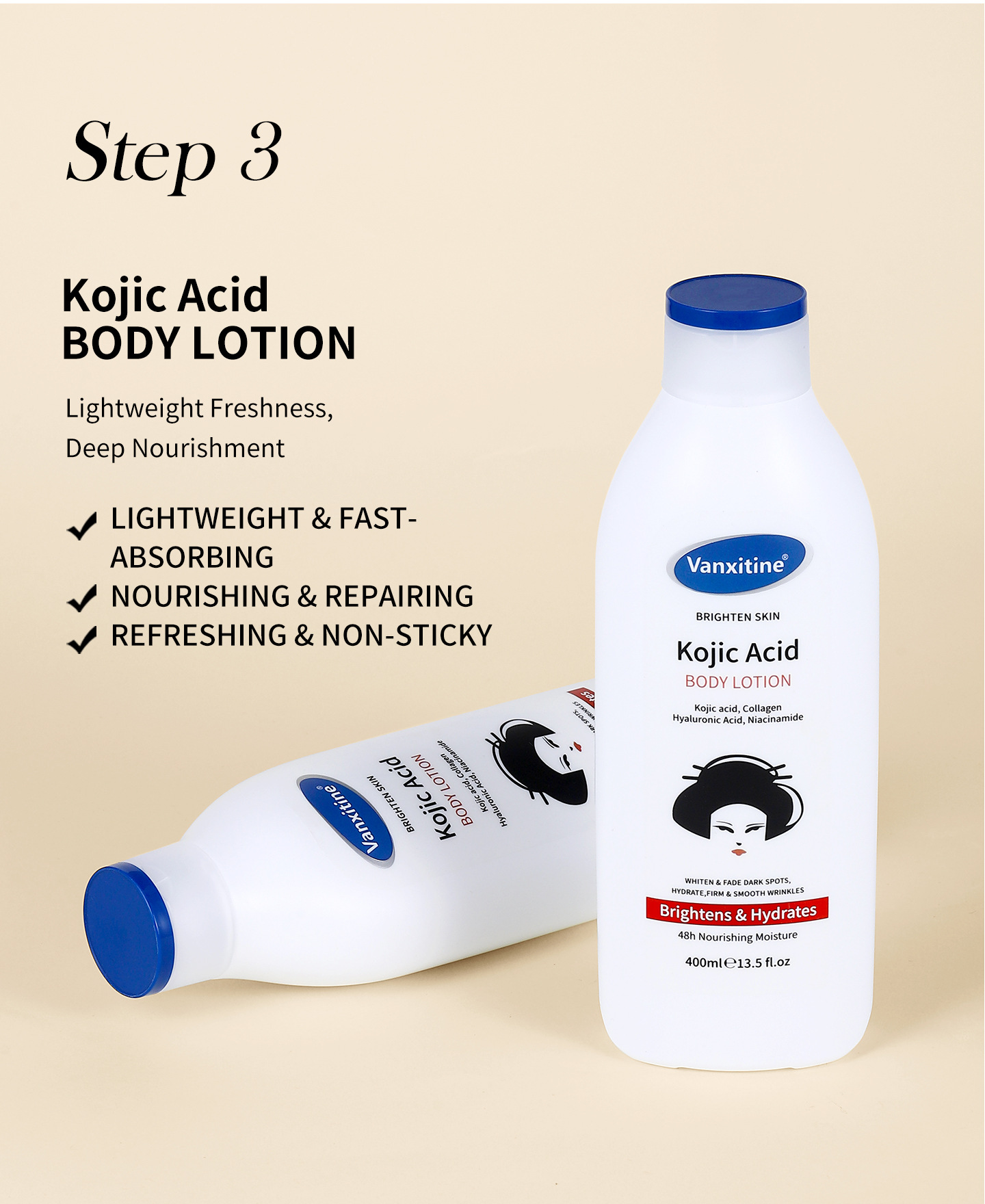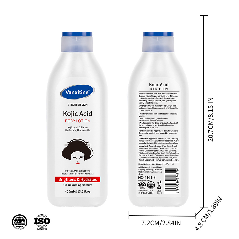 kojic acid body lotion 400ml [packaging: 48 pcs/ctn; product is for export only and is prohibited from being sold within china.]